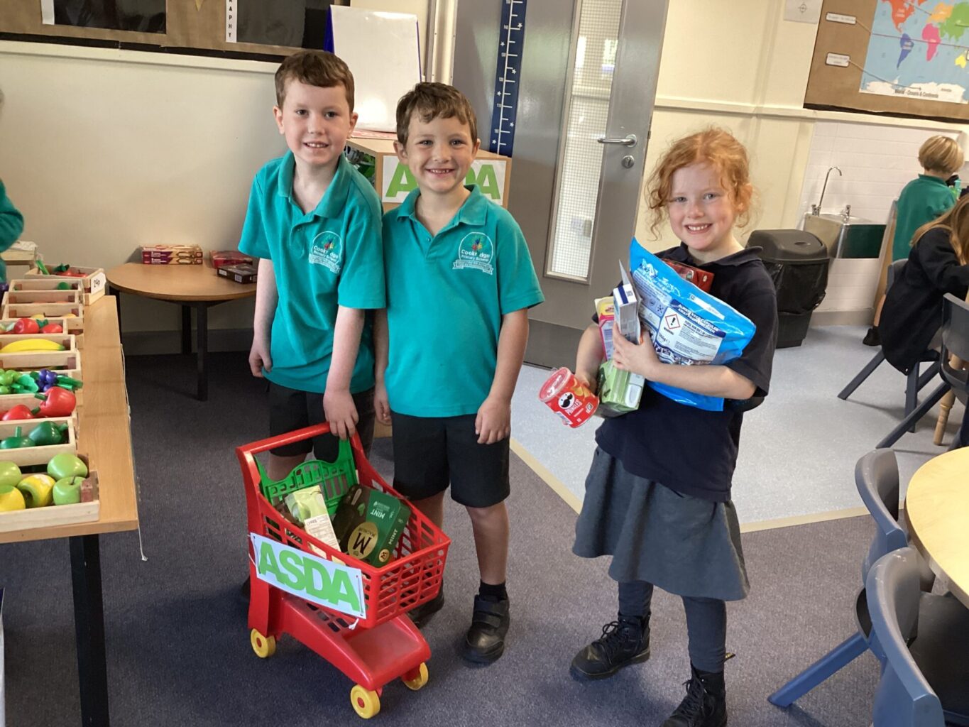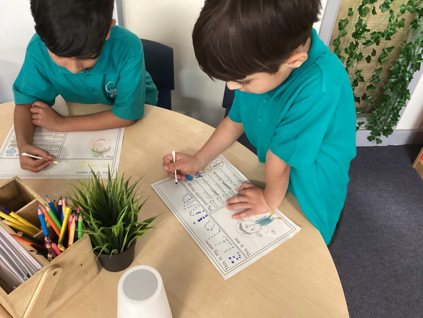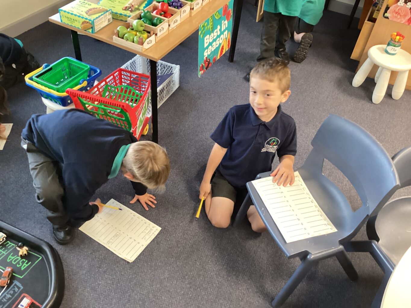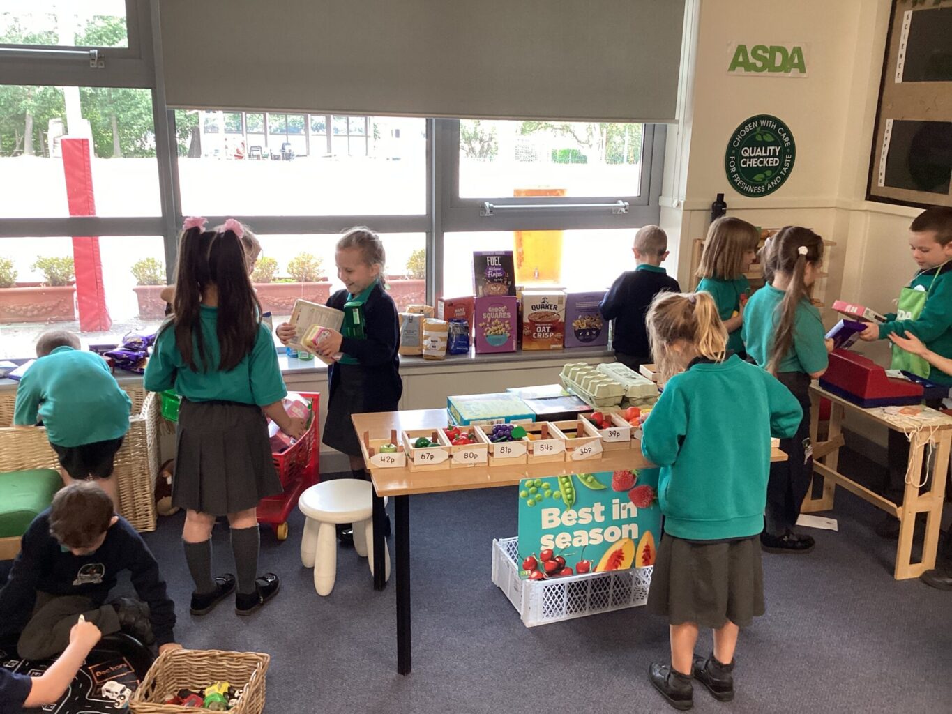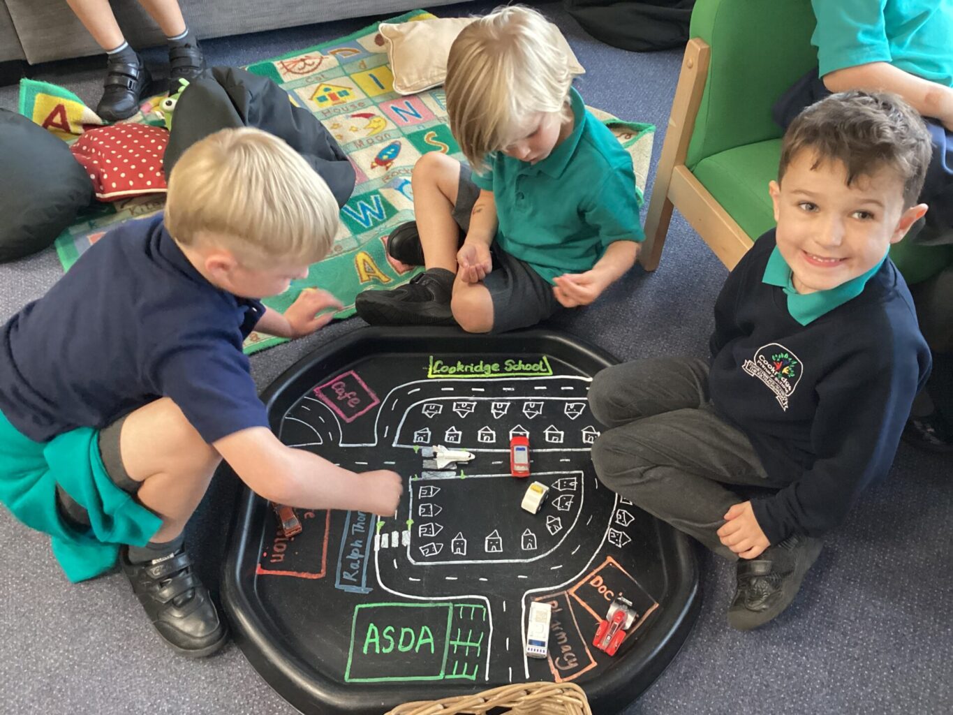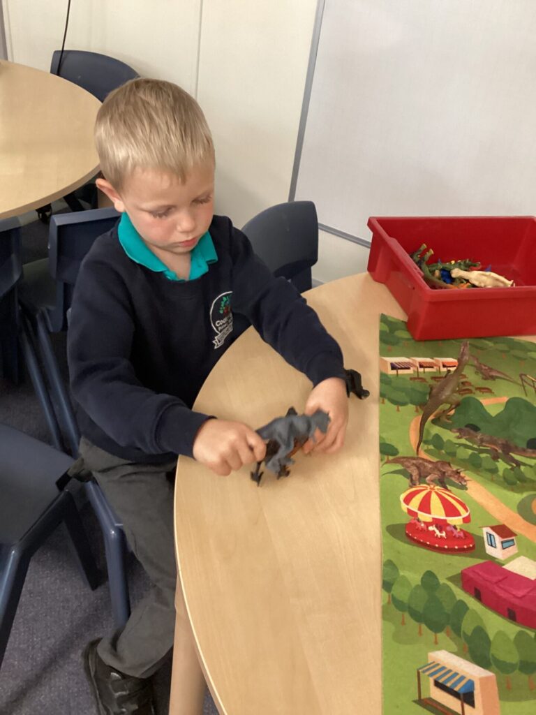 We started the day with a check-in and and a scavenger hunt of our classroom to find out where everything belongs before having a chance to have a play with all the toys in our classroom. Next, we had did an ‘all about me’ page where we wrote about all of our favourite things, drew a self portrait and even tried to write our name with spots and dots. After that, we had some choosing time in the classroom. Some of us painted, a few played with the cars and others built a zoo, but the new ASDA roleplay area was a definite favourite! Finally, we joined the rest of Key Stage one at forest schools to share some stories and found and collected lots of natural crafting materials to bring back to the classroom so we can use them to help with our arts and crafts for the rest of the week.