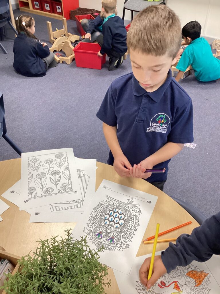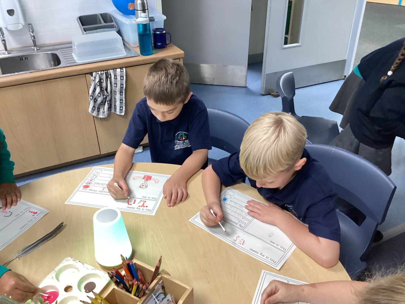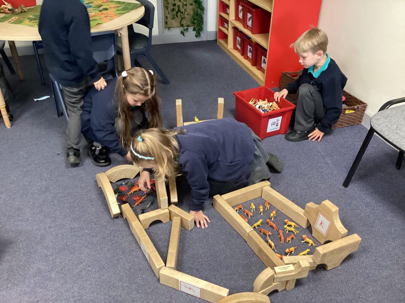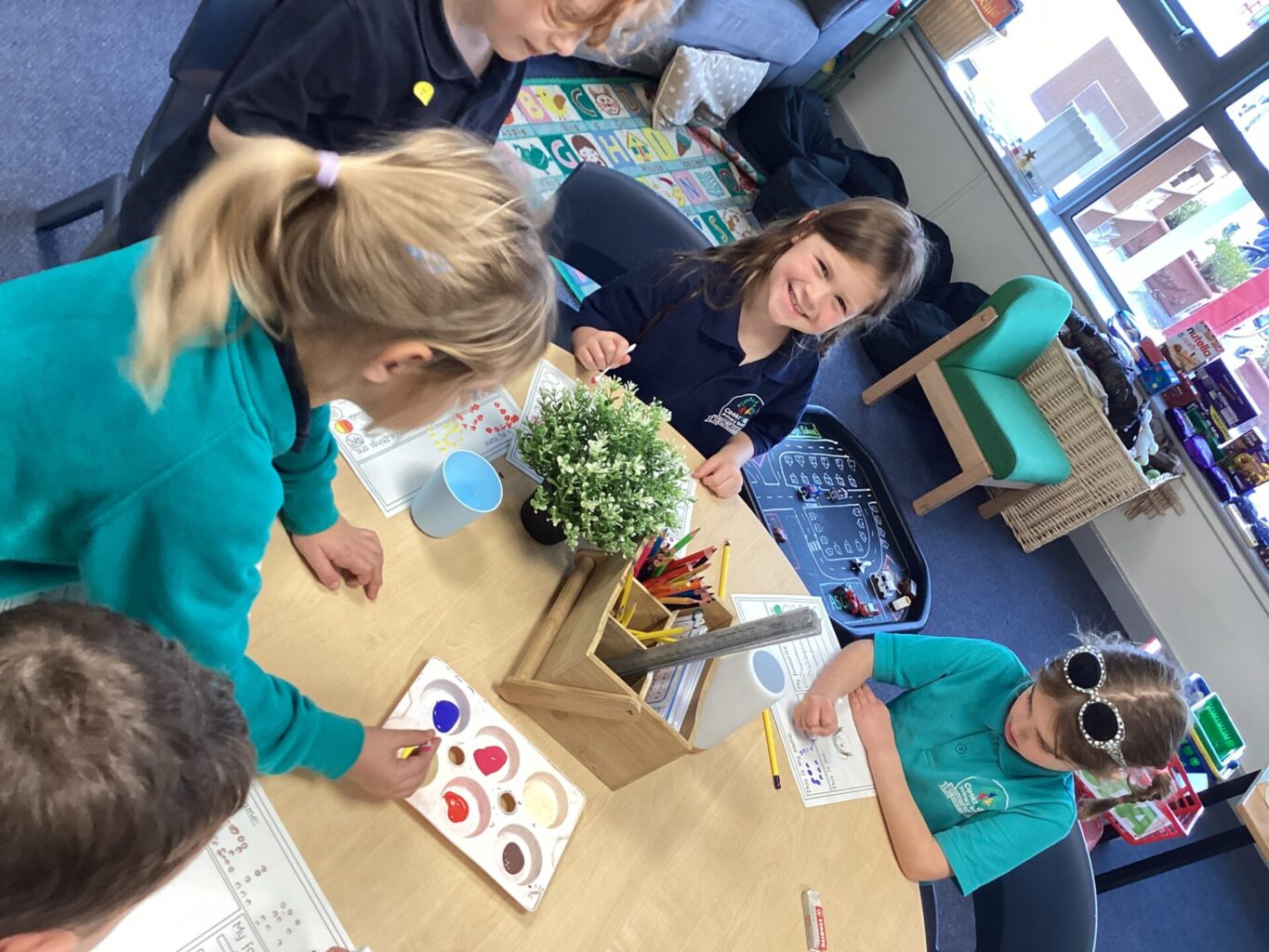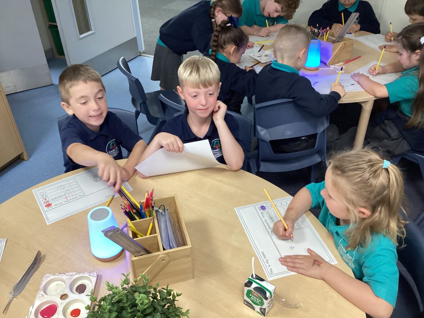 We started the day with a check-in and and a scavenger hunt of our classroom to find out where everything belongs before having a chance to have a play with all the toys in our classroom. Next, we had did an ‘all about me’ page where we wrote about all of our favourite things, drew a self portrait and even tried to write our name with spots and dots. After that, we had some choosing time in the classroom. Some of us painted, a few played with the cars and others built a zoo, but the new ASDA roleplay area was a definite favourite! Finally, we joined the rest of Key Stage one at forest schools to share some stories and found and collected lots of natural crafting materials to bring back to the classroom so we can use them to help with our arts and crafts for the rest of the week.