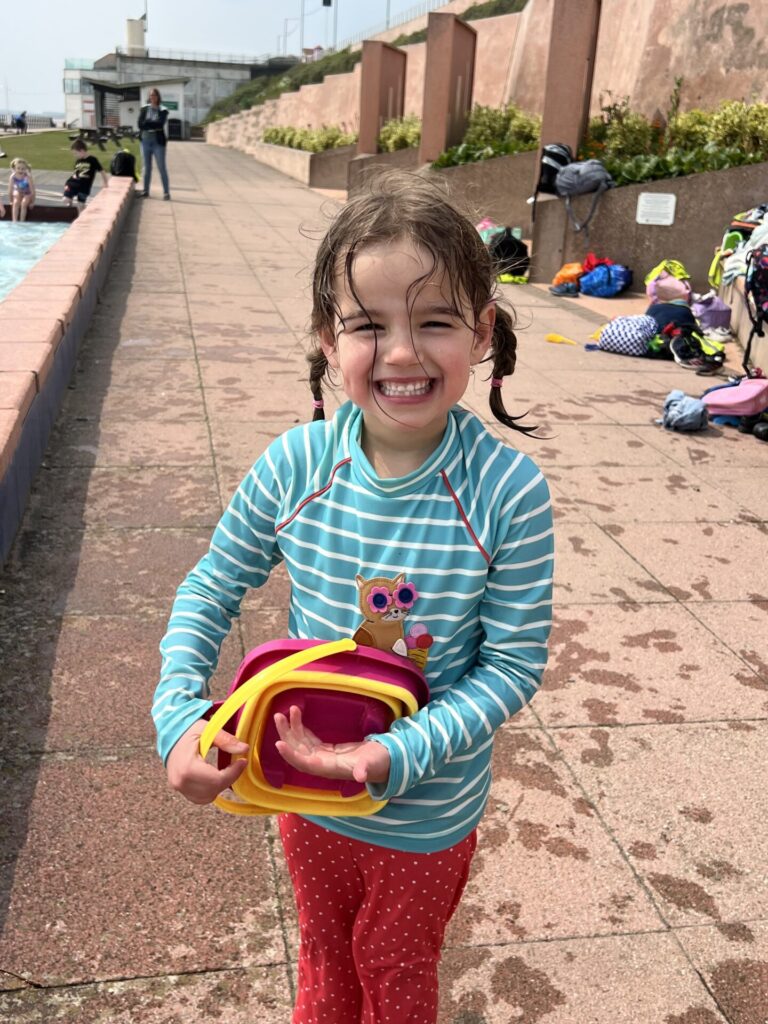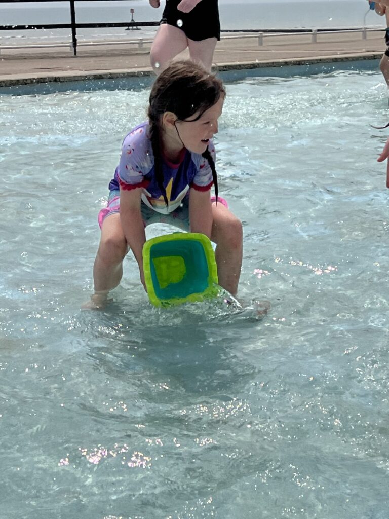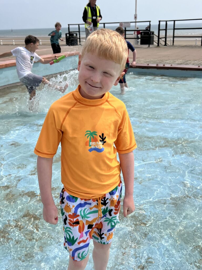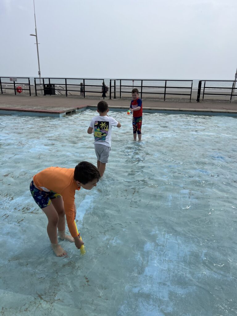 When we arrived, we headed straight to the Lido, where we splashed and played in the water. Then we walked along the seafront spotting some features of the seaside. We saw the lifeboat centre, shops, boats and lots more!