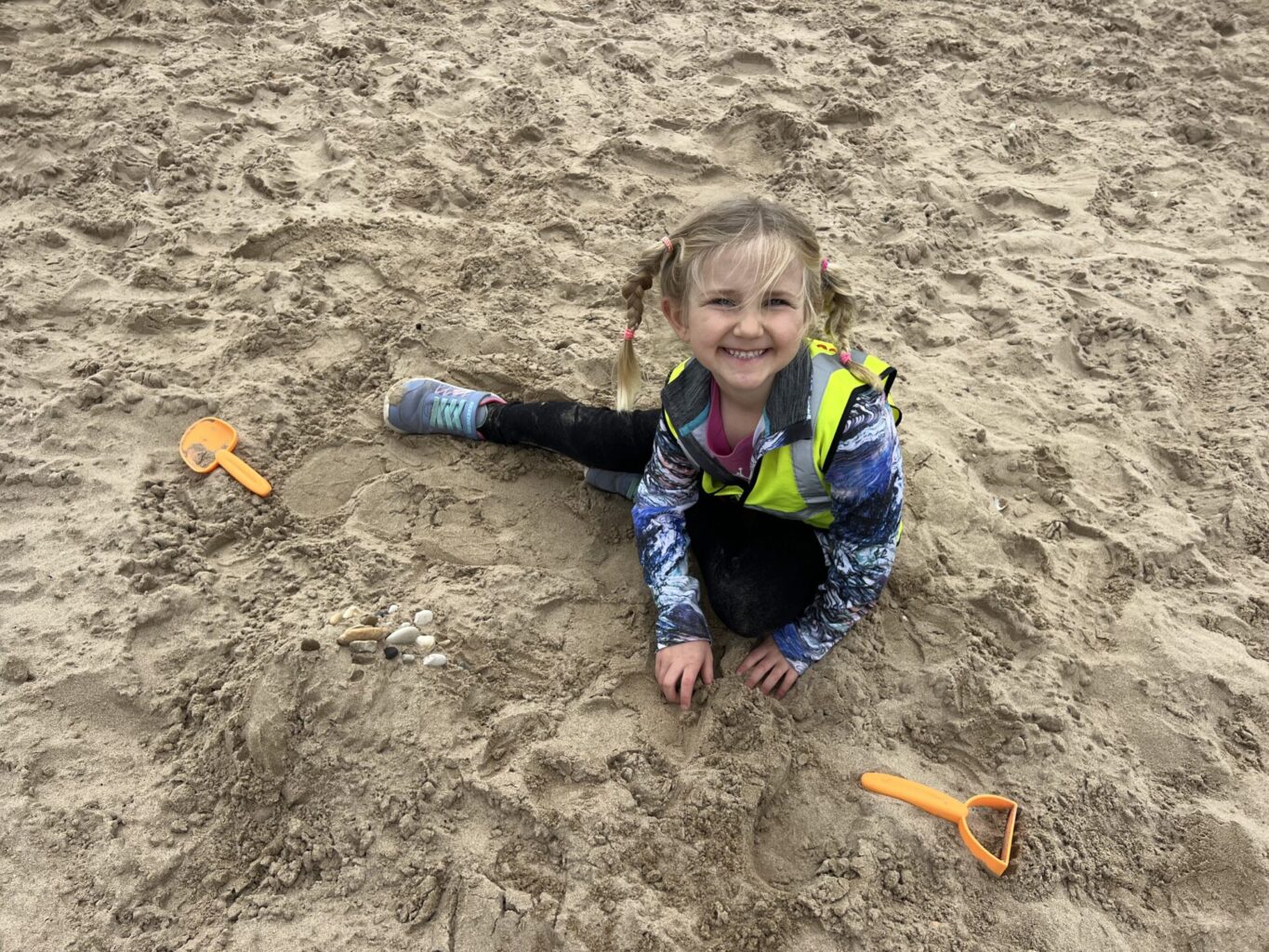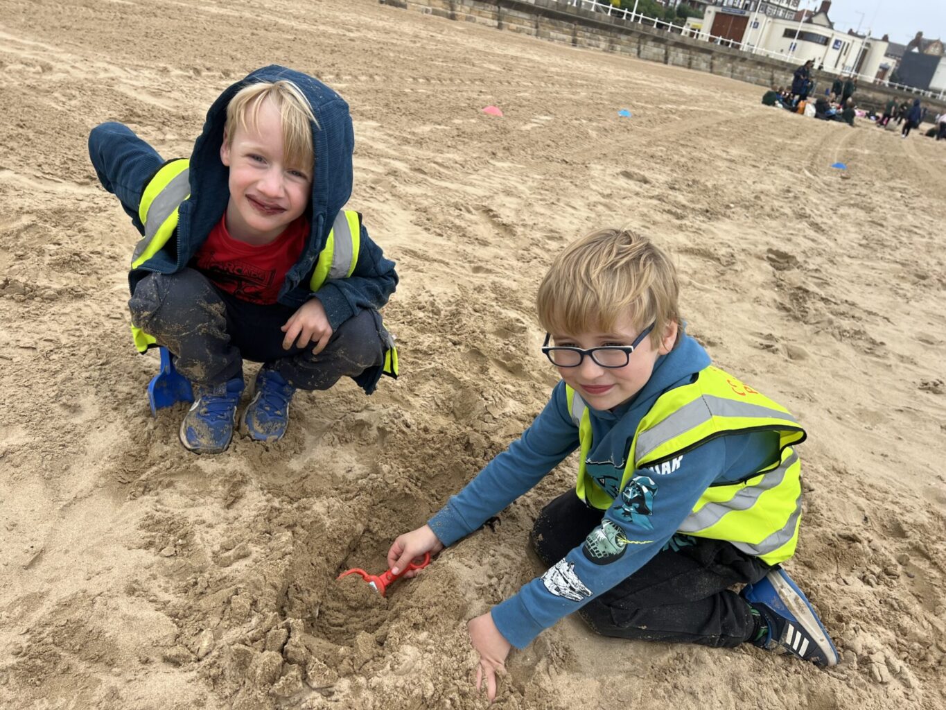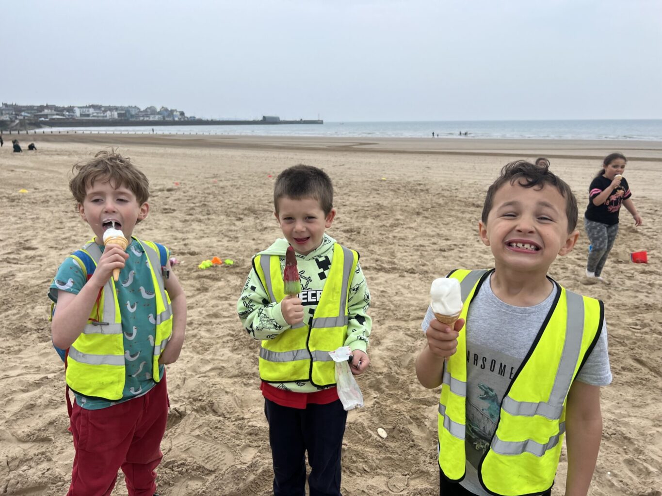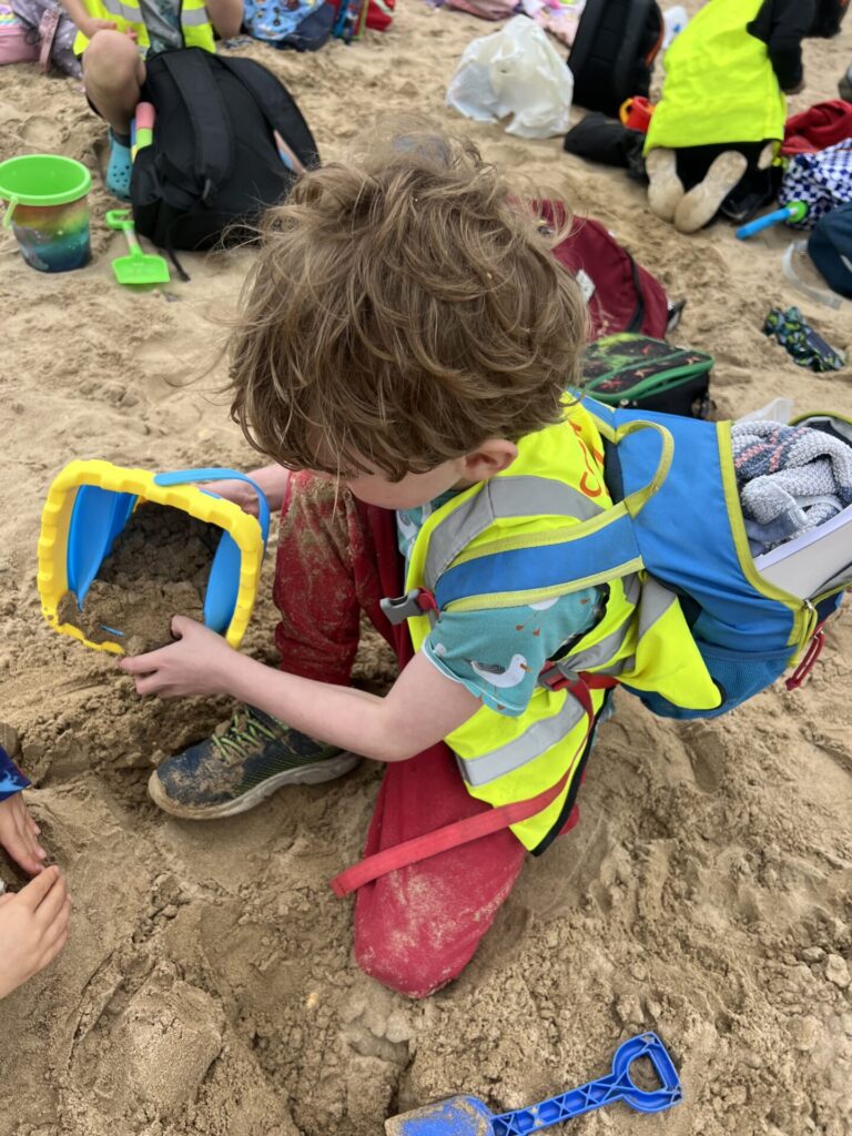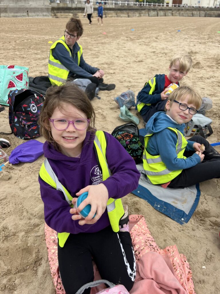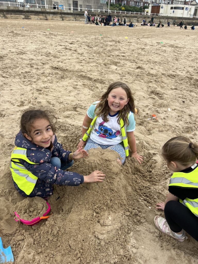 Then we settled on the beach and ate our lunch making sure to keep an eye out for the sneaky seagulls. Next, we played in the sand. Some of us built massive holes, others buried each other, we had a very competitive game of football on the go and some of us made wonderful sand castles.
