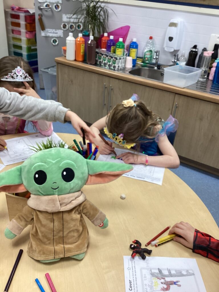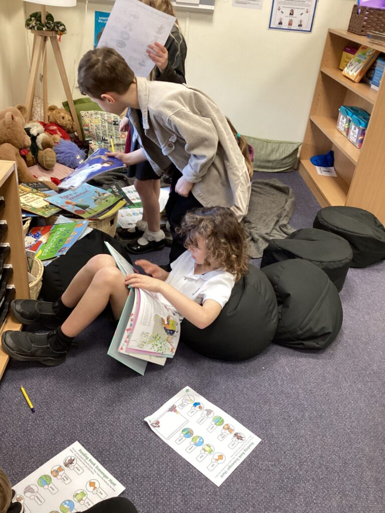 Next, we visited the school library where Mrs Harrison talked about where we can find books that we might be interested in. She also kindly read ‘The book with no pictures’ and ‘Zagazoo’ to us, which we found really funny!