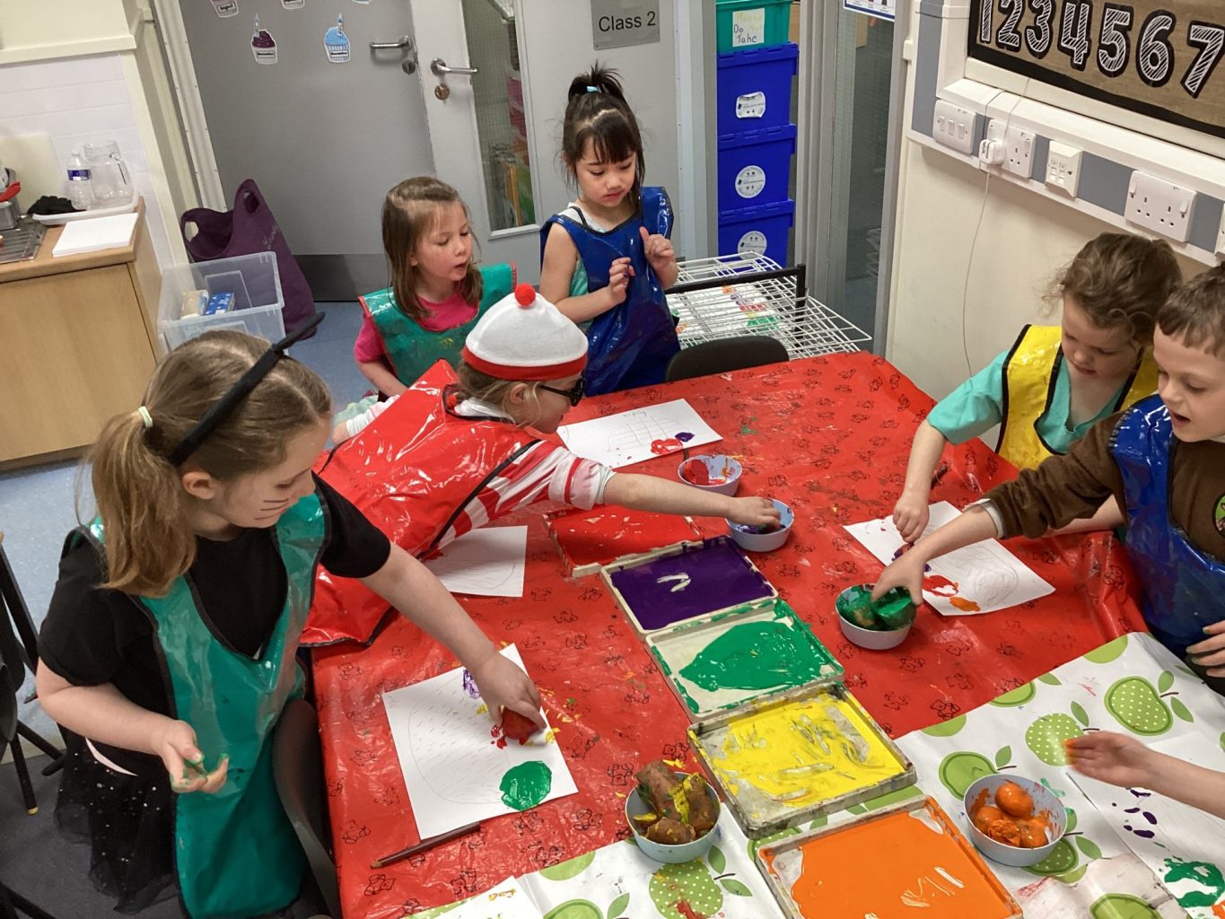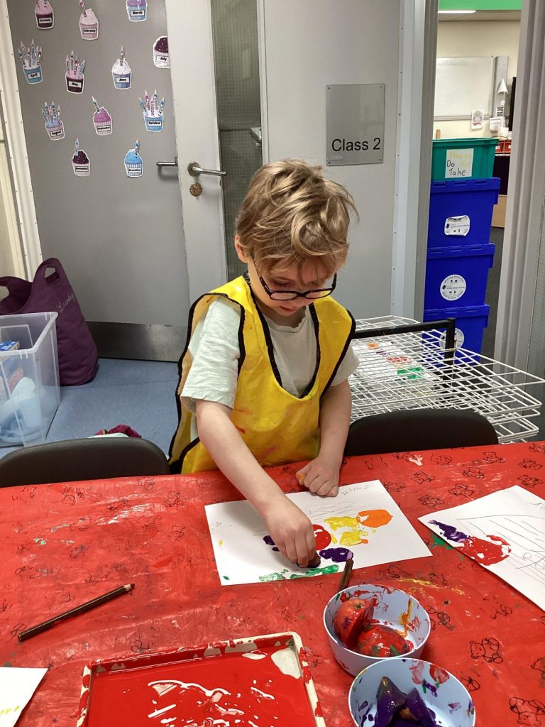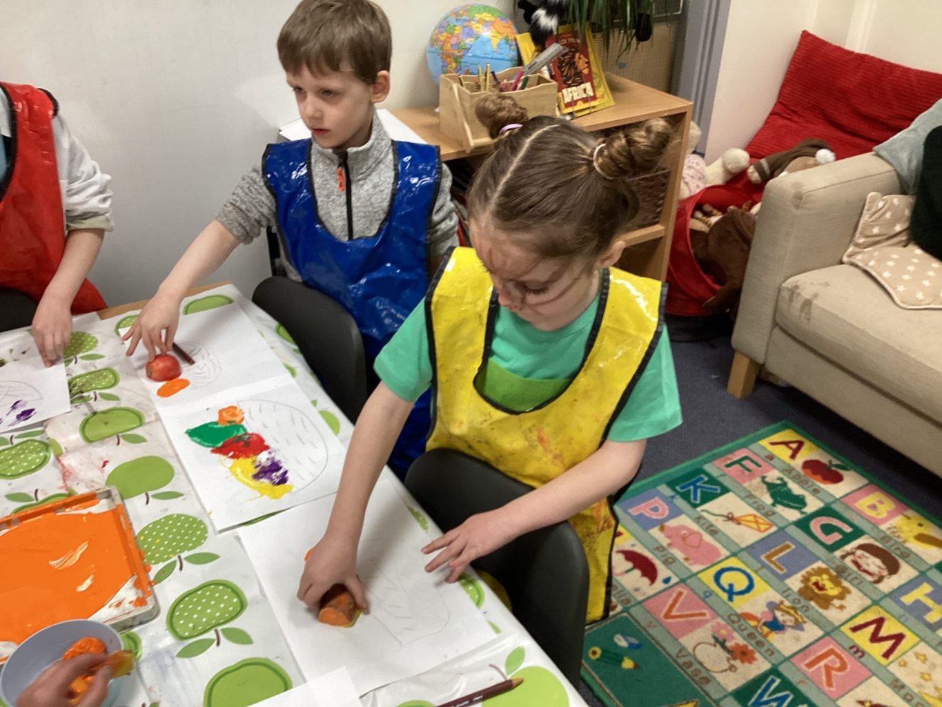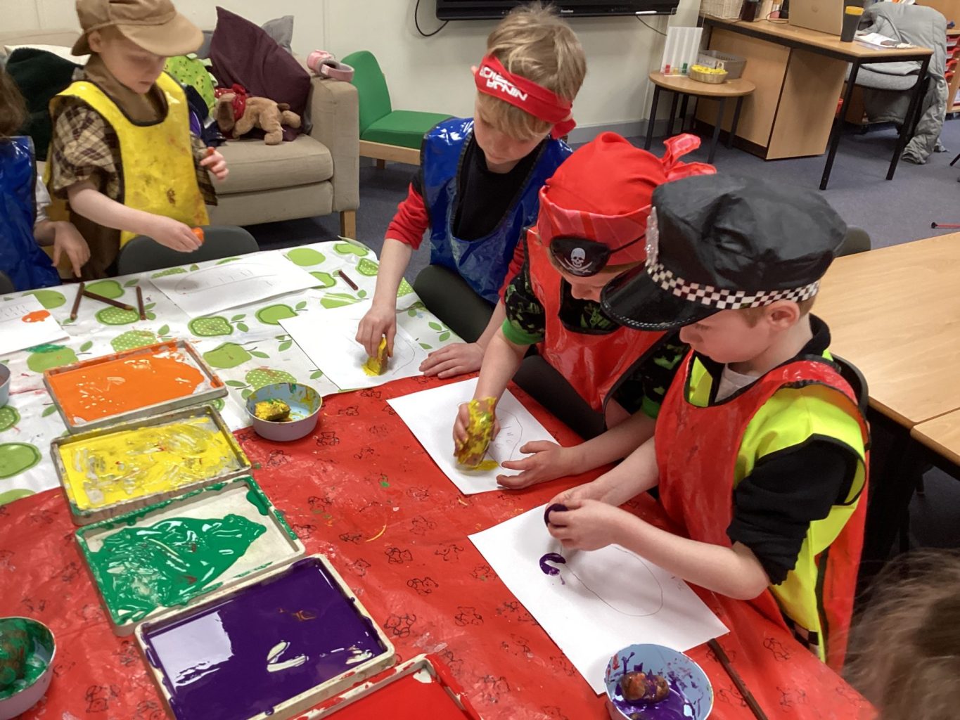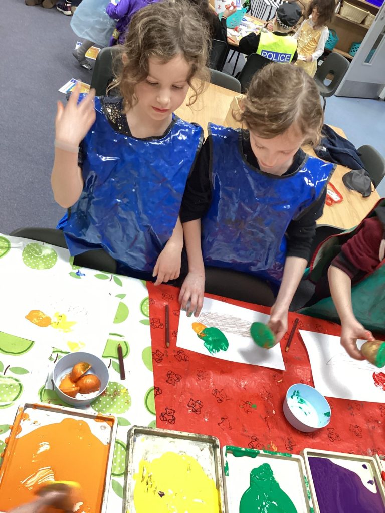 Then we read ‘Handa’s Surprise’ and did a range of activities based around the book including, fruit painting, matching the story together and acting it out.