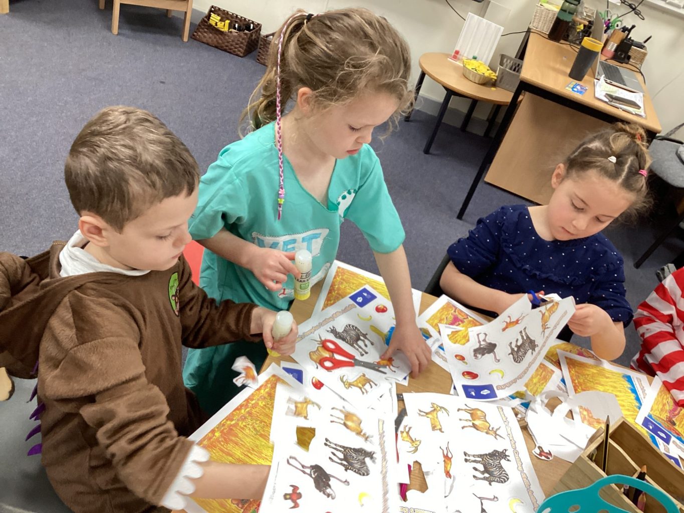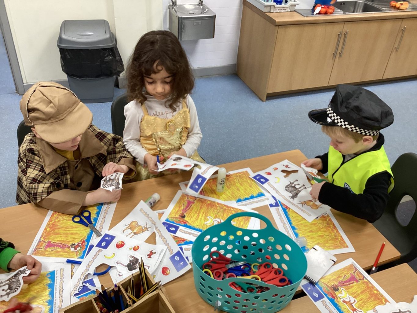 Next we completed our very own scavenger hunt where we searched for different books using a checklist of what kind of book themes, characters or plots to find before making finger puppets of the character we had come as.