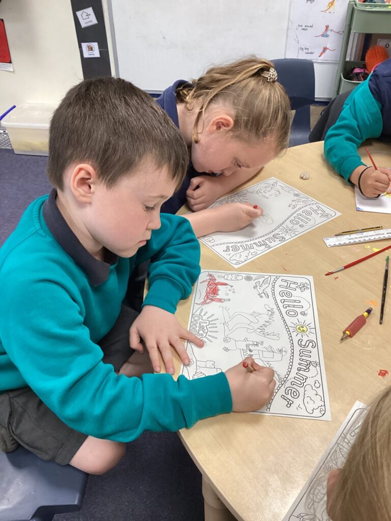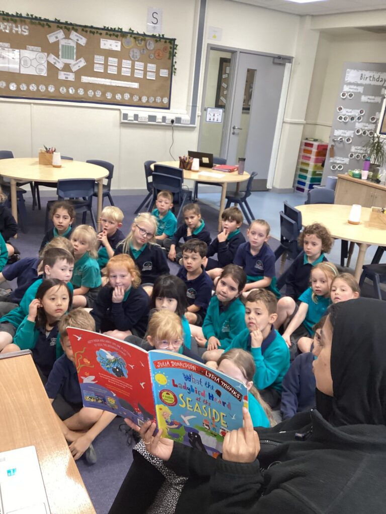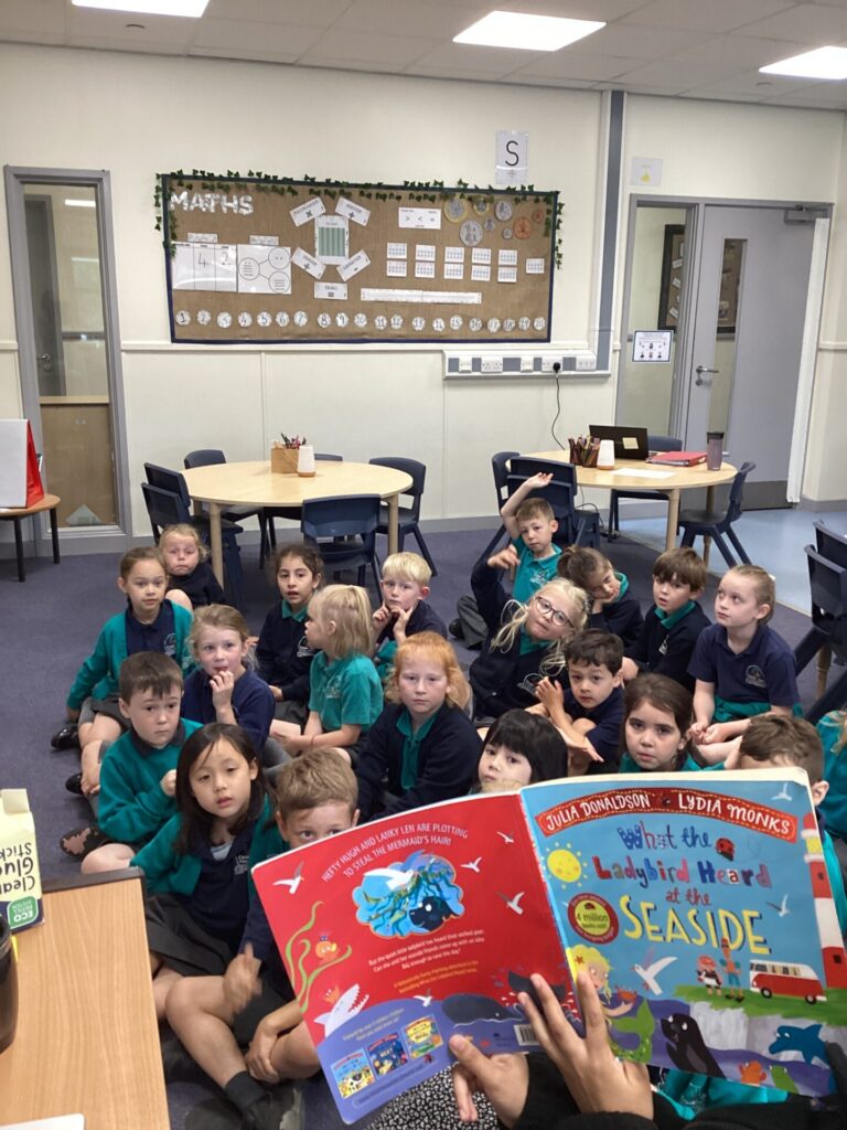We enjoyed playtime with the new Year 1’s and then we had a story. It was called ‘What the ladybird heard at the seaside’ and it was a very fun book to join in with as it had lots of rhymes.