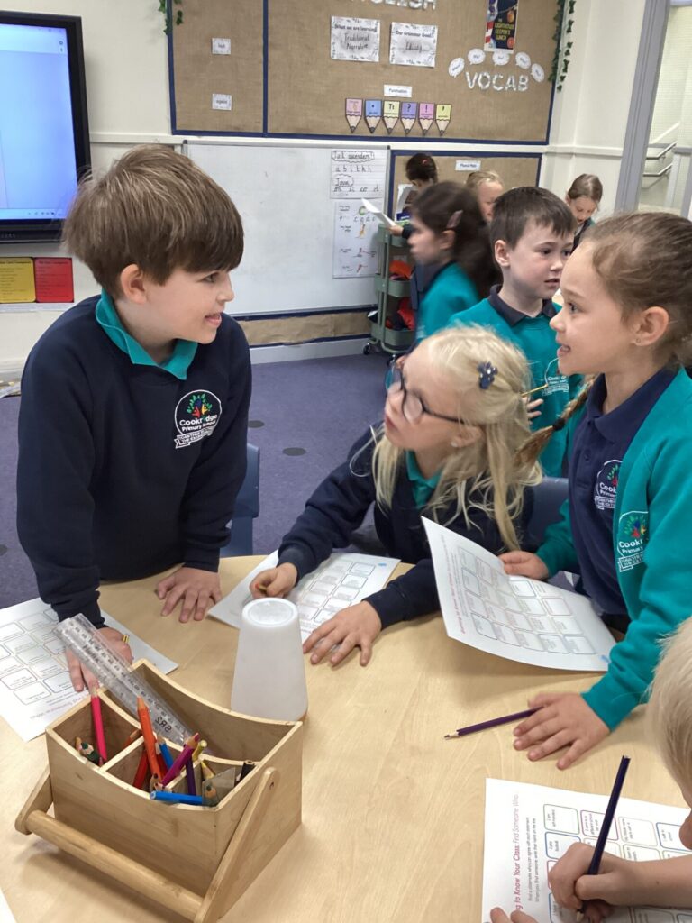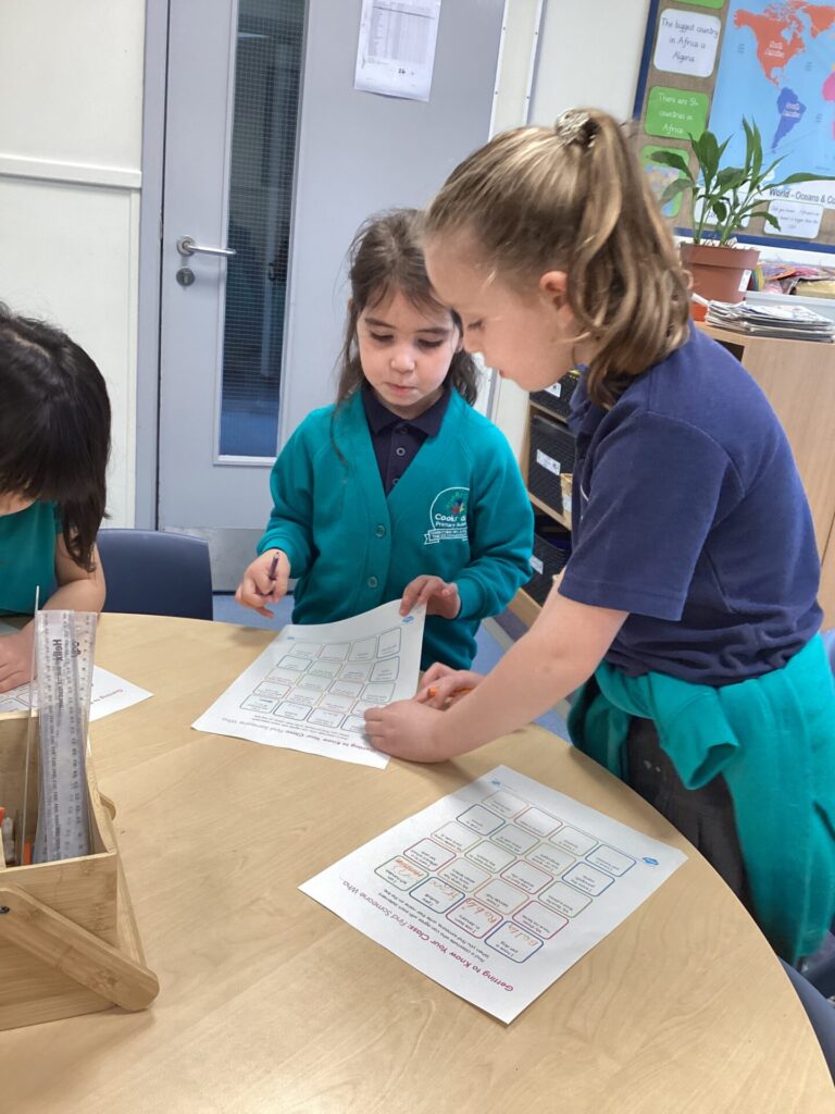 After this, we got to know members of our class including Mrs Williams and Miss Mehboob by completing the activity ‘find someone who…’. We had to go around and find random things about our friends such as who had a pet dog or who had a middle name. It was very interesting to find out fun facts about one another.
