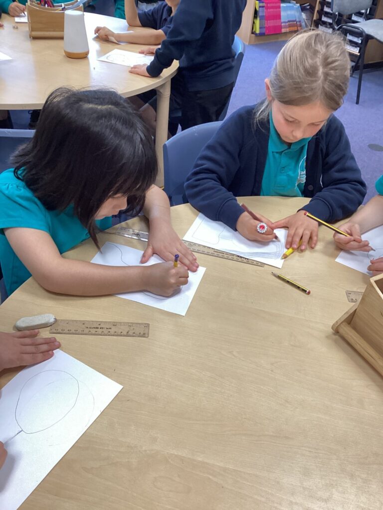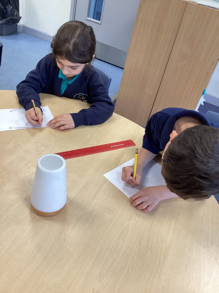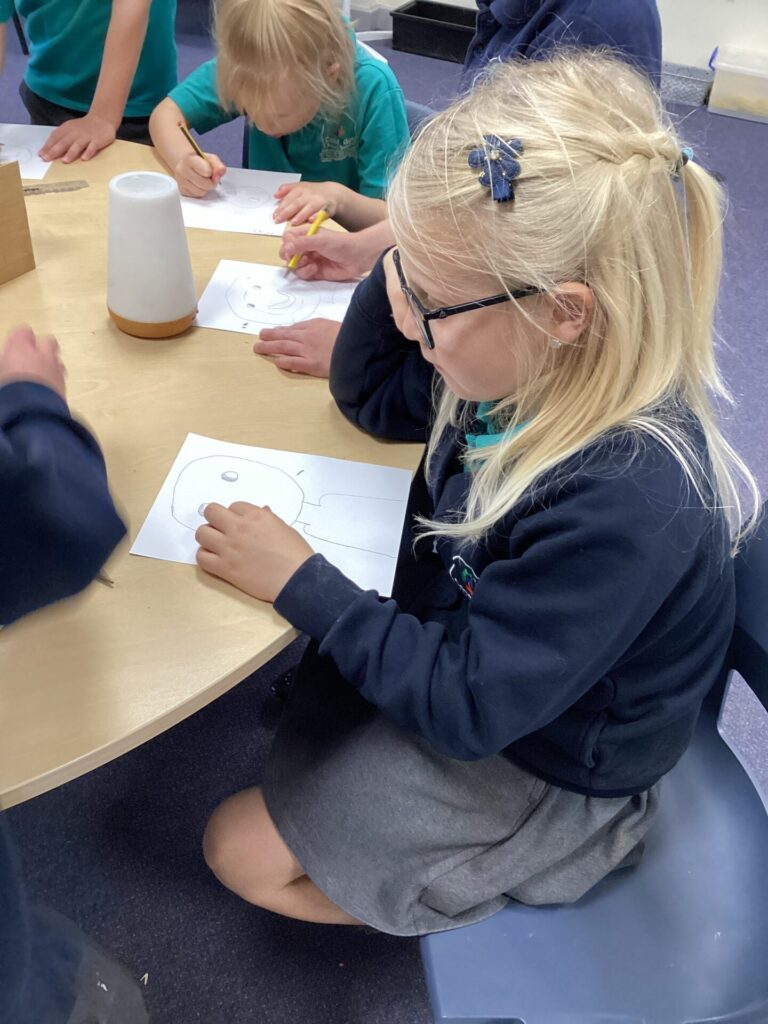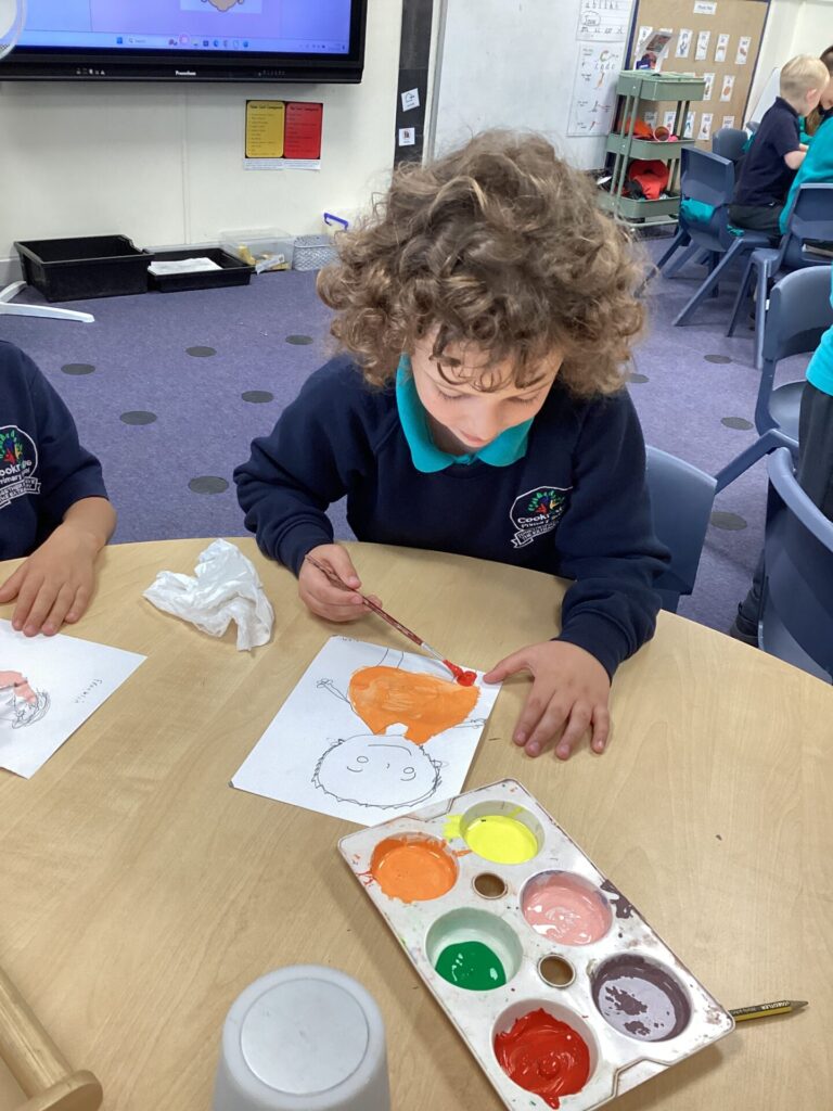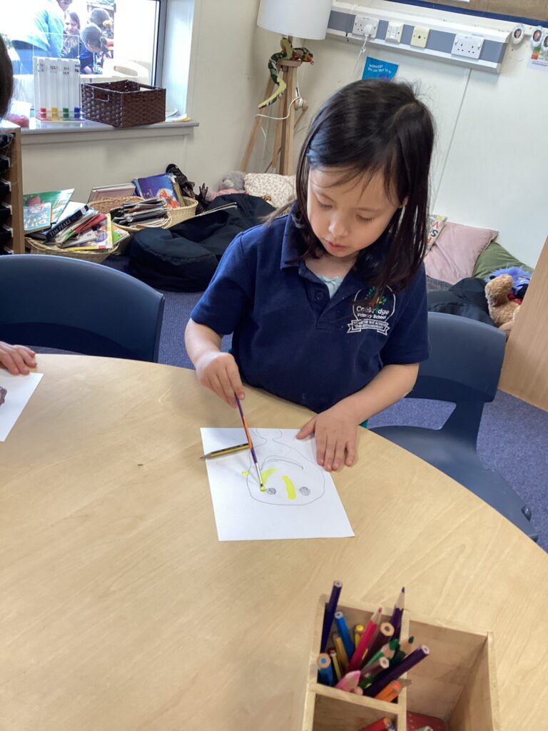 After lunch, we used our wonderful drawing skills to create a self portrait and then we painted it very carefully. We were very happy with what we produced.