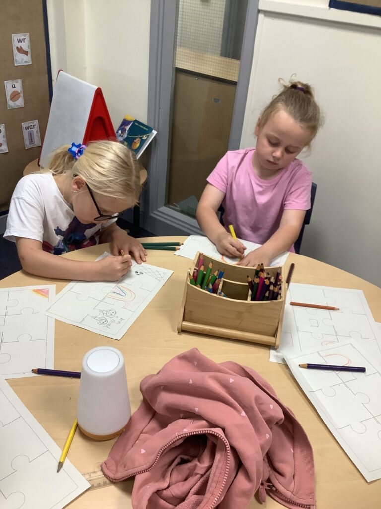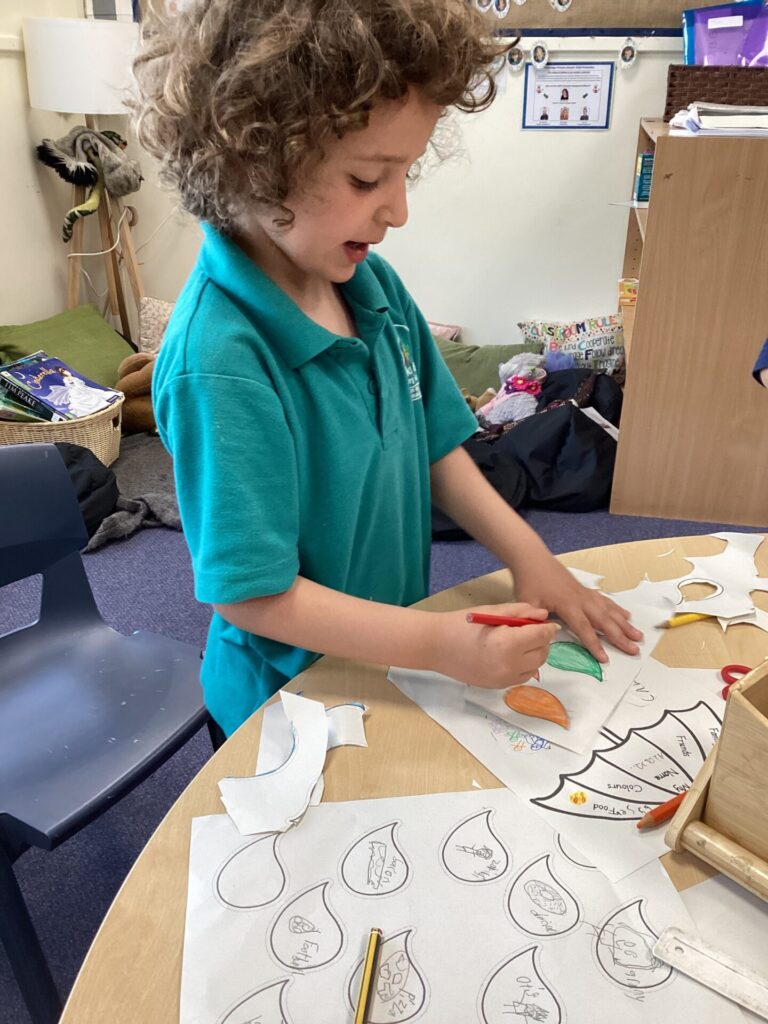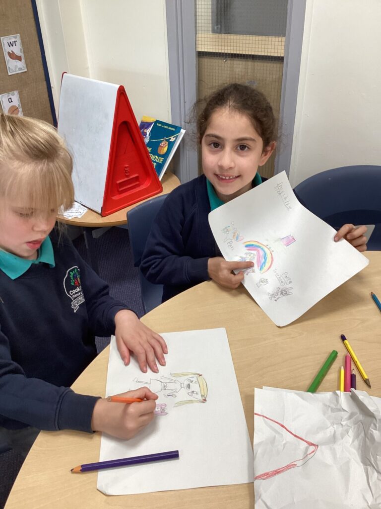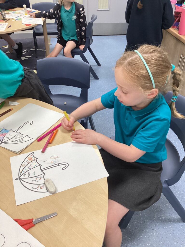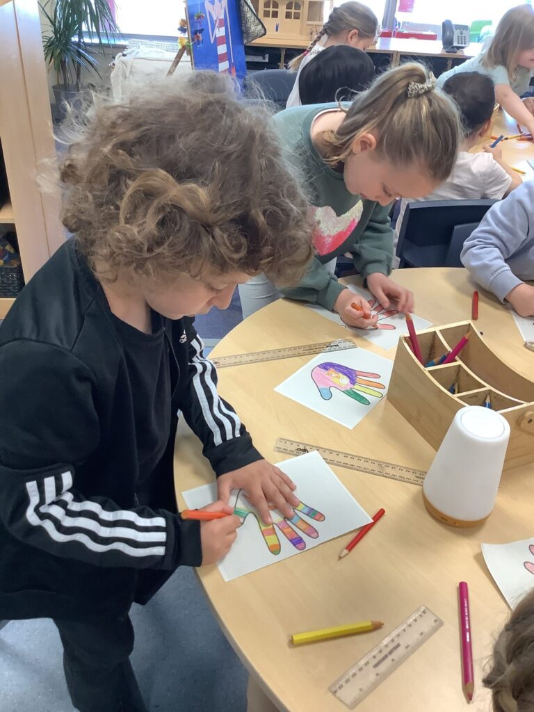 On Thursday, we explored a new book called ‘There’s only one you.’ This book helped us to recognise more ways in which we are similar and different. After this, we completed a range of calming activities that included wordsearches, doodling and mazes. We also loved completing our hand puppets by carefully stitching together different fabrics. Mrs Williams really helped us with this.