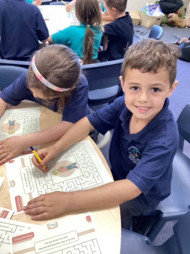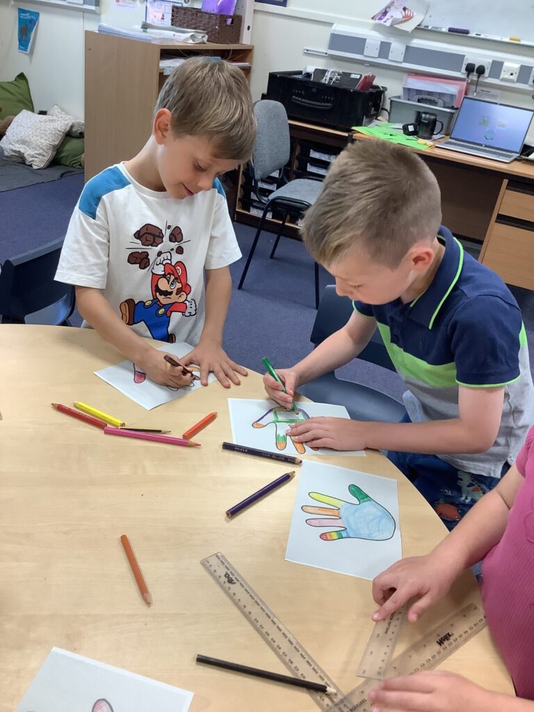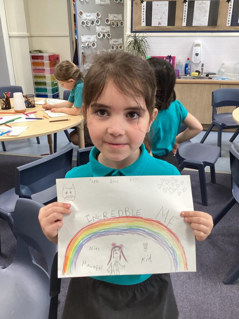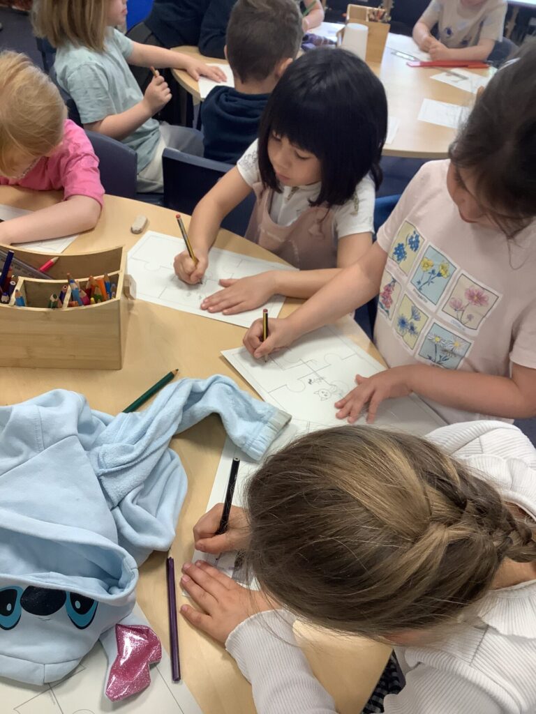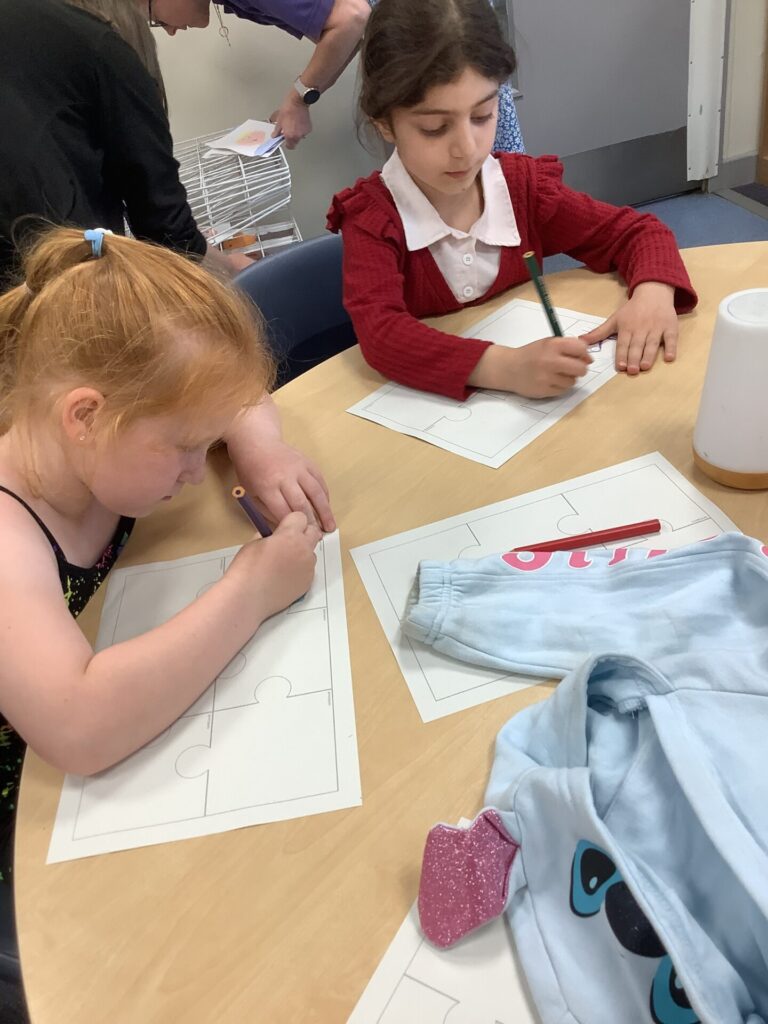 On Thursday, we explored a new book called ‘There’s only one you.’ This book helped us to recognise more ways in which we are similar and different. After this, we completed a range of calming activities that included wordsearches, doodling and mazes. We also loved completing our hand puppets by carefully stitching together different fabrics. Mrs Williams really helped us with this.