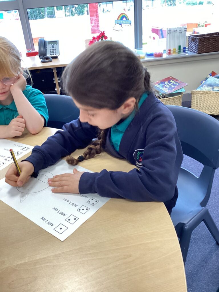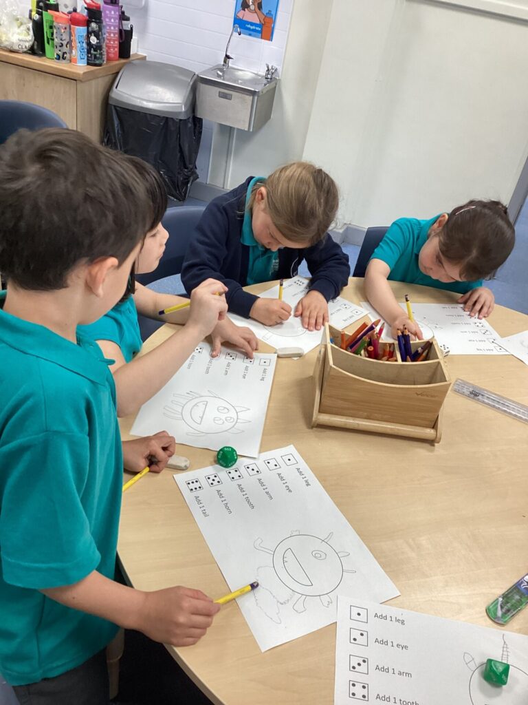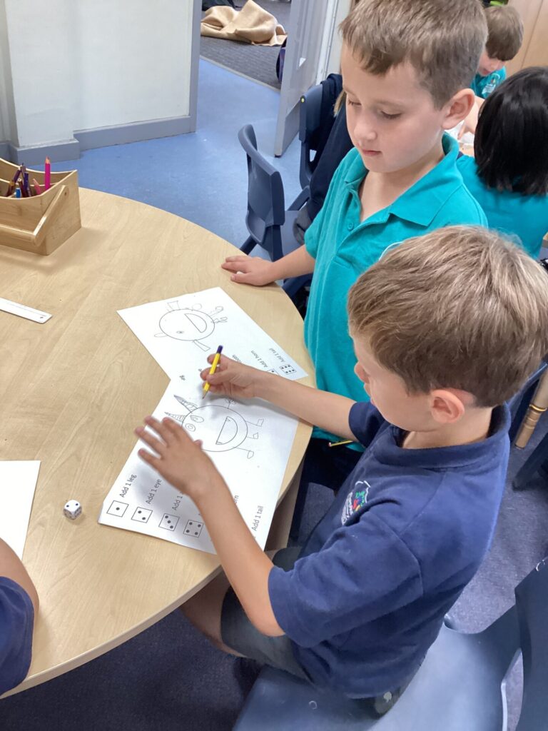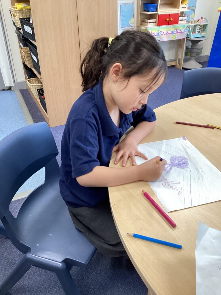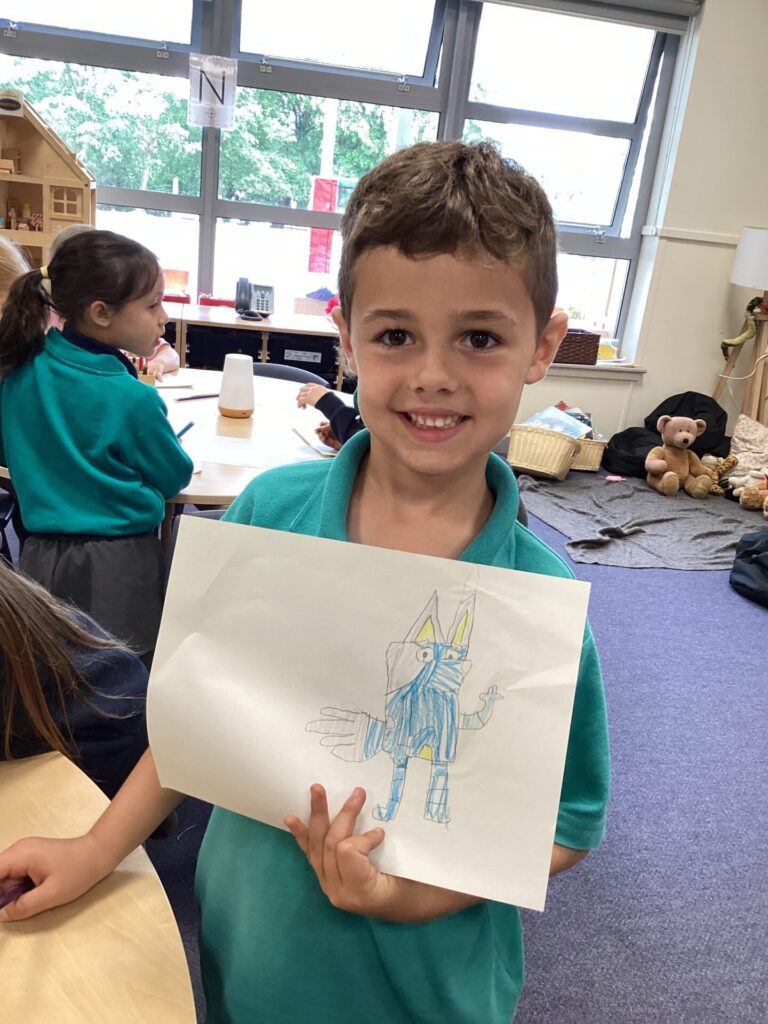 On Wednesday, we read the book ‘What makes me a me?’ We spoke all about what makes us unique and what our likes/dislikes are. We found out many things that are similar and different about each other. Then, we created our very own monsters by rolling a dice to determine what body part we would add. Our monsters looked very crazy! We also got to draw one of our favourite characters, Bluey! Finally, we had choosing in the afternoon which is always good fun!
