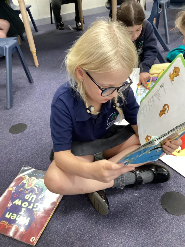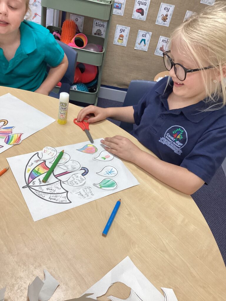 Finally, on Friday, we got to start off our day with some relaxing yoga. After this, we listened and engaged with a Now Press Play that was titled ‘We are all different.’ This allowed us to reflect on many things such as different cultures, food and homes. Then, we personalised our very own bookmarks by writing our names and drawing all the things that we love. At the end of the day, we had green time!