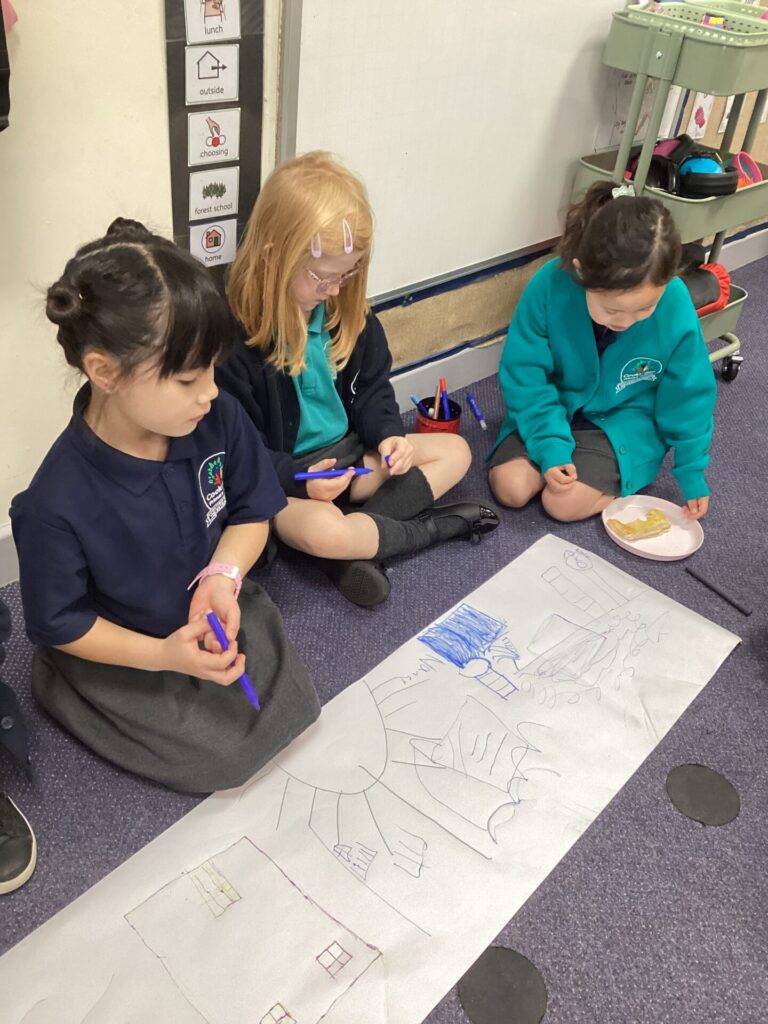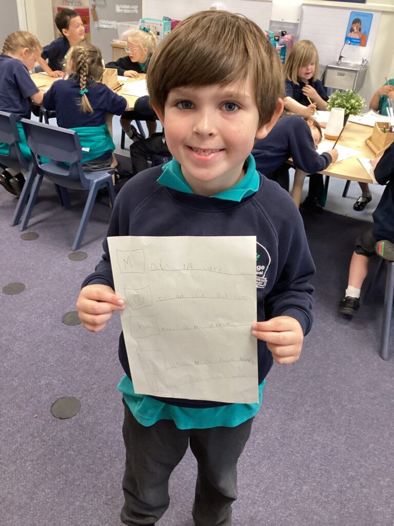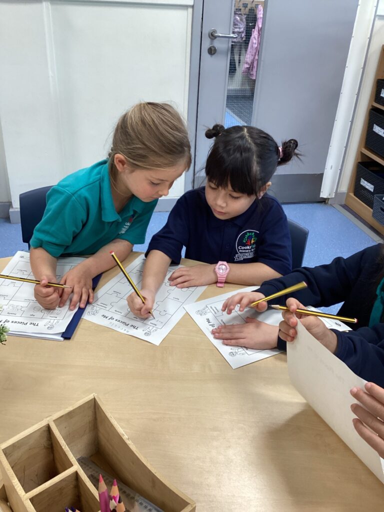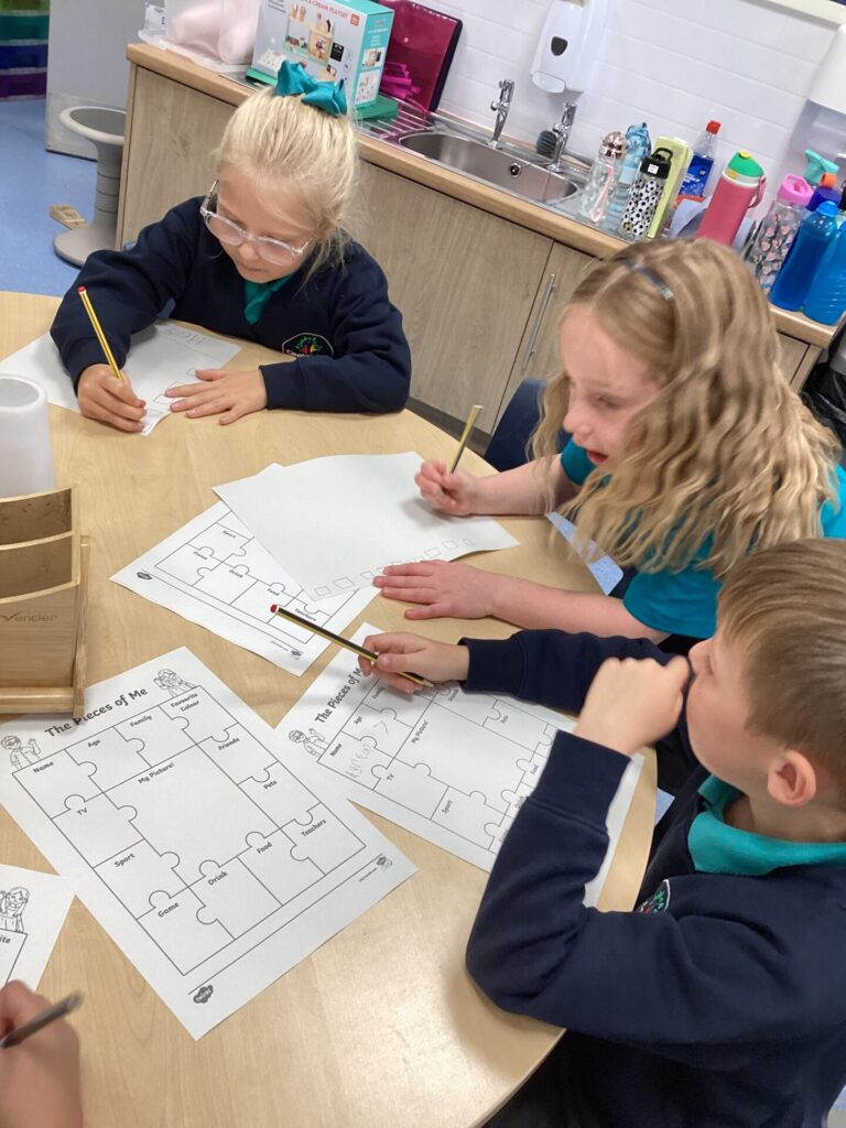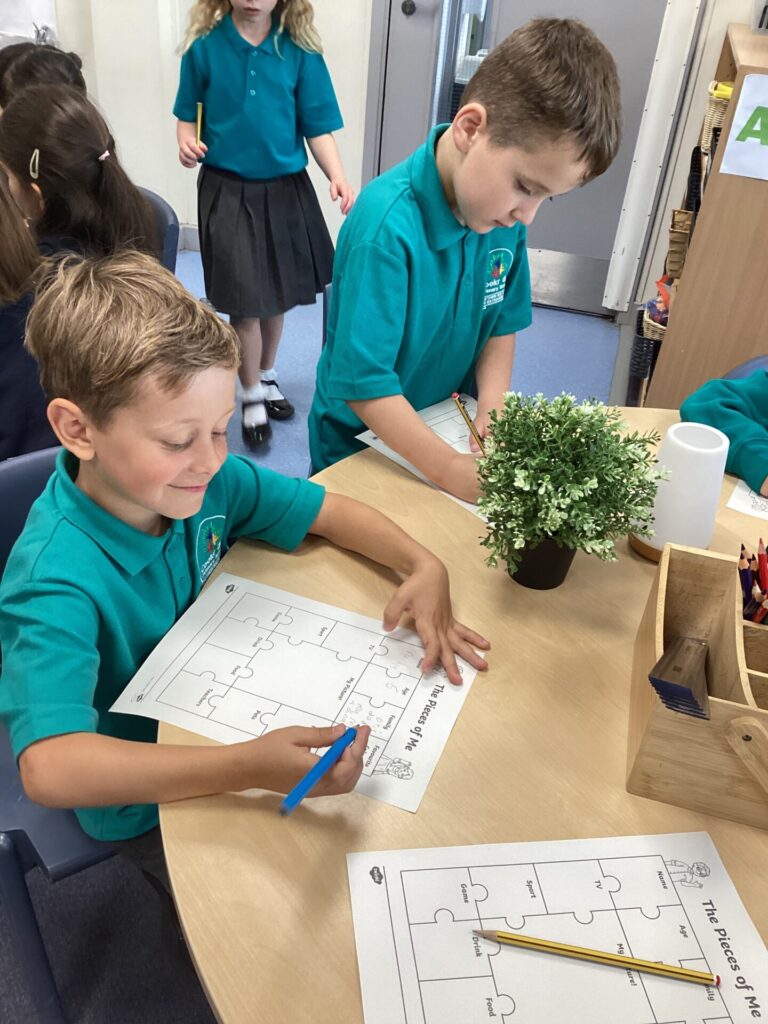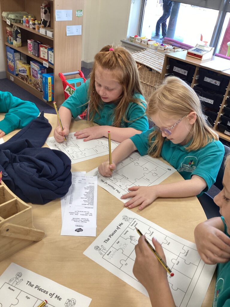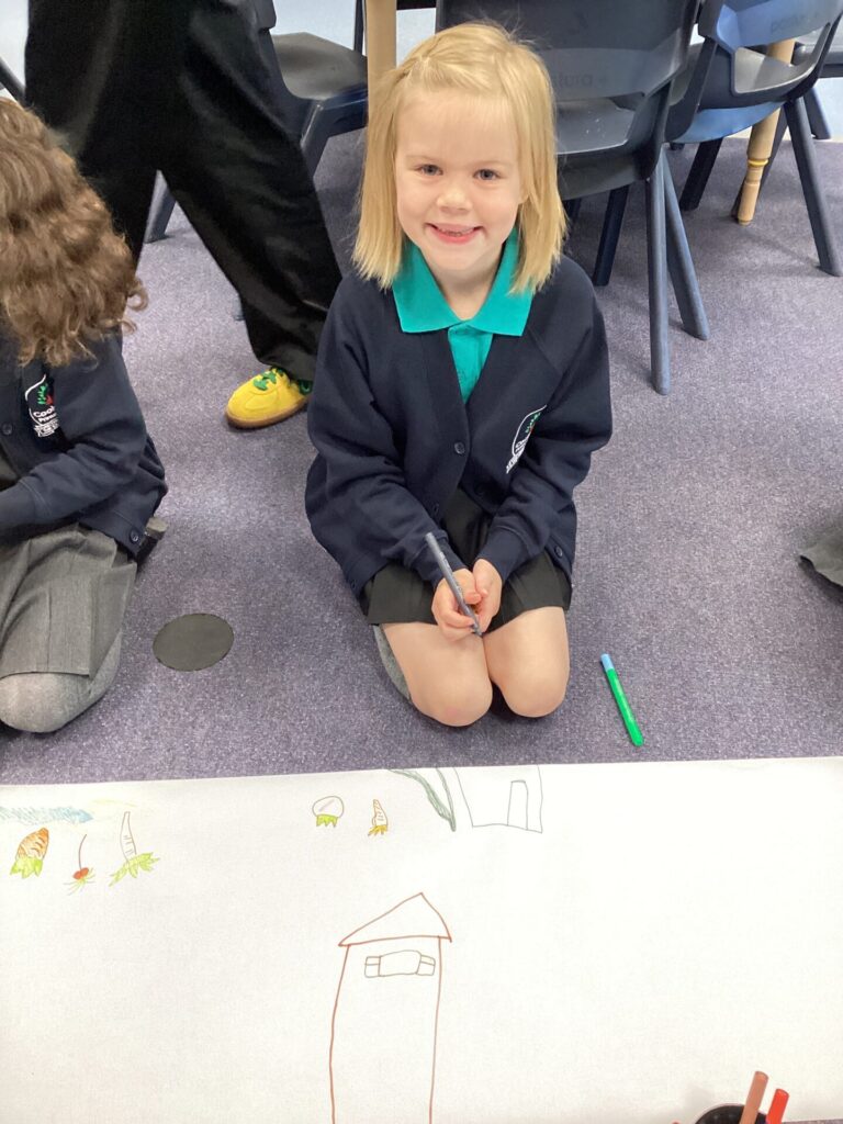 We started off our day by sharing all of our exciting holiday stories and welcoming our new class member into our classroom! Then, we completed a ‘my favourites’ worksheet where we drew all of our favourite things from toys to food. After lunch, we had choosing time where we all got creative. Some of us enjoyed arts and crafts, model making but our new ASDA roleplay area was the most exciting! Finally, we had Forest School with the whole of KS1 where we listened to little miss stories and found natural crafting resources to bring back to the classroom for the rest of the week.
