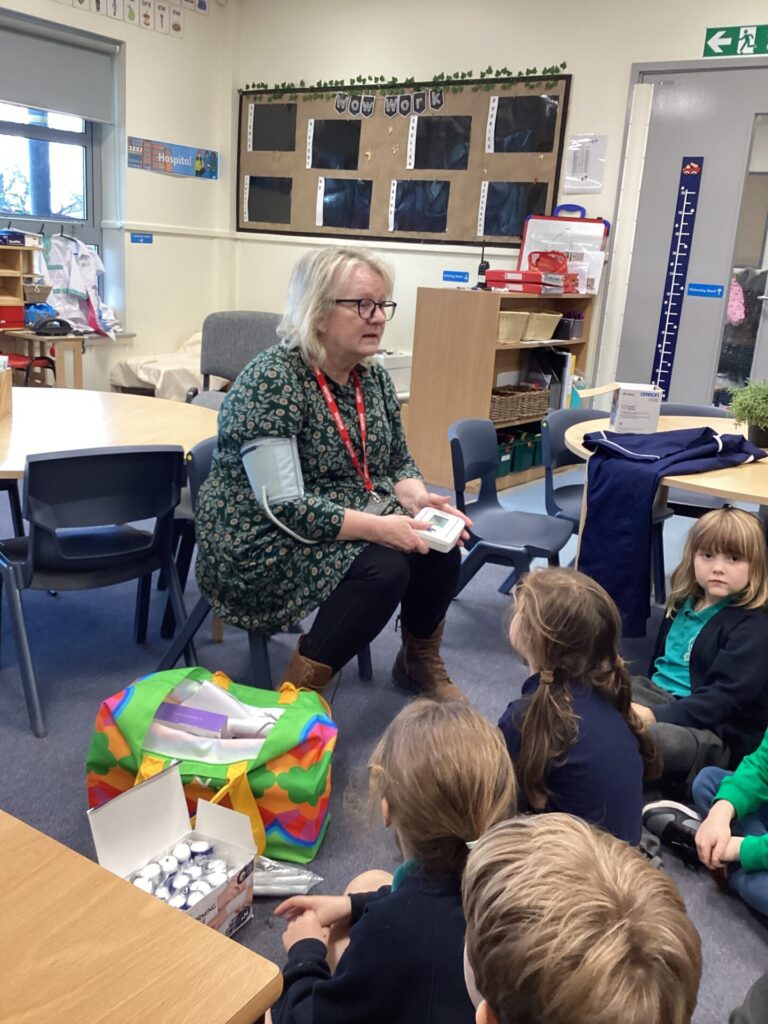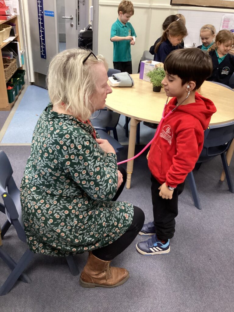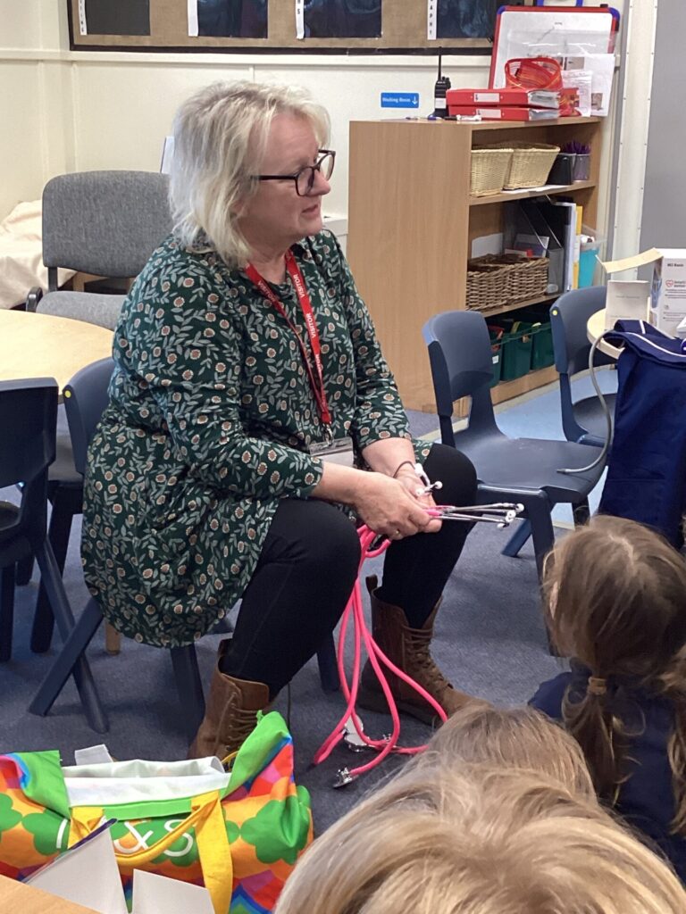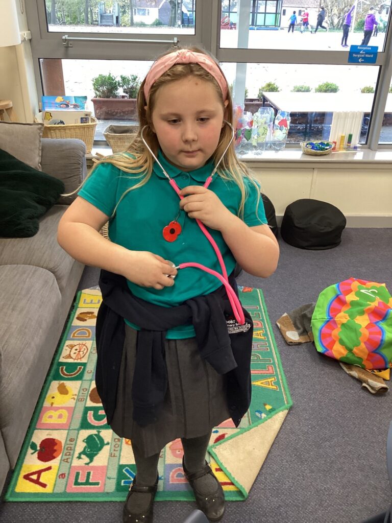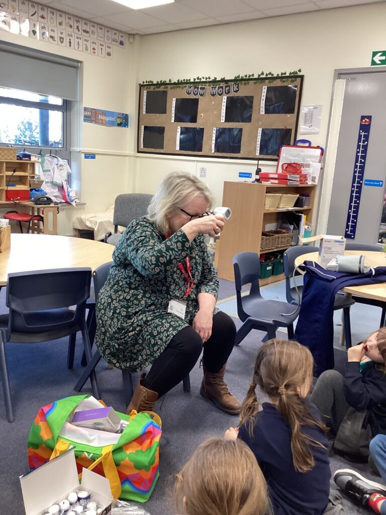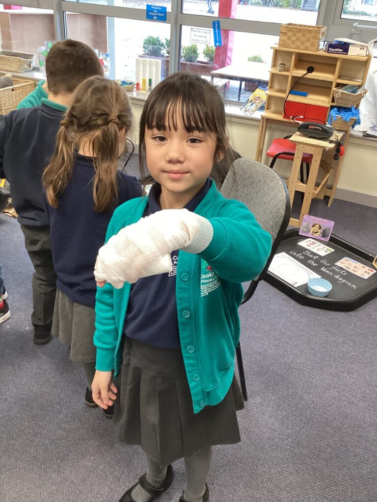 As our autumn topic is ‘Nurturing Nurses’, yesterday we were visited by a very special relative – Mrs Pottage. She explained what it’s like to be a nurse in a hospital today. She talked about how cleanliness is still very important and she needs to wash her hand lots of times just like Florence Nightingale. She bought in bandages for us to practise dressing wounds, along with syringes, torches, stethoscopes and much more which meant we could all pretend to be nurses too! We LOVED welcoming her into our classroom and send her a big thank you for doing an amazing job and helping us learn!