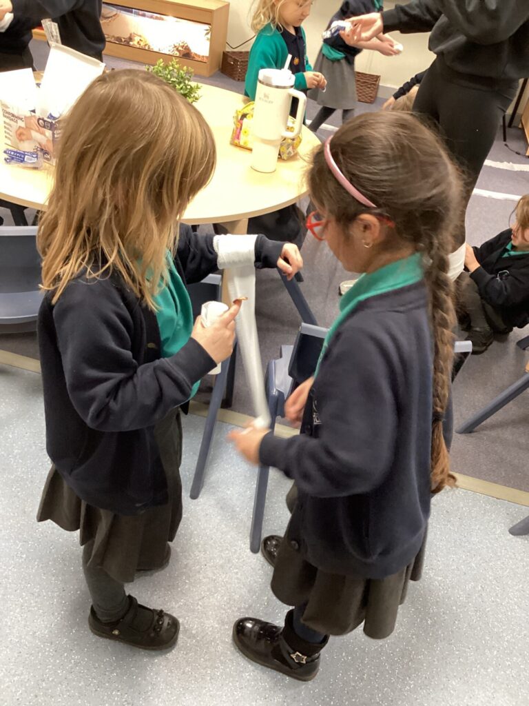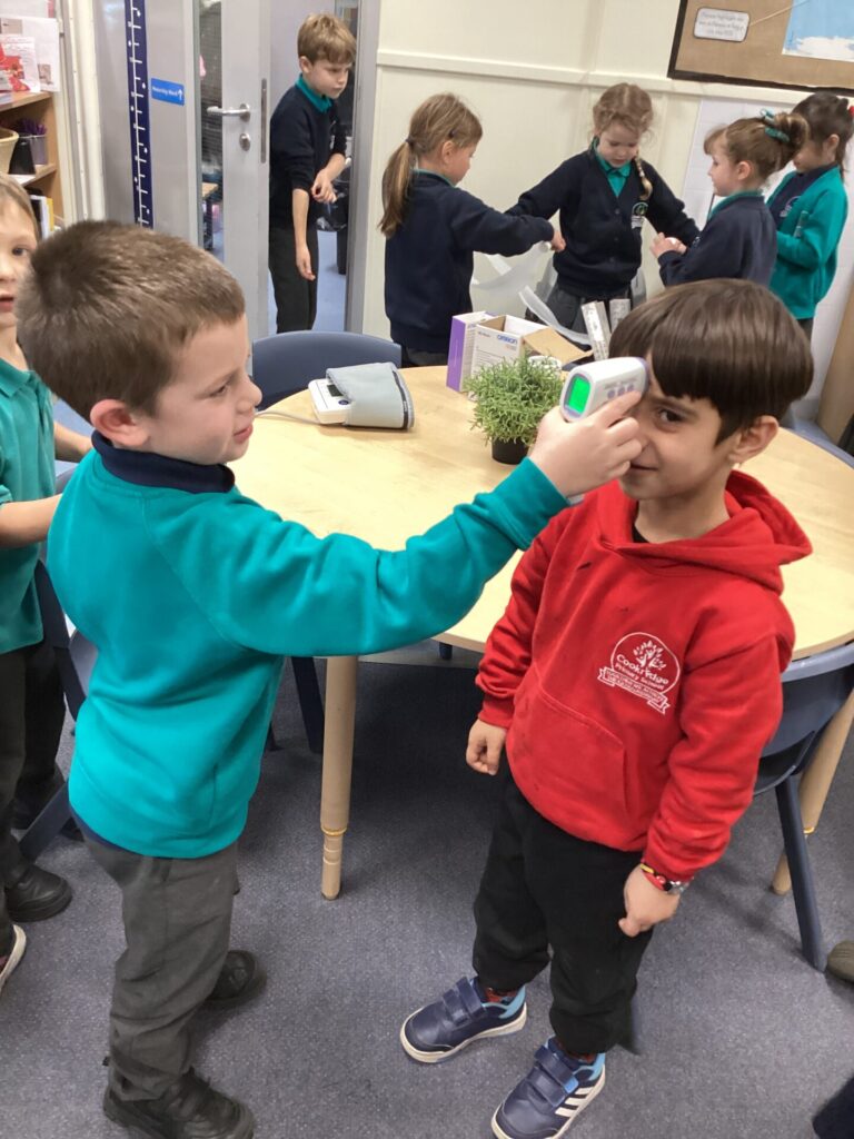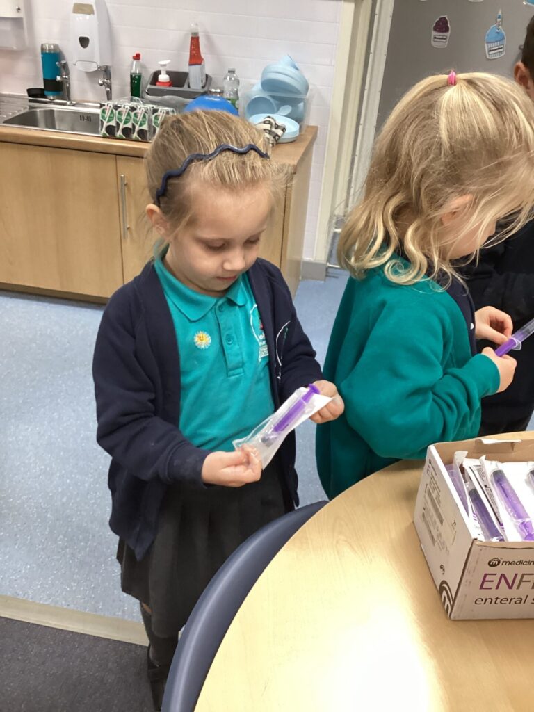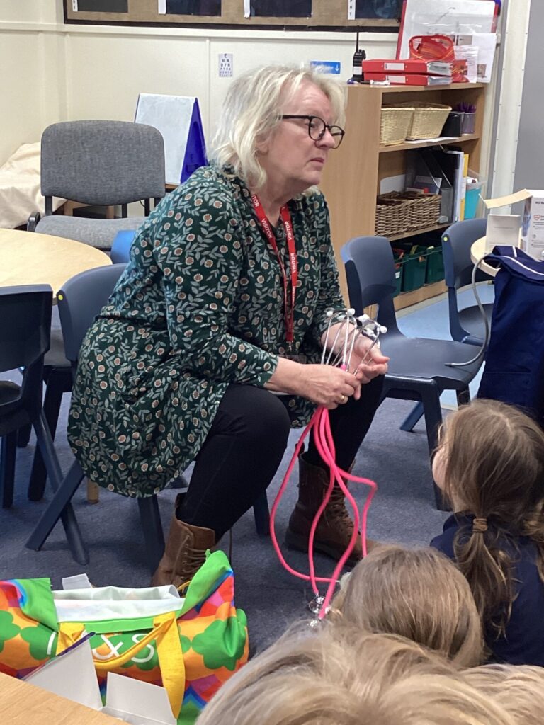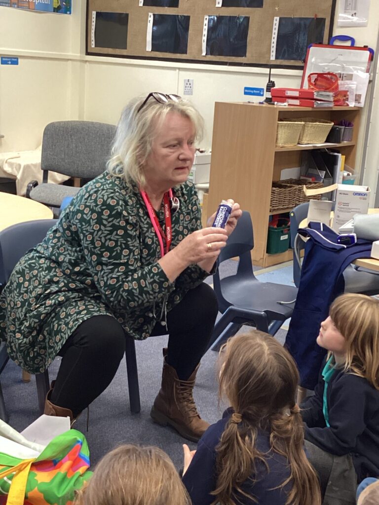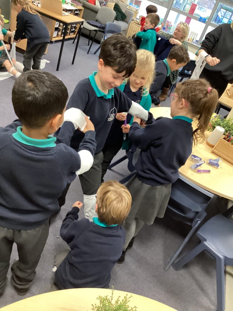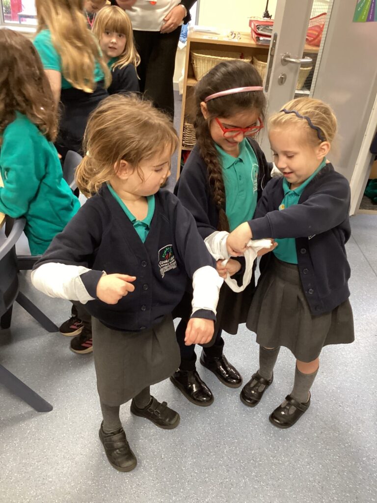 As our autumn topic is ‘Nurturing Nurses’, yesterday we were visited by a very special relative – Mrs Pottage. She explained what it’s like to be a nurse in a hospital today. She talked about how cleanliness is still very important and she needs to wash her hand lots of times just like Florence Nightingale. She bought in bandages for us to practise dressing wounds, along with syringes, torches, stethoscopes and much more which meant we could all pretend to be nurses too! We LOVED welcoming her into our classroom and send her a big thank you for doing an amazing job and helping us learn!