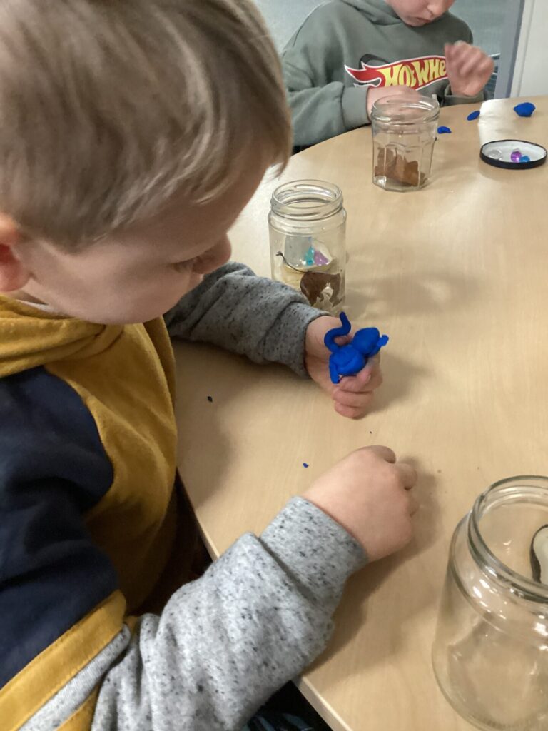 They named their Bog Baby, created a habitat and we all discussed what they might need. Finally they sang and read stories to their new Bog Baby.