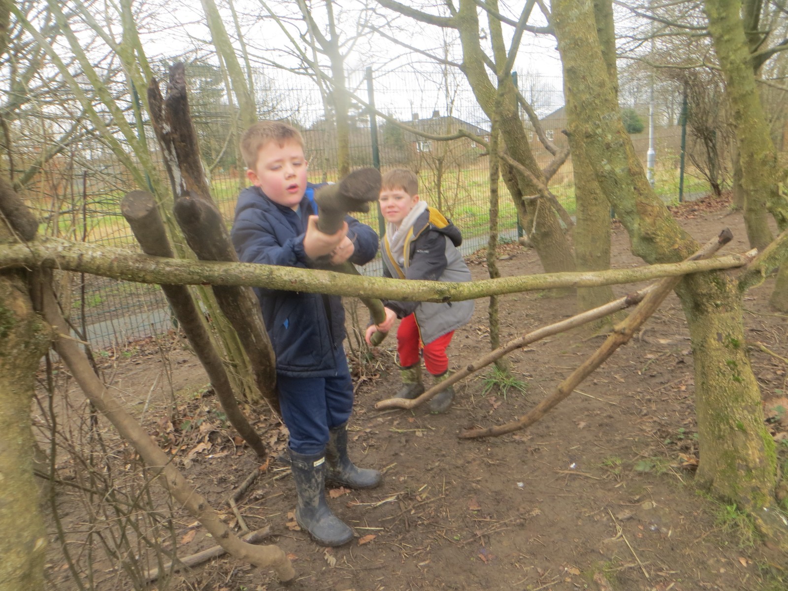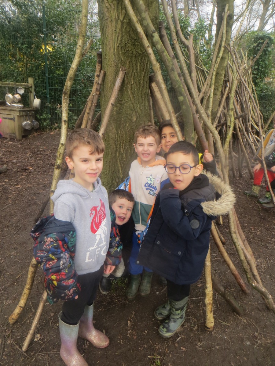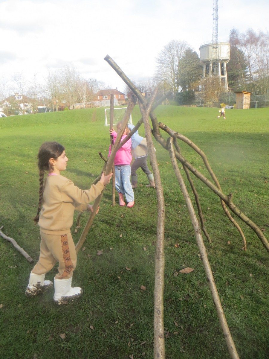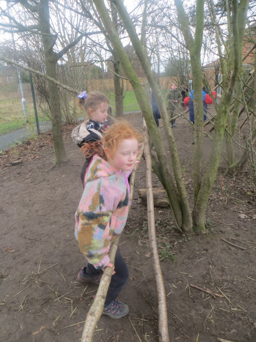 Today in our Forest School sessions, pupils in KS1 began learning about building dens. To start with, children looked at three different types of dens already built on the school field called ‘A-Frame’, ‘Lean-To’ and ‘Tepee.’ Pupils discussed each one, looking at their features and what similarities and differences they all had. After a crash course in how to construct each type, children organised themselves into groups to explore and investigate building all three types of dens. Along the way, they had to work together, communicate effectively and problem solve and, once complete, safely take down their den before re-building a different type. They reflected on which ones were easier or harder to construct as well as highlighting things that didn’t go to plan and how they overcame challenges when building them – a great day KS1 – well done everyone on your first session of den building.