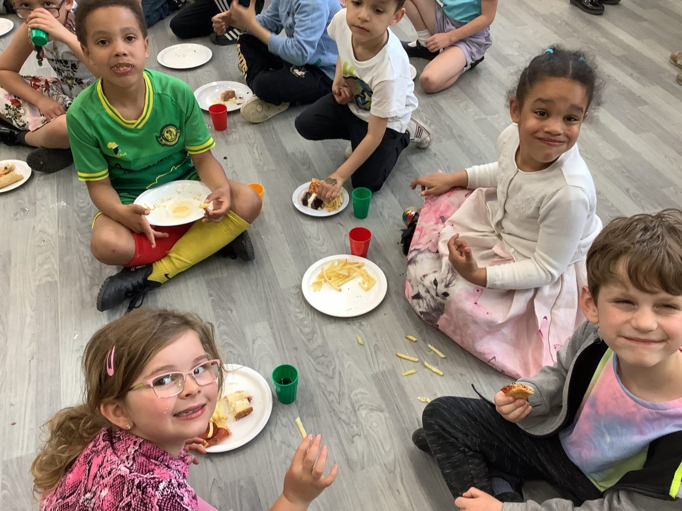After the whole school assembly, with a brilliant introduction by some of the KS2 pupils, all children were invited to stay in the hall and join in the festivities. Many children chose to get a temporary tattoo, whereas some went straight for the food table! Thanks to the hard work and generosity of some fabulous parents and friends of the school, the children and staff enjoyed a fabulous spread of food and drink in the school hall. There was so much delicious food and it was fantastic to see so many children willing to try different and unfamiliar foods. A great time was had by all!