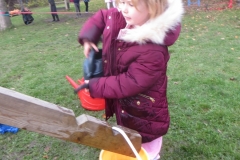 Pupils in Key Stage One have had a terrific day outside. Children were free to choose from a range of activities including using a flint and steel to create a spark in order to set some cotton wool on fire and creating firework and bonfire related collages from natural materials to link to their English work. In addition, children also used the tree house and slackline to promote their physical wellbeing and exercise and enjoyed digging and making things in the sand and mud pits. Pupils loved one of our new additions to the Forest School area -our outdoor scales! Children were set the challenge of balancing buckets (which were all different shapes and sizes) using water. Our final activity was over at the mud kitchen and a range of delicious treats were served up including pumpkin soup.