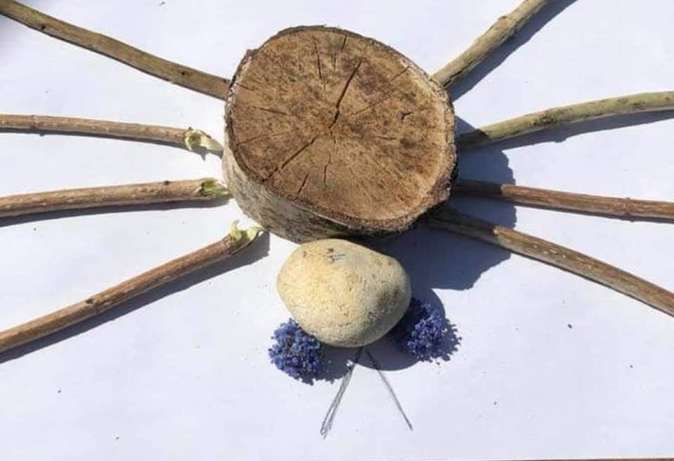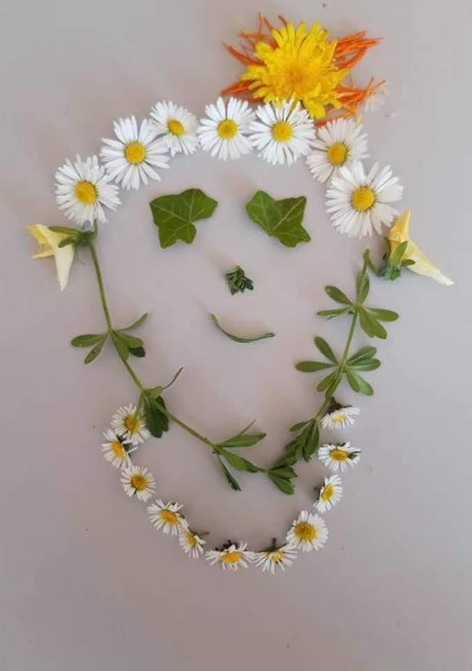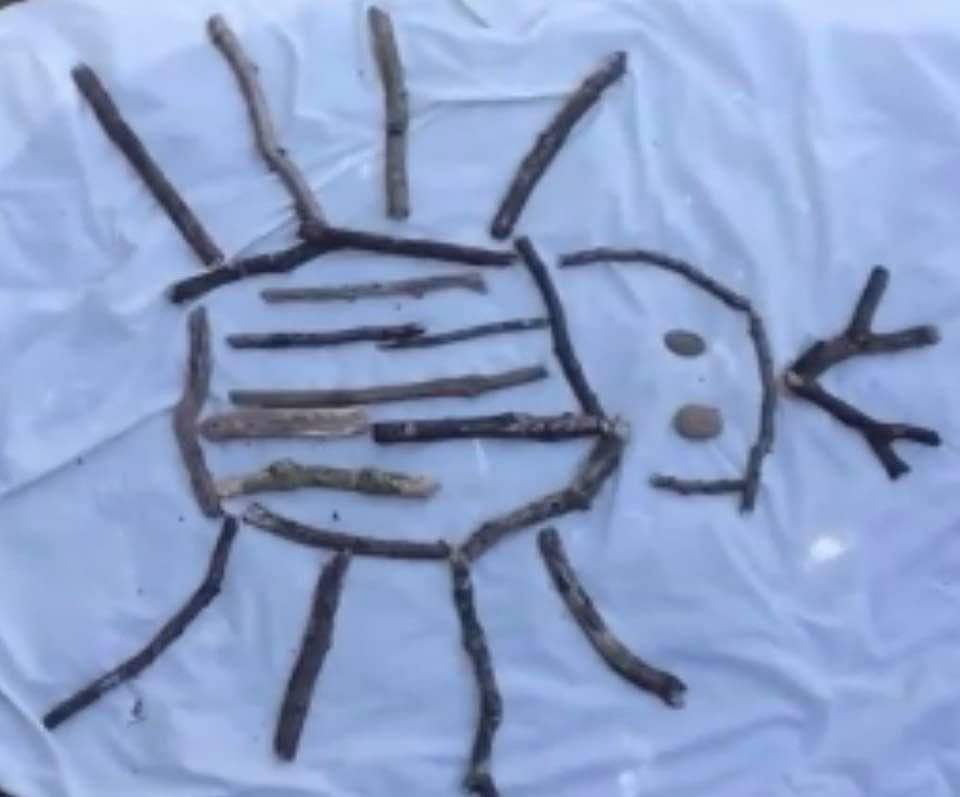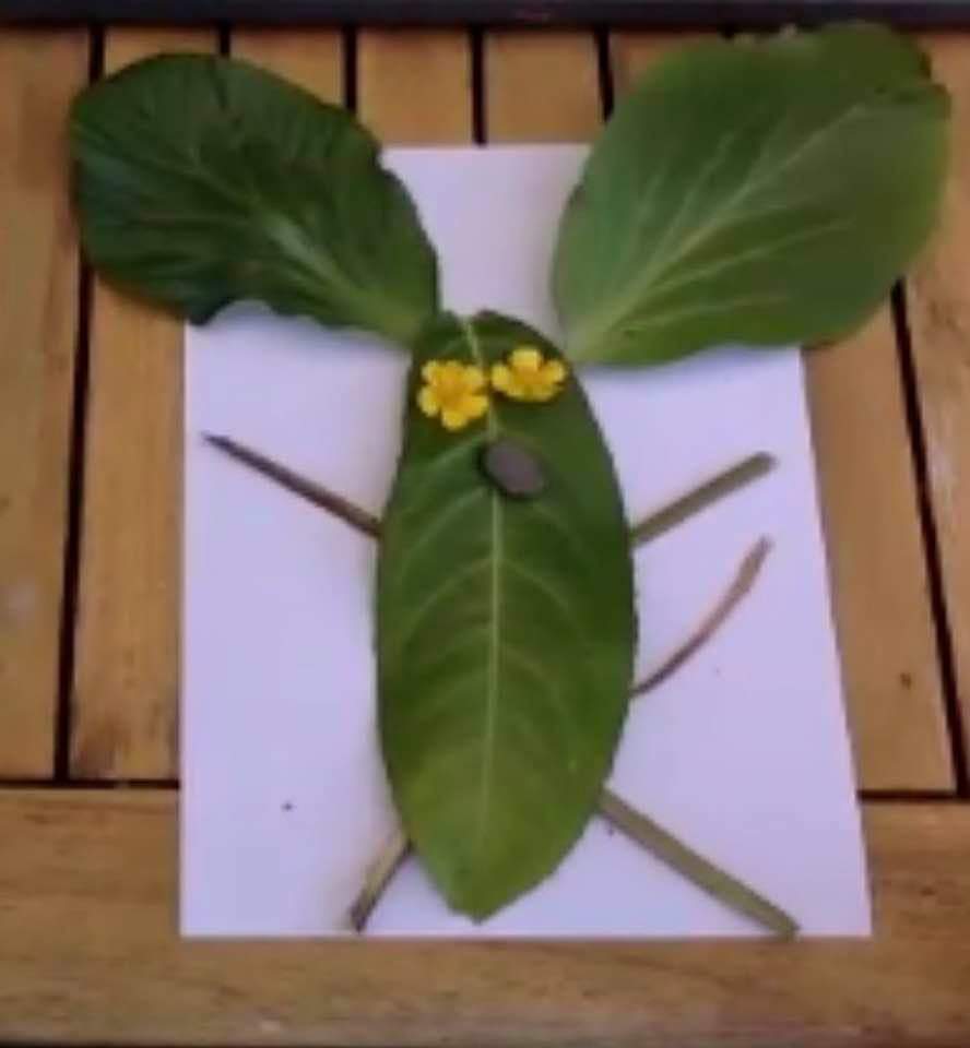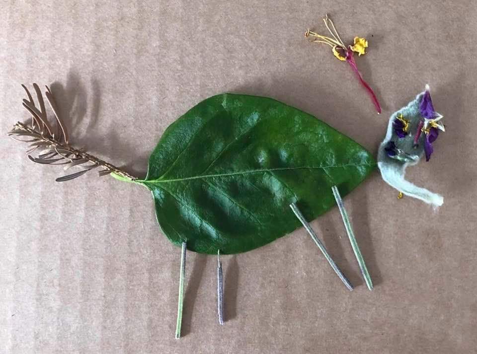 Can you create a picture of an animal using things we find outside in the garden or on a walk?