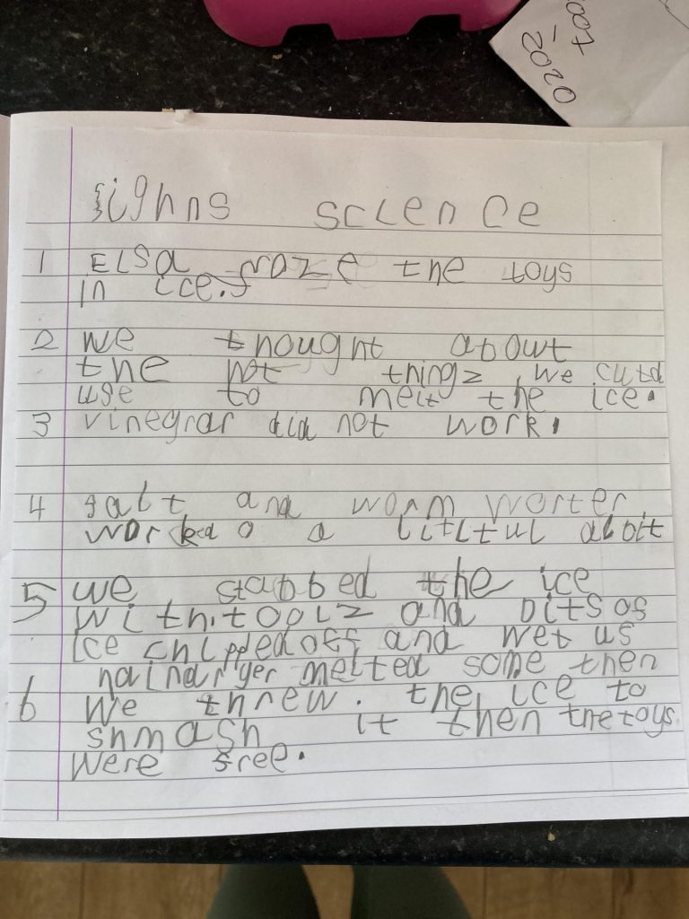 Nathan does an Ice science experiment and writes up his results – Amazing!