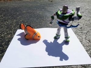 Choose an area outside where the sun shines for most of the day and place your toys next to each other. You can either place them onto paper or directly on the ground.