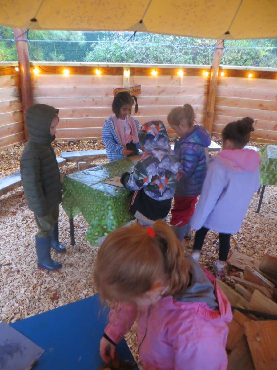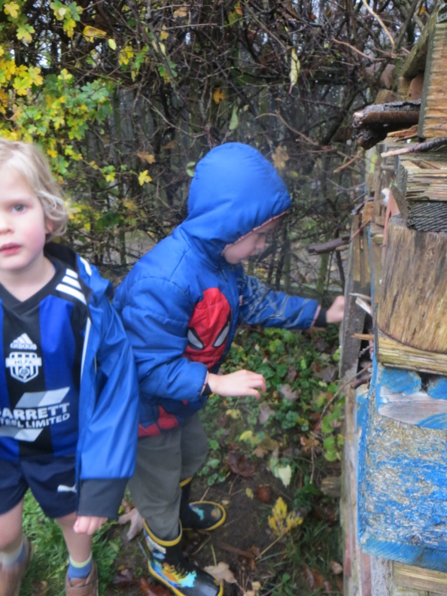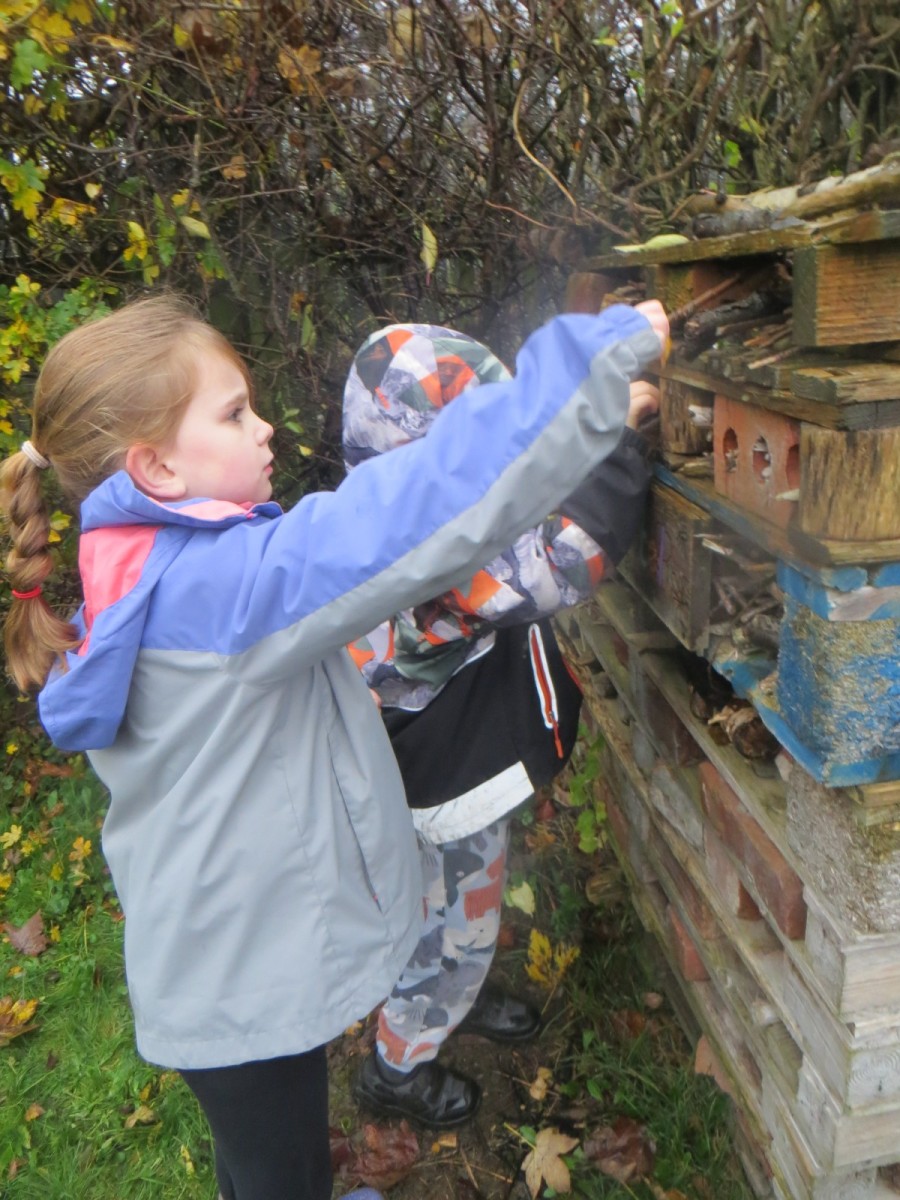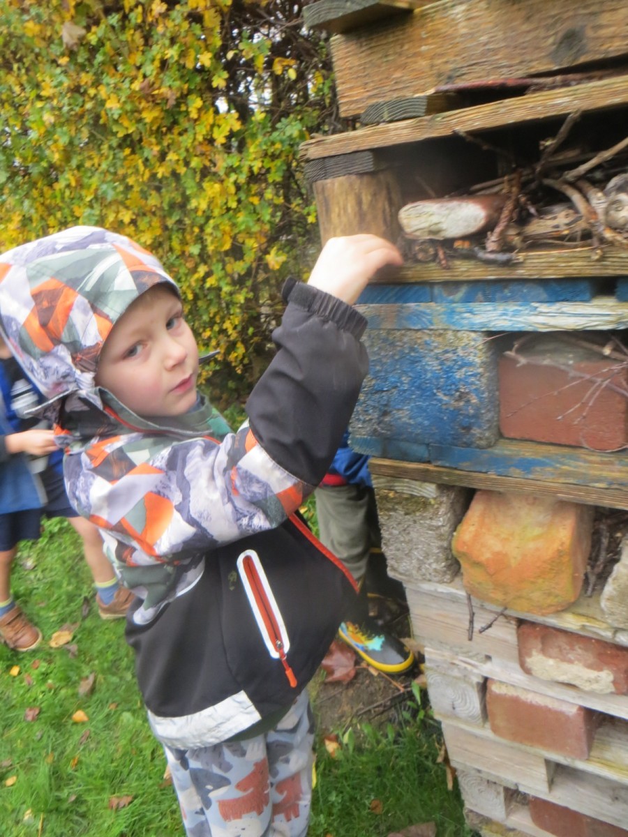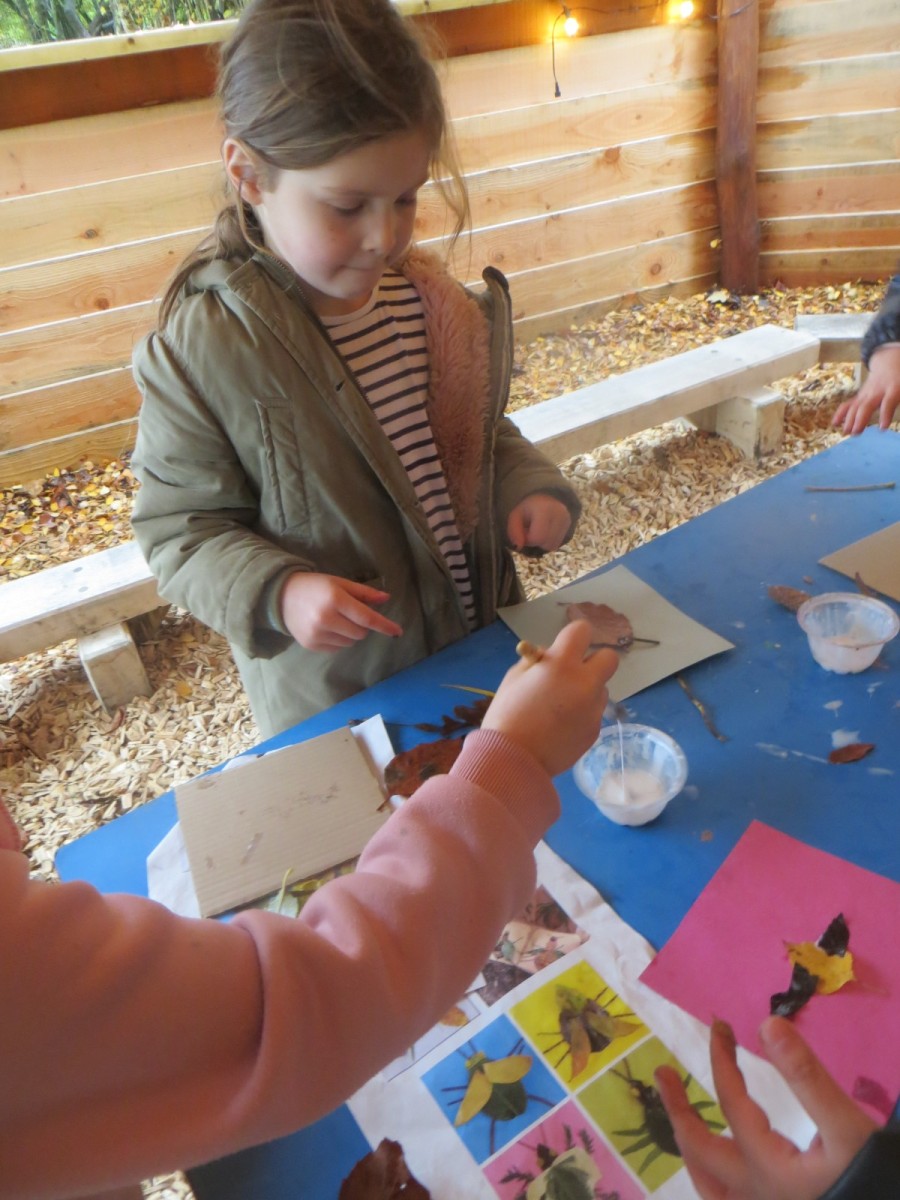 We’ve had a great day today in KS1 during our Forest School sessions despite the wet start to the day! Building on our skills in loose parts from last half-term, we began by looking at the school’s bug hotel. We discussed why it was there, what it’s used for, how it had been made and what might live in there. We then went on a bug hunt around the school field using our magnifying glasses. Turning over leaves, stones and logs, we were delighted to find a wide range of insects including spiders, ladybirds, beetles, woodlice, worms, slugs, snails and even a shield bug! Children were then tasked to recreate the bugs they’d discovered using loose parts. Which bugs can you spot? To end the session, we placed all the natural resources we had used into the bug hotel for the coming winter to help the creepy crawlies at Cookridge!