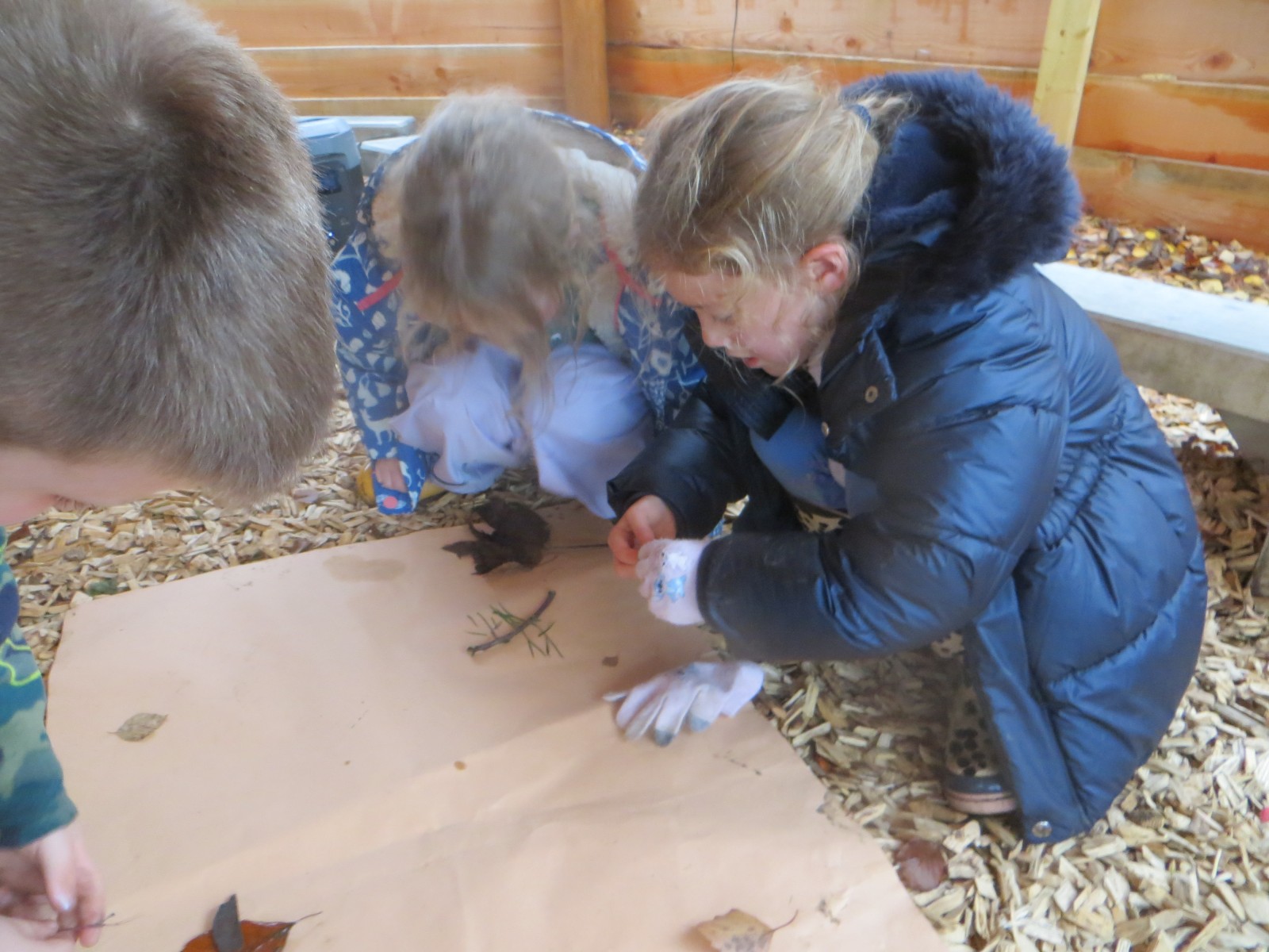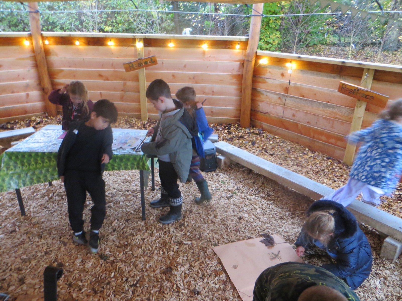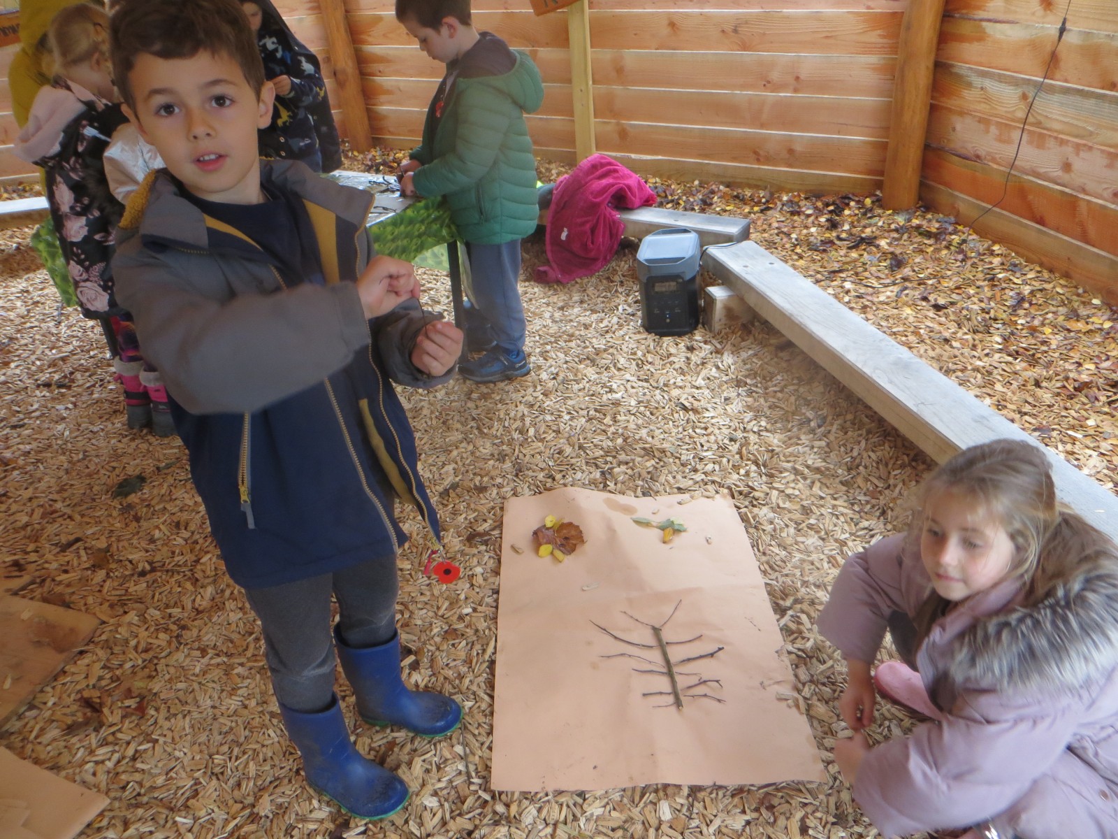 We’ve had a great day today in KS1 during our Forest School sessions despite the wet start to the day! Building on our skills in loose parts from last half-term, we began by looking at the school’s bug hotel. We discussed why it was there, what it’s used for, how it had been made and what might live in there. We then went on a bug hunt around the school field using our magnifying glasses. Turning over leaves, stones and logs, we were delighted to find a wide range of insects including spiders, ladybirds, beetles, woodlice, worms, slugs, snails and even a shield bug! Children were then tasked to recreate the bugs they’d discovered using loose parts. Which bugs can you spot? To end the session, we placed all the natural resources we had used into the bug hotel for the coming winter to help the creepy crawlies at Cookridge!