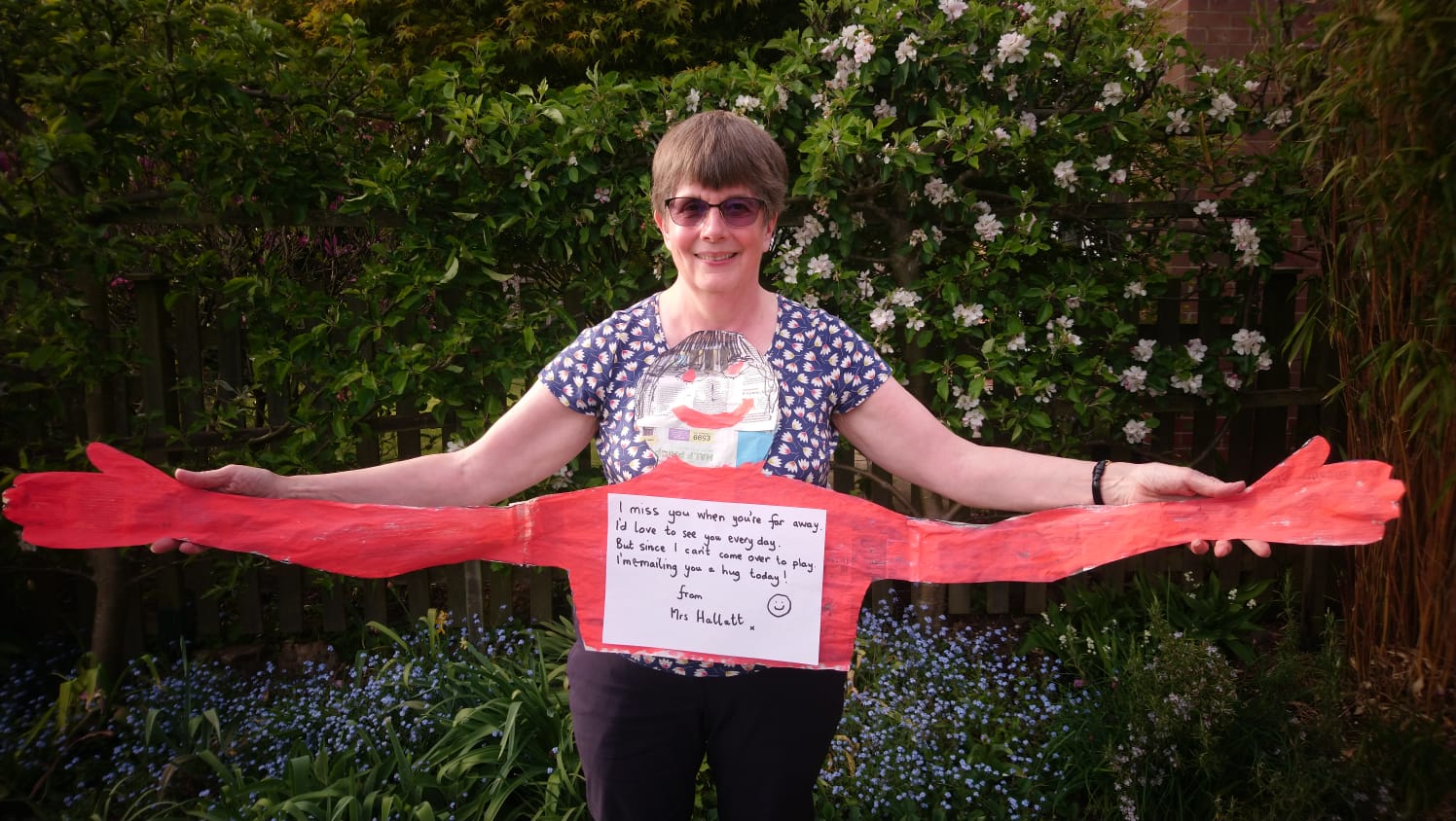 Mrs Hallatt is missing you all and has a new idea to send you all a big hug- have a look to see how you can make one too. Please send back pictures of your hugs.