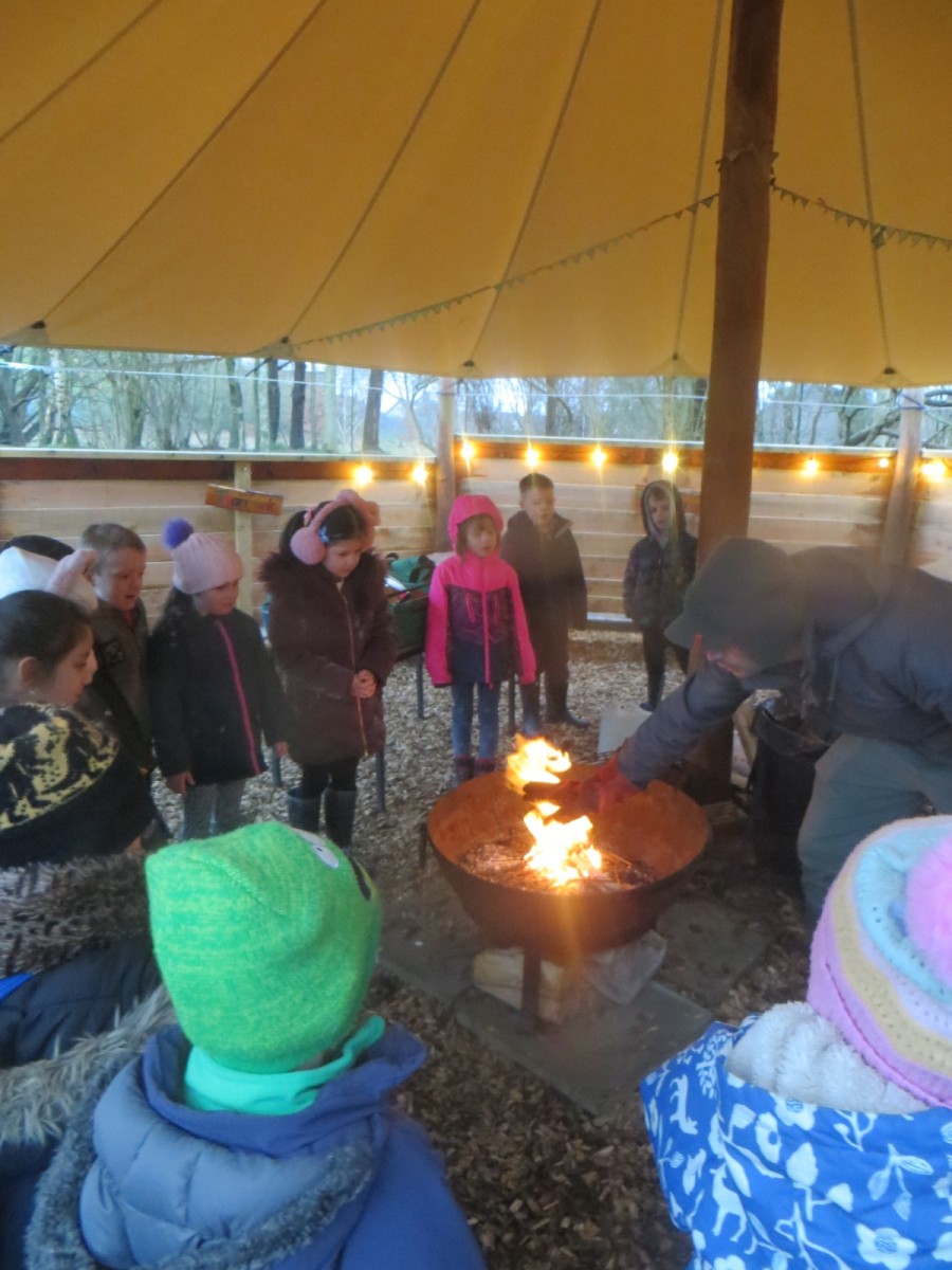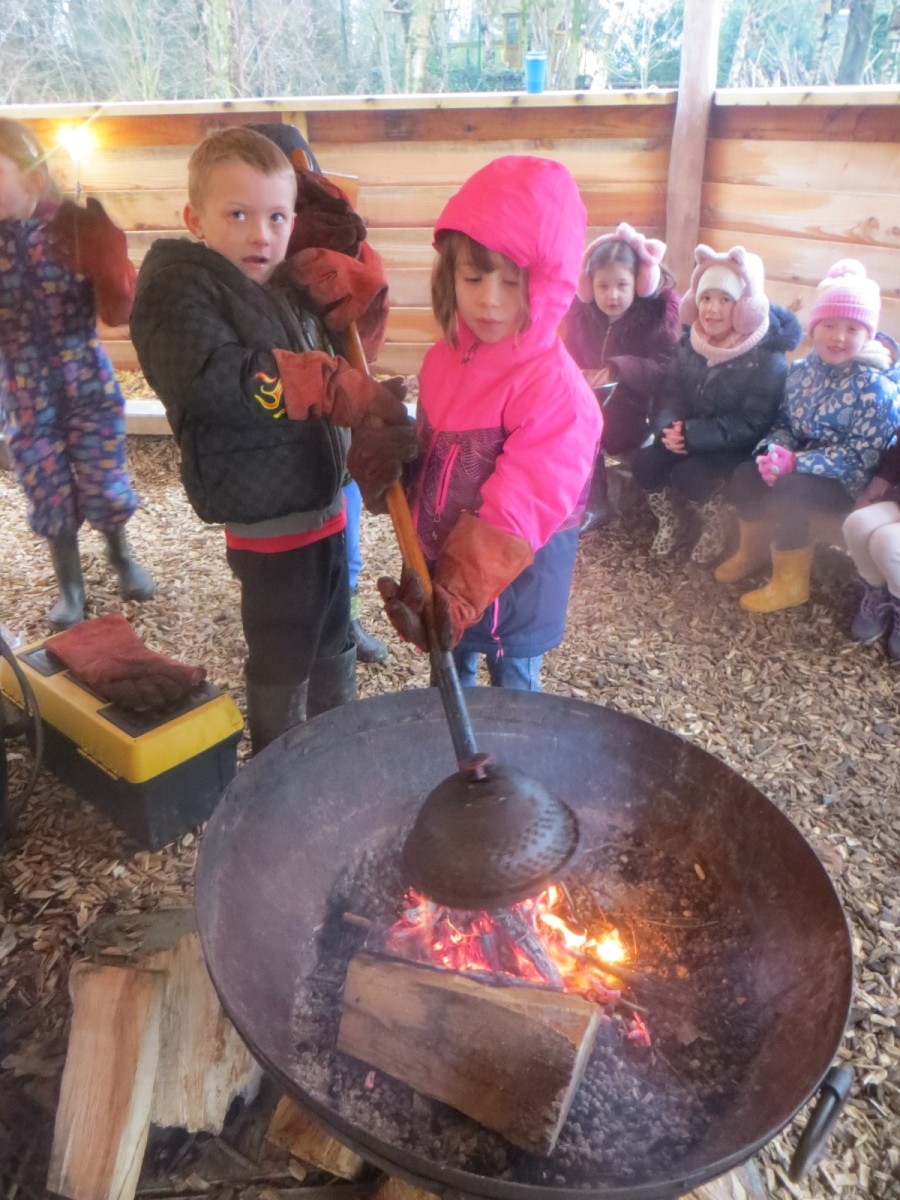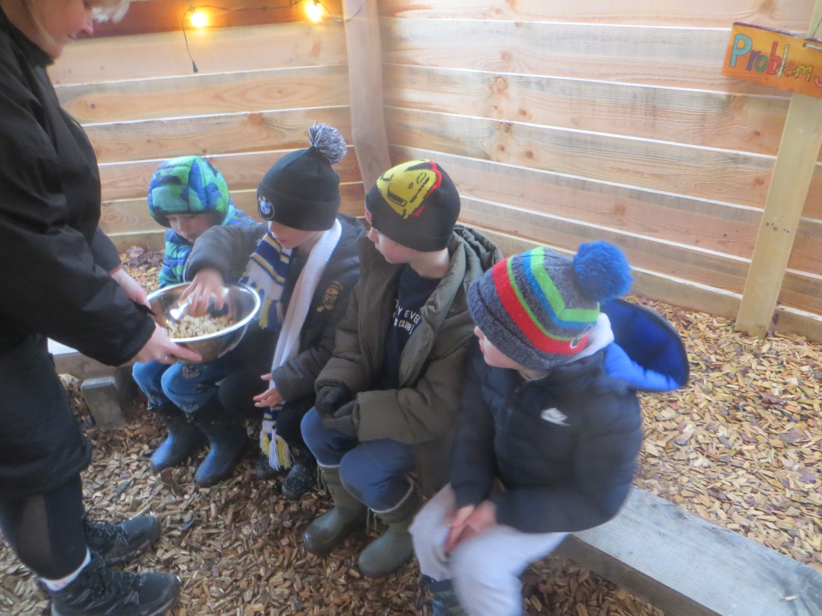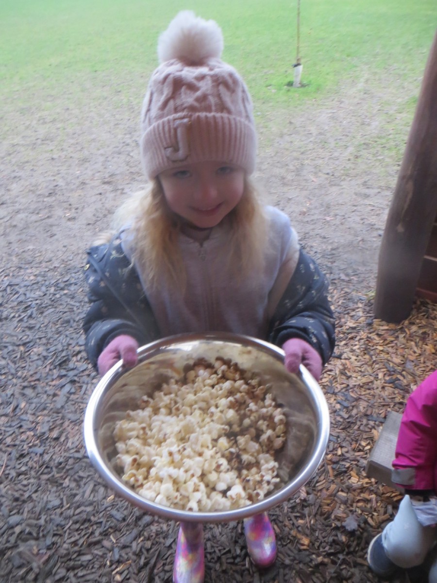 Last week, it was National Popcorn Day so what better way for KS1 to spend their nearest Forest School session to the day by making a fire to cook popcorn on! Children used fire safety gloves to help feed the fire to maintain its heat and size and learnt about being safe around an open fire. Pupils also used the popcorn pan to heat oil and the corn kernels until they popped – looking and listening for sizzling, popping and the yellow kernels turning into white popcorn. Children could also choose to make dens using our den building sticks, play games in the trees, visit the mud kitchen to create their own popcorn inspired snack or play games to stay warm. Well done KS1 on a cold, windy day and the warm, fresh popcorn certainly went down a treat!