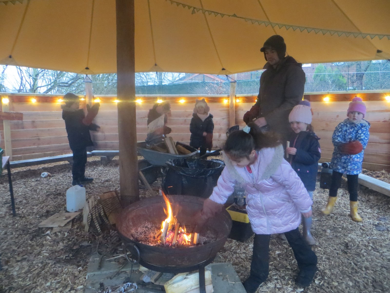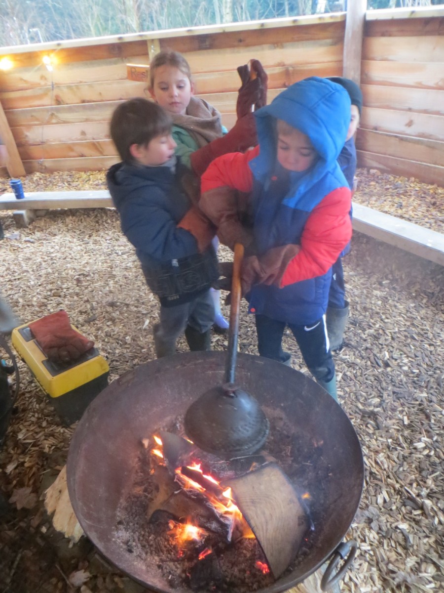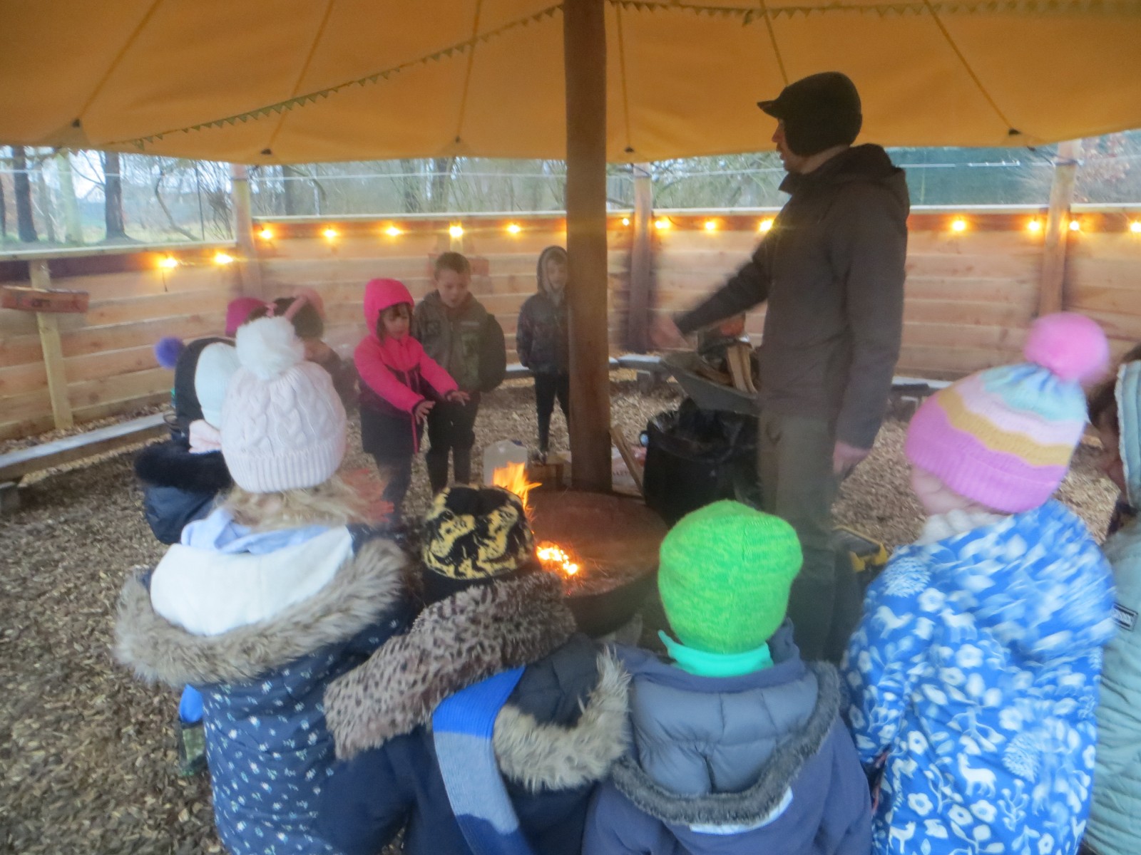 Last week, it was National Popcorn Day so what better way for KS1 to spend their nearest Forest School session to the day by making a fire to cook popcorn on! Children used fire safety gloves to help feed the fire to maintain its heat and size and learnt about being safe around an open fire. Pupils also used the popcorn pan to heat oil and the corn kernels until they popped – looking and listening for sizzling, popping and the yellow kernels turning into white popcorn. Children could also choose to make dens using our den building sticks, play games in the trees, visit the mud kitchen to create their own popcorn inspired snack or play games to stay warm. Well done KS1 on a cold, windy day and the warm, fresh popcorn certainly went down a treat!