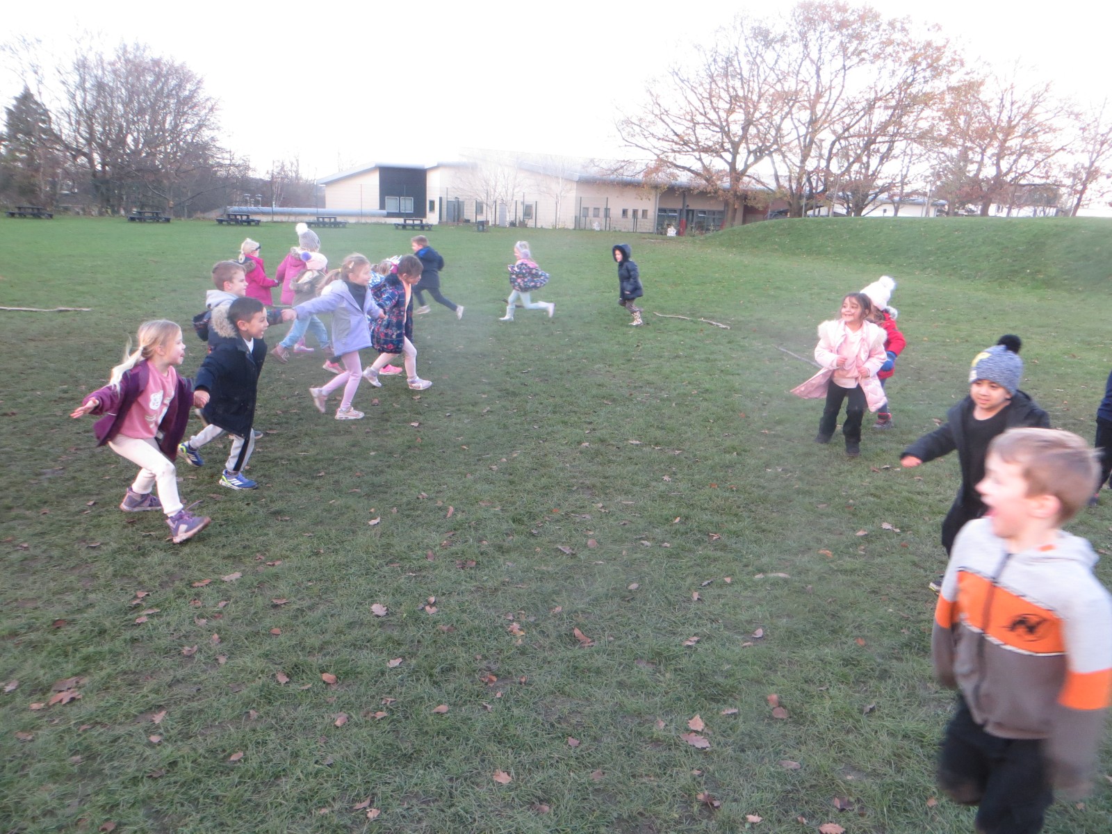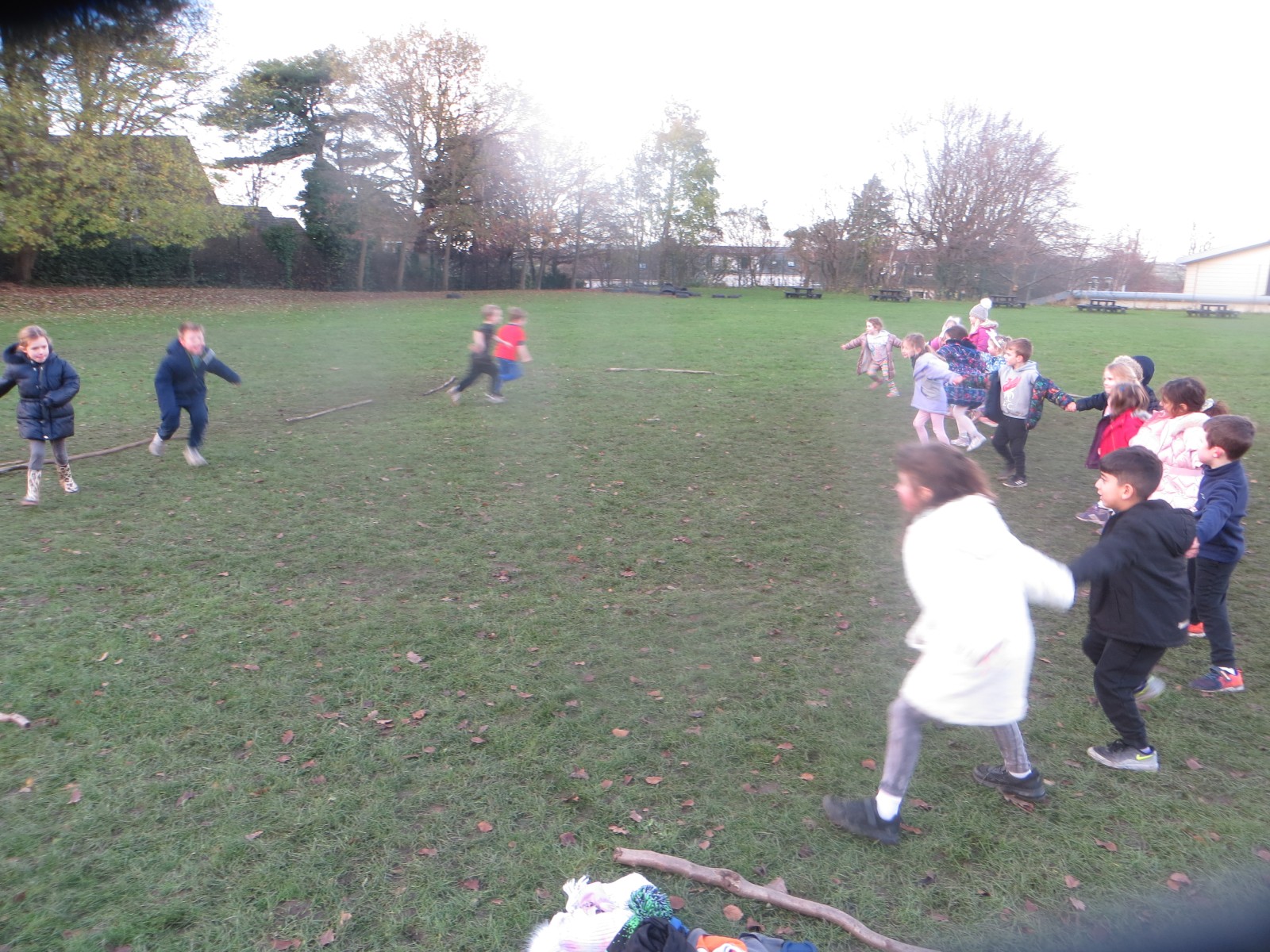 To kick off our National Tree Week celebrations this year, Ks1 pupils enjoyed a tree themed session on the field. To begin with, children played a game called ‘Forest Fire.’ Children had to choose an animal and cross the forest from one safe zone to another without getting caught by the fire. If they did, they became the fire by holding hands and trying to catch the other animals as they ran past. As the game progressed, the ‘fire’ grew bigger and bigger and pupils had to communicate to ensure they could catch the remaining animals without letting go of each other’s hands – it was a lot harder than they thought! Afterwards, children discussed the important roles trees play in our lives – from giving us oxygen and food, to providing shelter and habitats and to the products we can make from them. Children then spent the rest of the session choosing their own learning. Pupils could choose from making their own charcoal paint and painting tree pictures, playing in the trees, using them to make dens or create their own tree themed games!