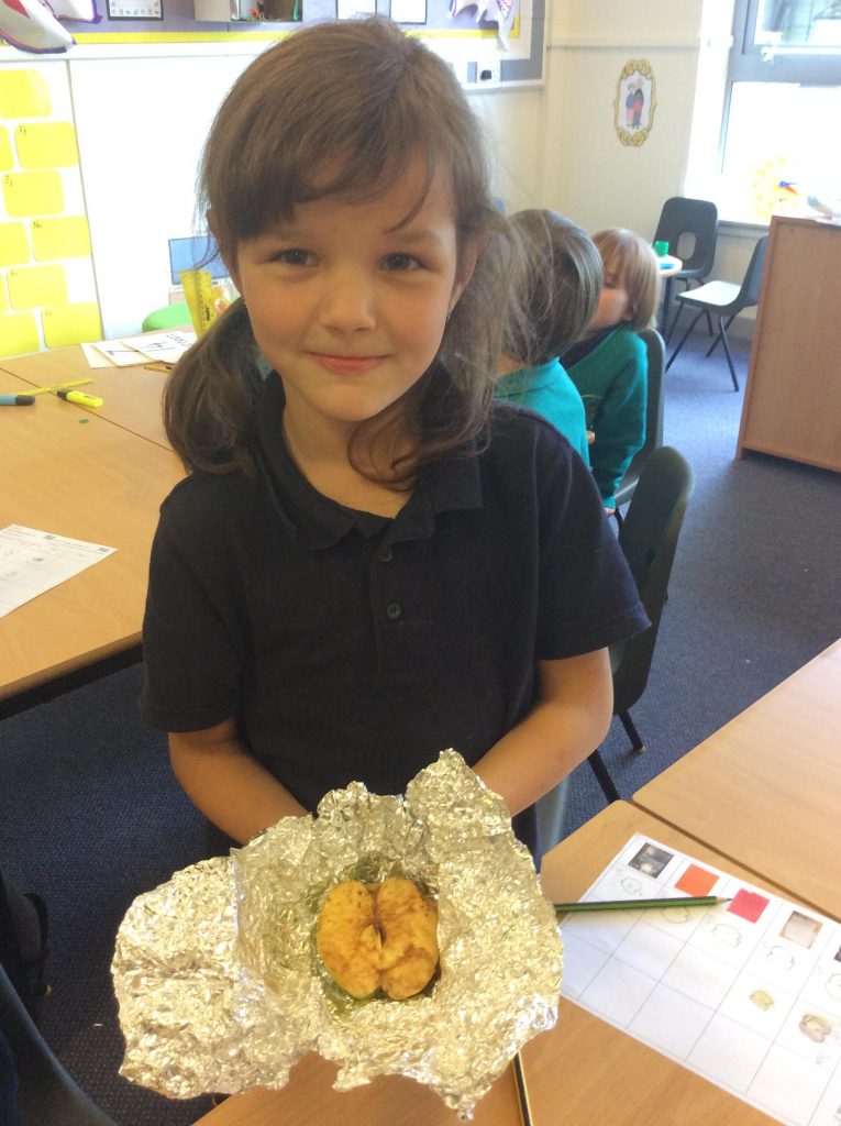 In Science Class 3 have been seeing who can make the biggest bubble and Class 4 have been checking on how their experiment is going. They have wrapped apples up in a variety of materials and they are waiting to see which material preserves the apple the best.
