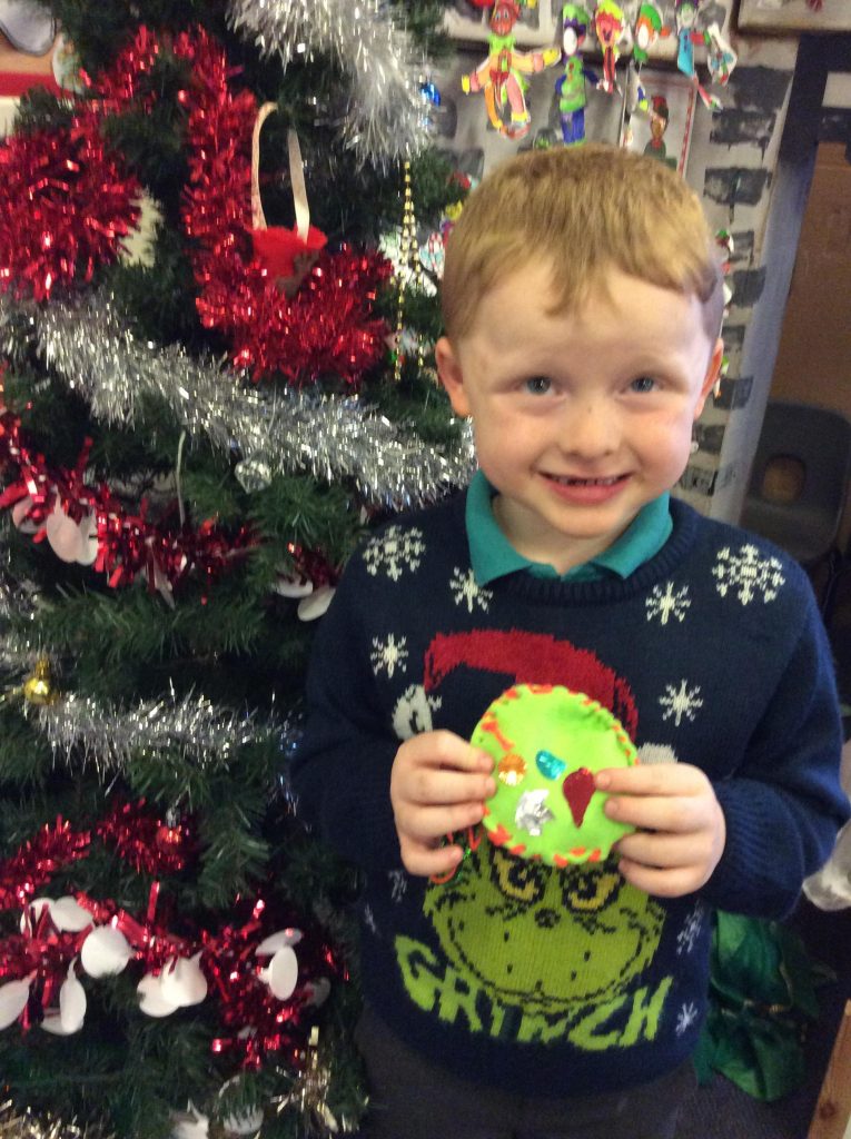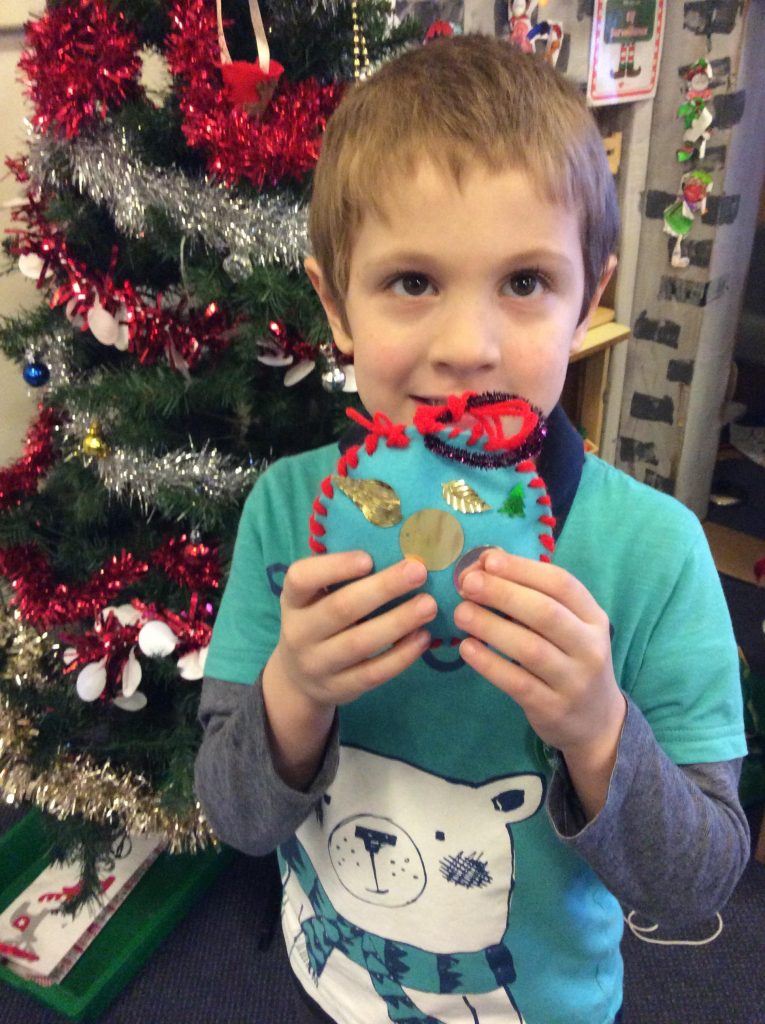 In class we were amazed for how good the children were at sewing! They each created their own bauble to hang on the tree and did a fantastic job.