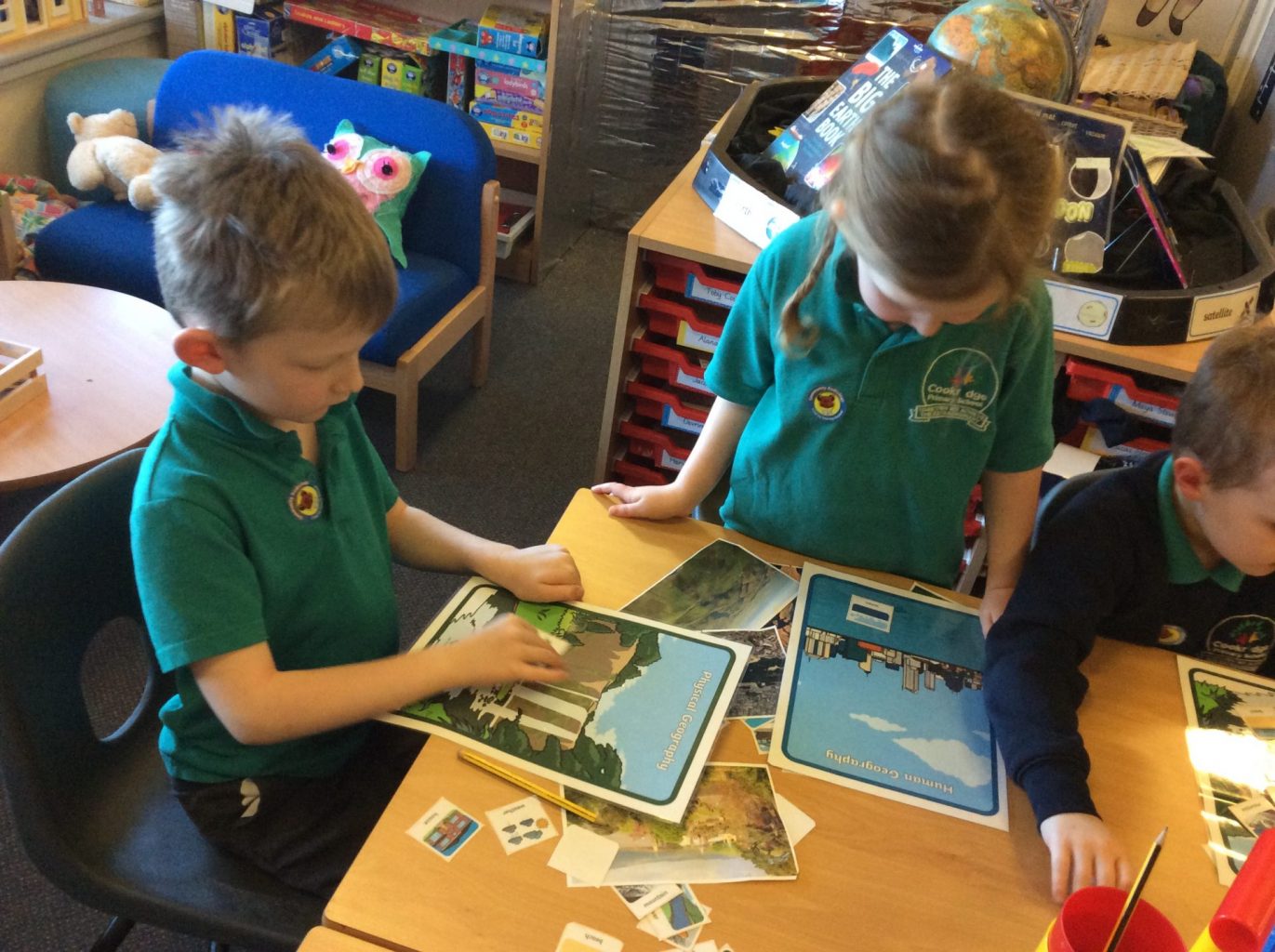 In Geography we have been developing our understanding of aerial views. We were focusing on Physical and human features of our environment and sorting them into groups.
