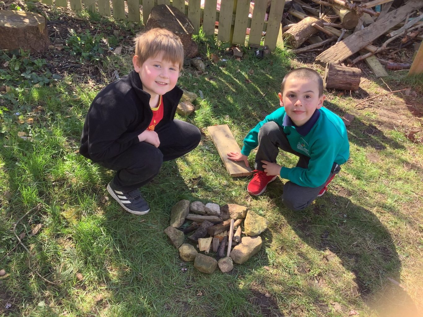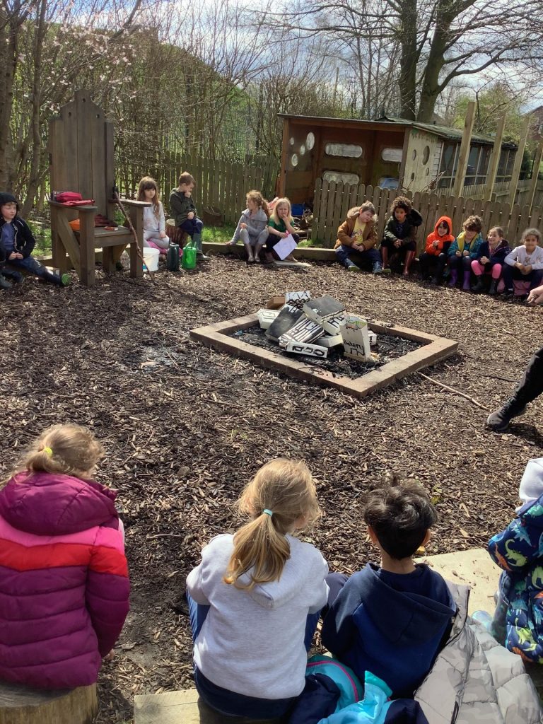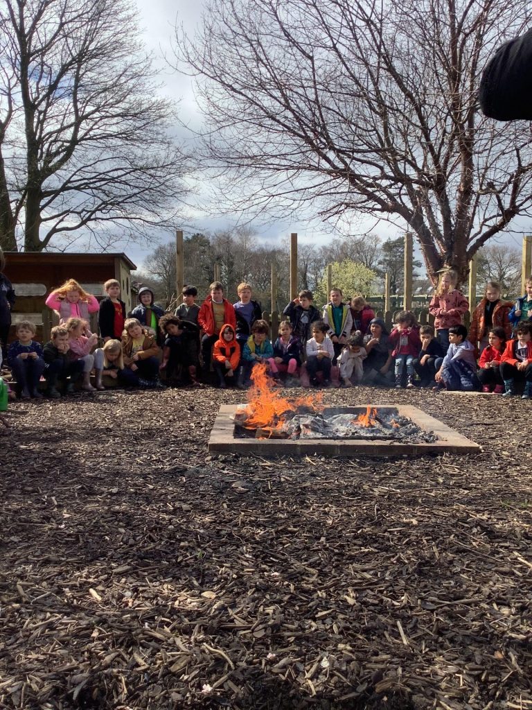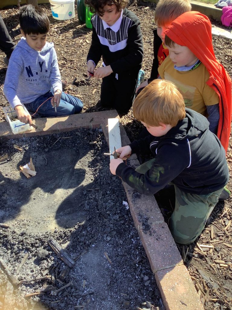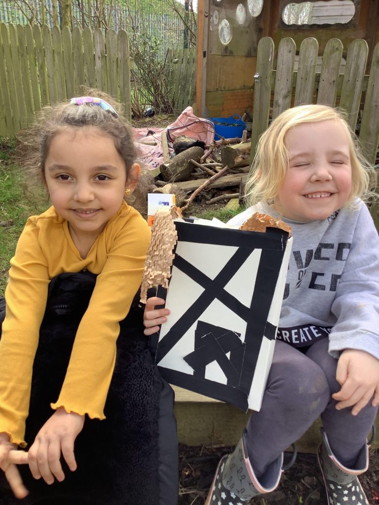 We had great fun during our Forest schools session, taking our houses we had painted up to the fire pit. We laid them out and began a fire in the bakery. We watched as the fire spread really quickly across each of the houses, just like it would have done in London because it was really windy.