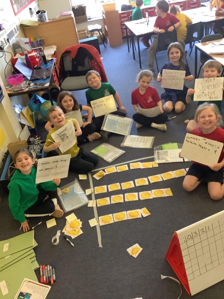 In Science, we have been doing our final carousel looking at the seasons. It has been fun writing and recording weather reports, finding out more about the seasons through our RIC’s and also using pictograms to record how much sunlight is in each season and using these to answer questions.