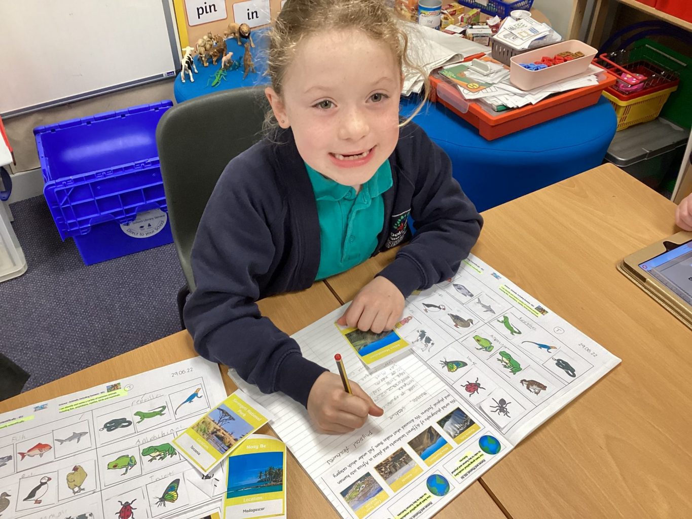 Year One have worked on letter writing in English, they have written a letter to Sunny the Meerkat and have researched information about African animals.
