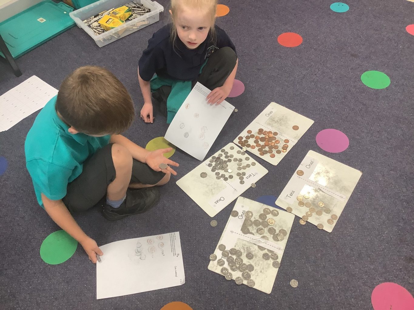 Maths the focus has been on money, they now understand what each coin is worth and can recognise the differences between them.