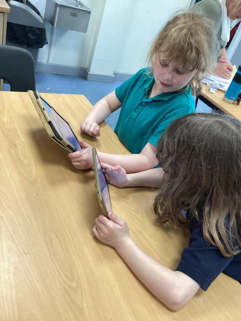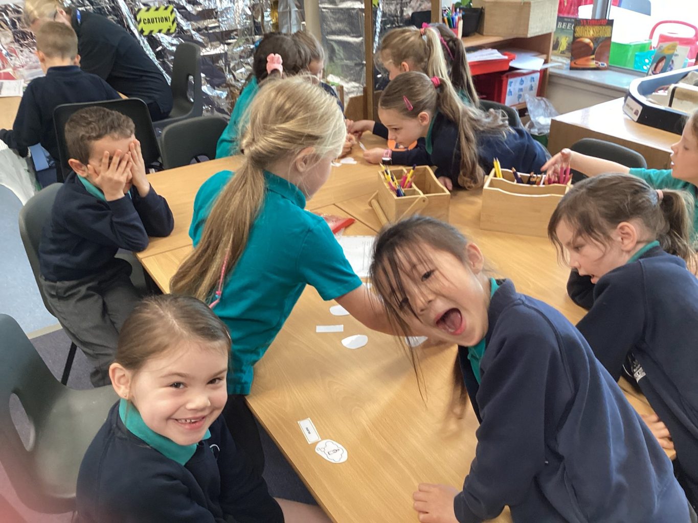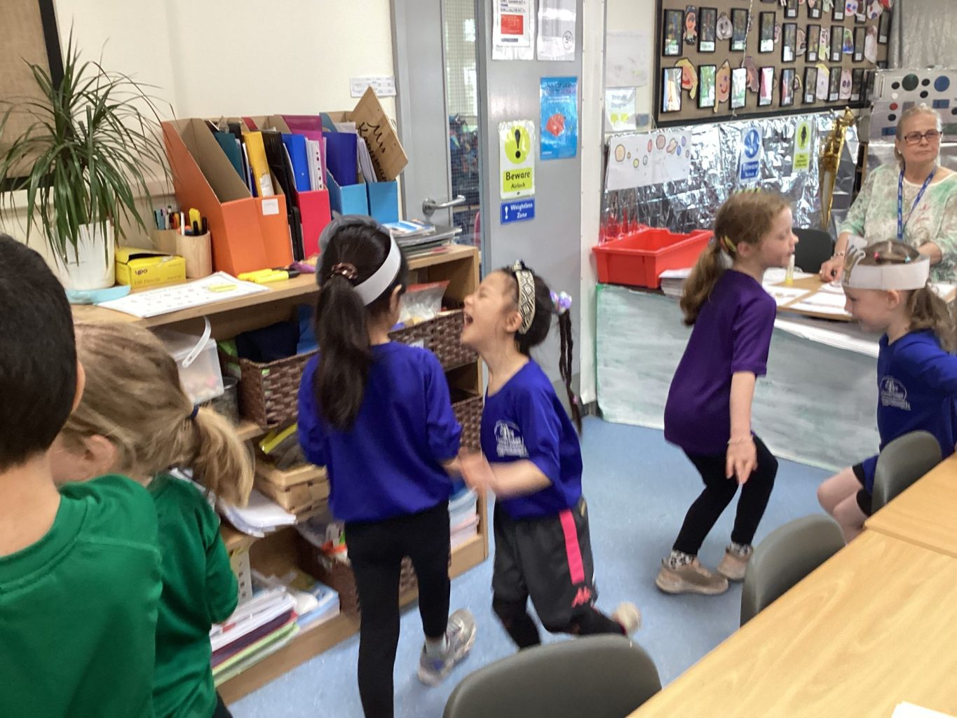 There was some fabulous colour mixing happening in the Art lessons. The children were choosing two of the primary colours and putting them in a pattern on a spinner. They then spun the spinner and watched how the colours blended together and created a new pattern.