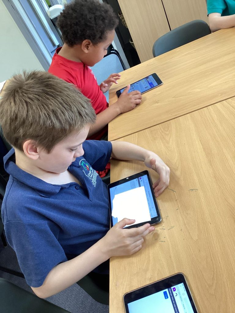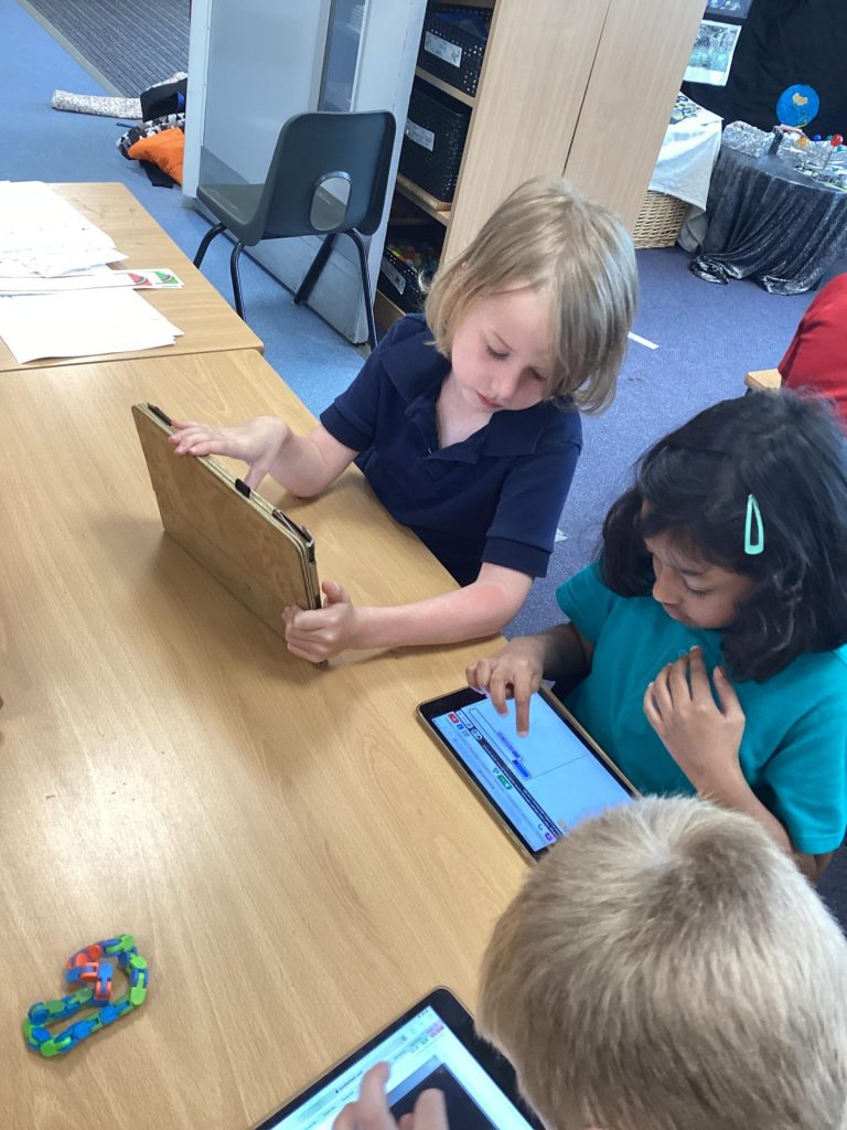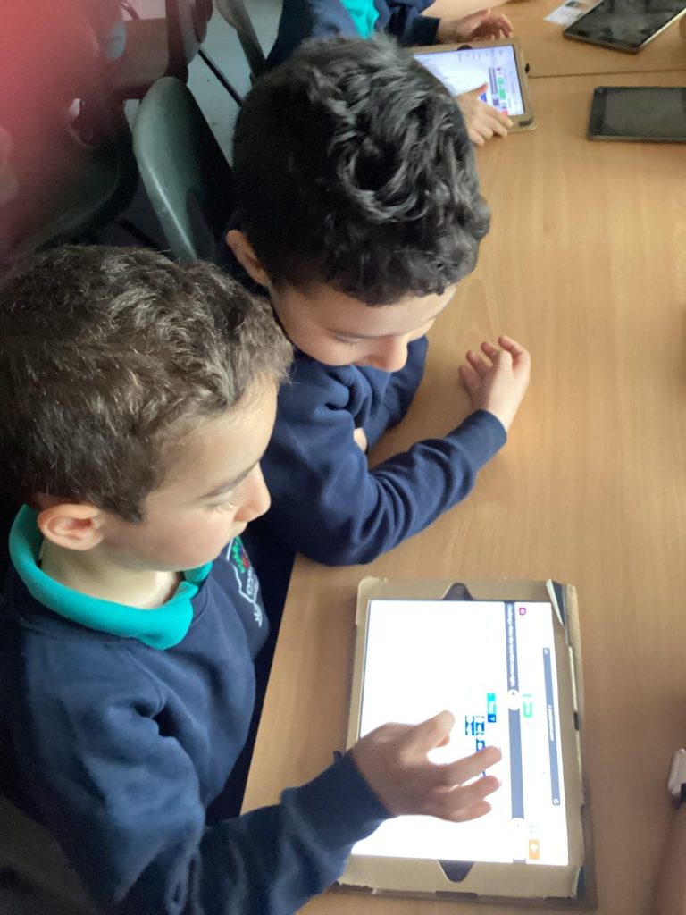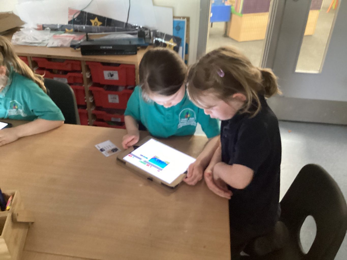 There was some fabulous colour mixing happening in the Art lessons. The children were choosing two of the primary colours and putting them in a pattern on a spinner. They then spun the spinner and watched how the colours blended together and created a new pattern.
