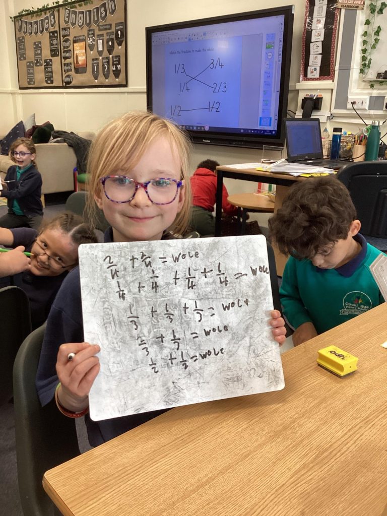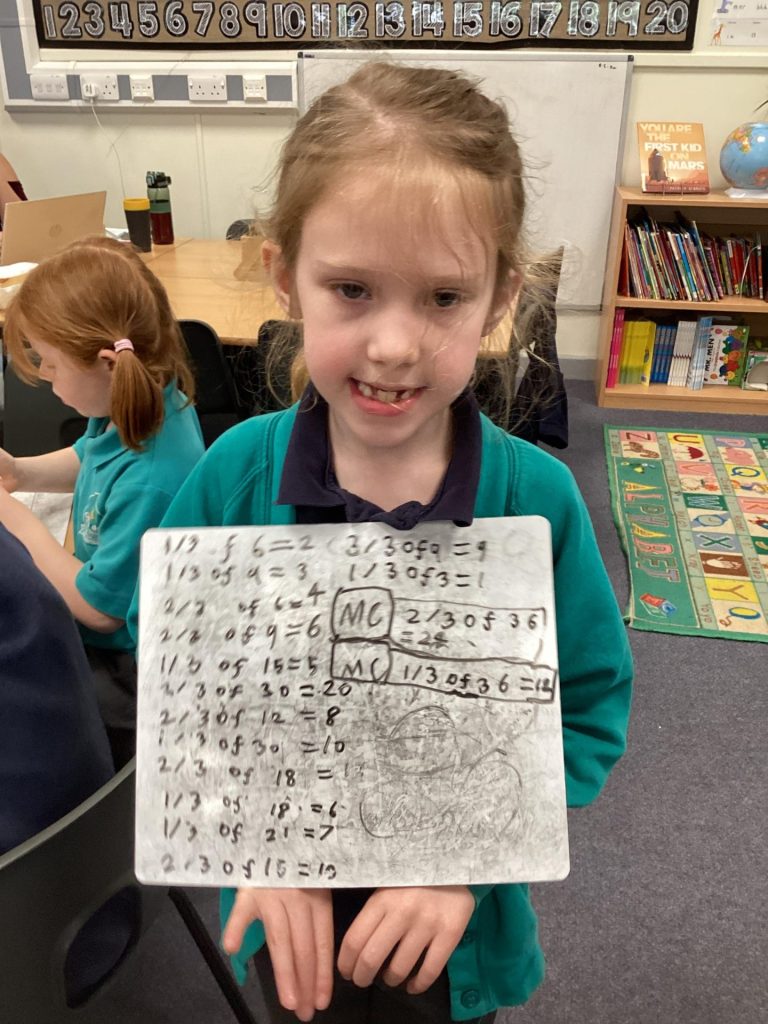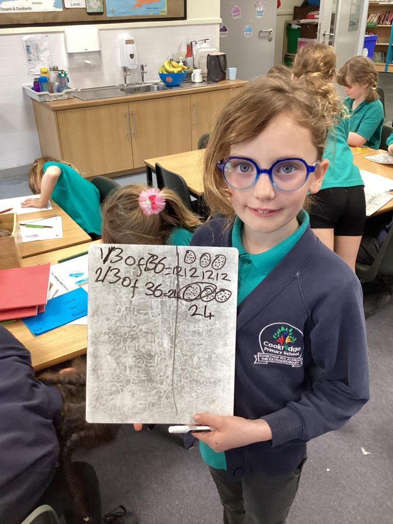 During our Maths lessons this week, Year One have been learning about equal and unequal groups. They have been recognising when groups are unequal and have been adding together equal groups as the beginning to multiplication. Year Two are continuing with their work on division and finding fractions of amounts.