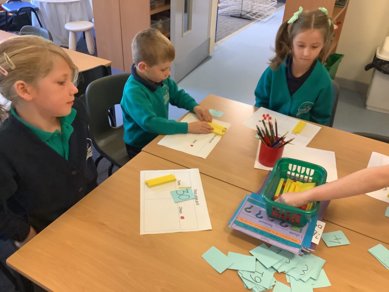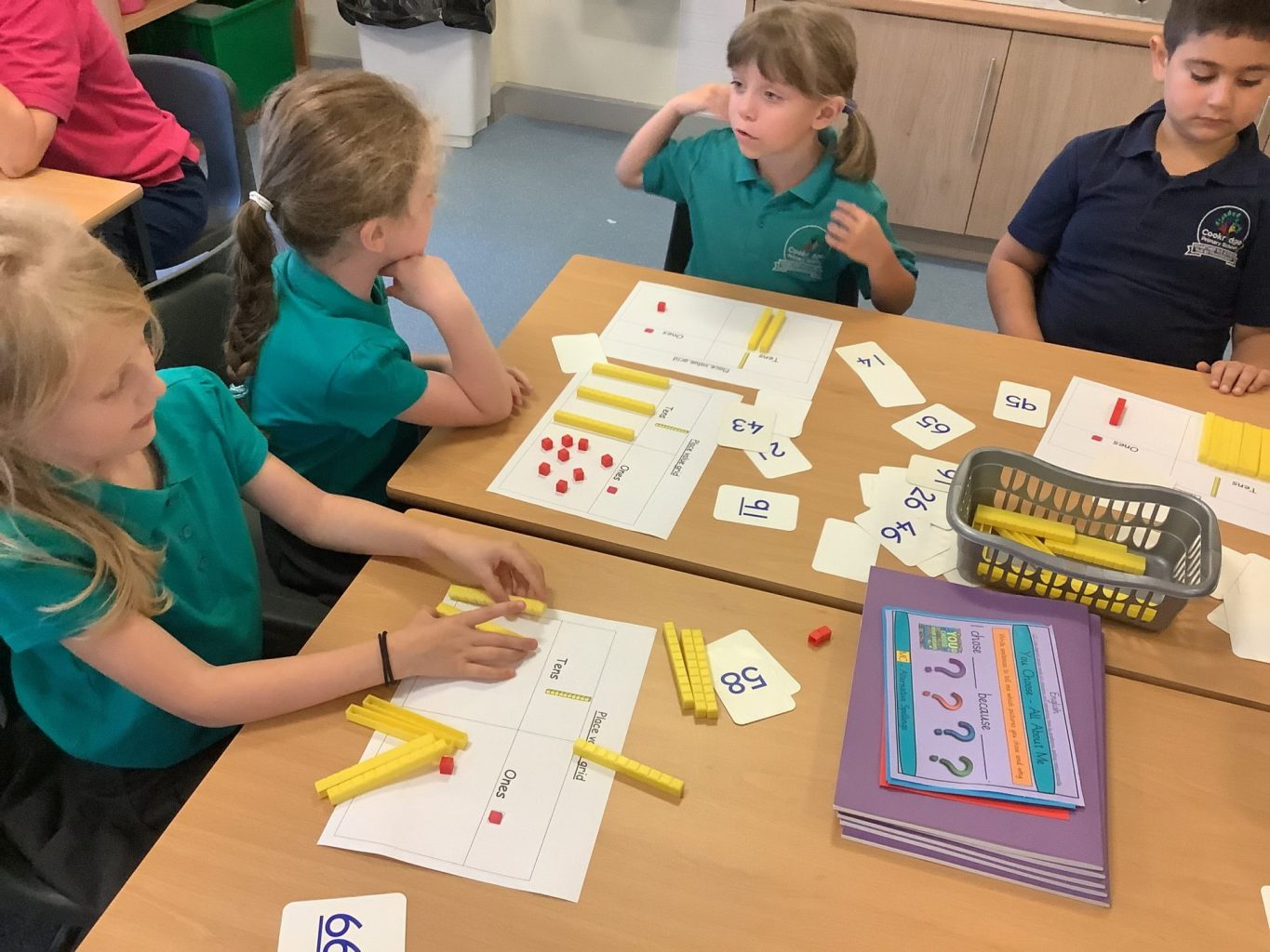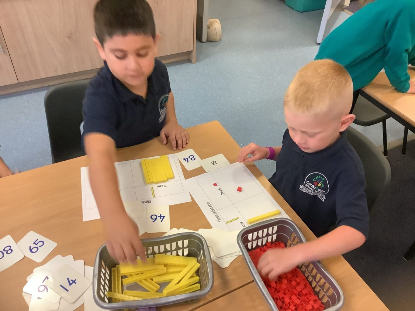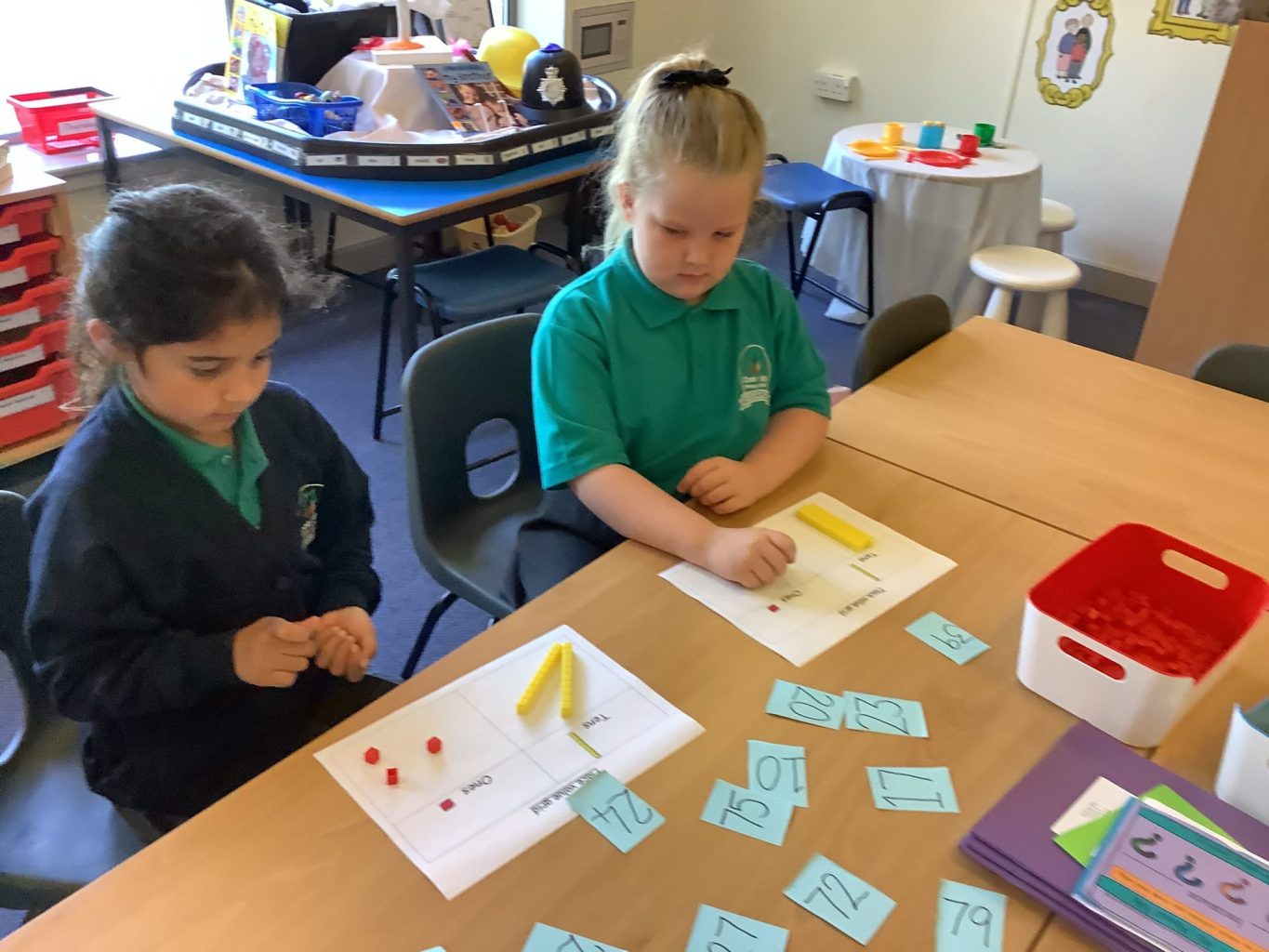 In Year 1, we have been practising our counting skills and writing numbers. Year 2 have begun working on Place value, using tens and ones.