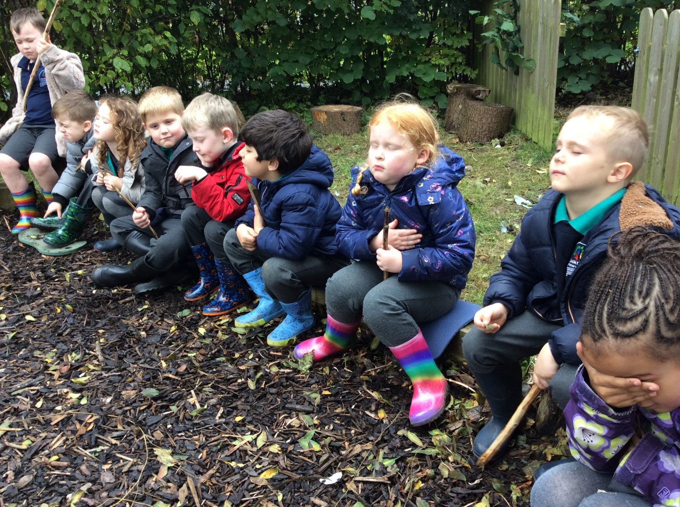 Class One and Two celebrated World Mental health day at Forest schools. They found objects that represented them and we discussed what makes us happy. Lots of the children said that being outside makes them happy