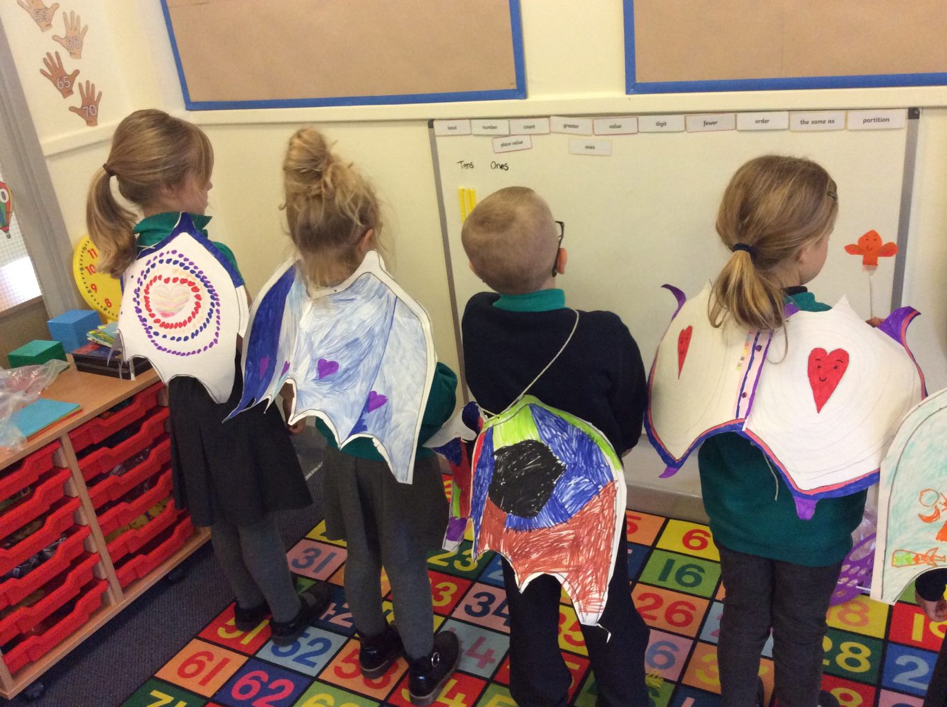 We have had great fun pretending to be dragons after reading ‘Zog’. Year 2 designed wings, made dragon puppets and diaramas creating the setting for a story. They then used this inspiration to write their own dragon tales. Year 1 made models of dragons and were learning how to fly! Then in Forest schools, they practised making fire.