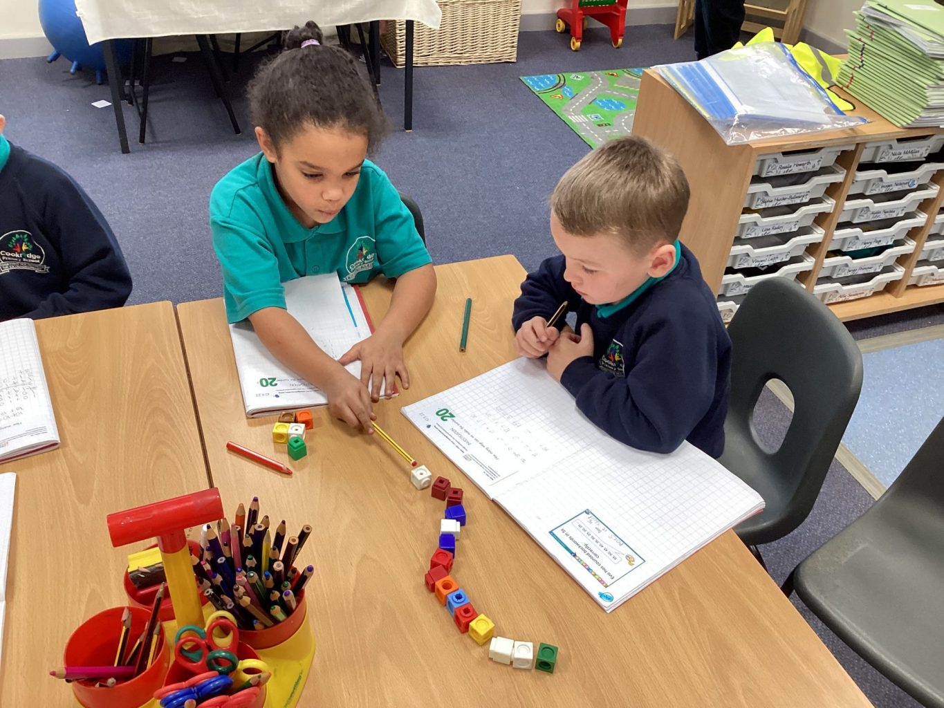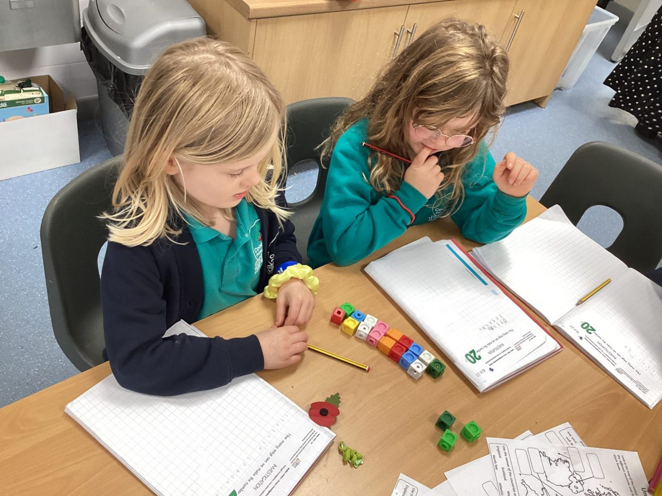 In Maths, Year one have begun looking at simple addition and numberbonds to 10. They have been focusing on how two parts can make a whole. Year two have been doing some investigations around Number bonds to 20. They are learning quick recall of Numberbonds to 10 and using this knowledge to help them learn the Numberbonds to 20.