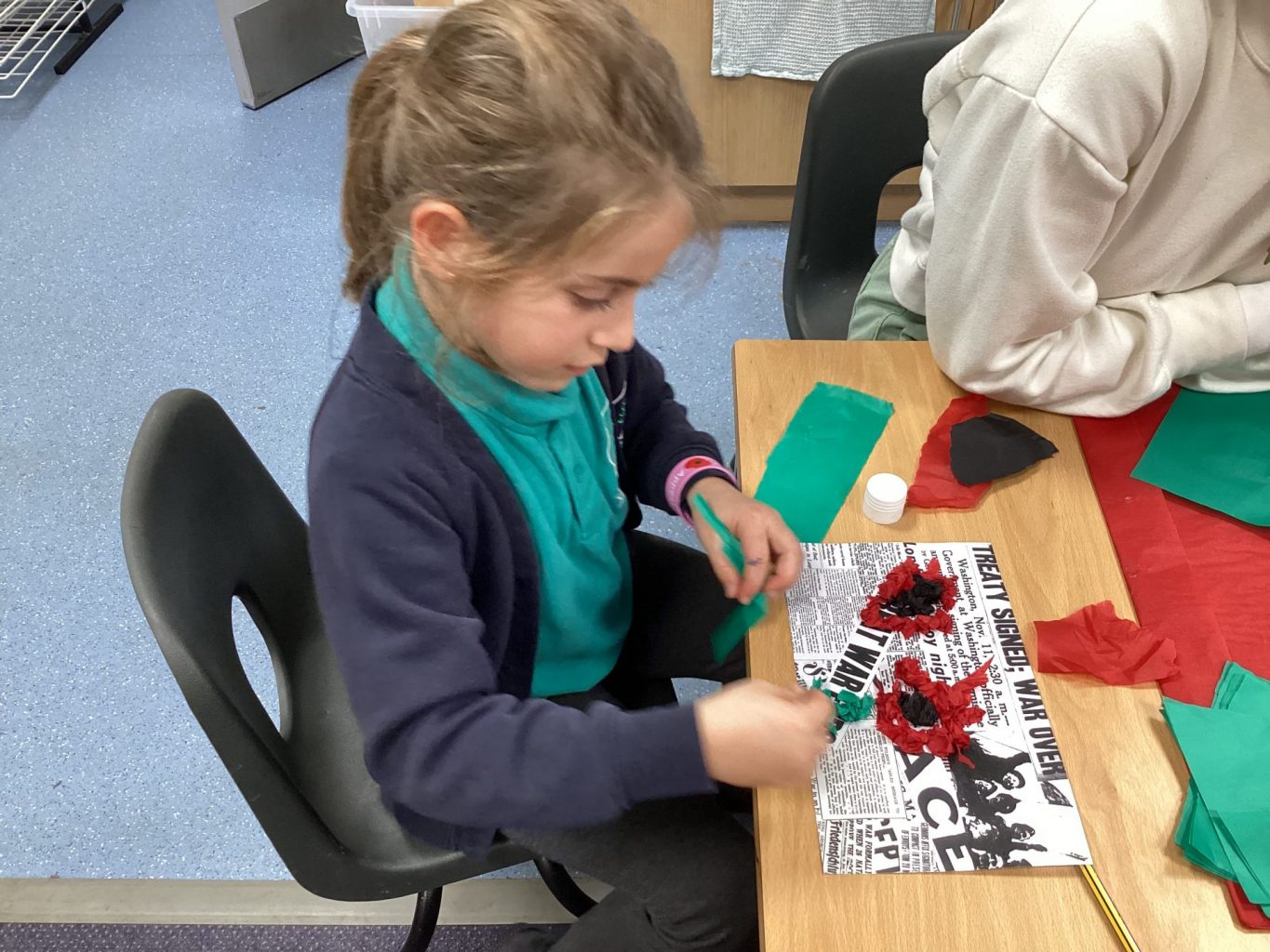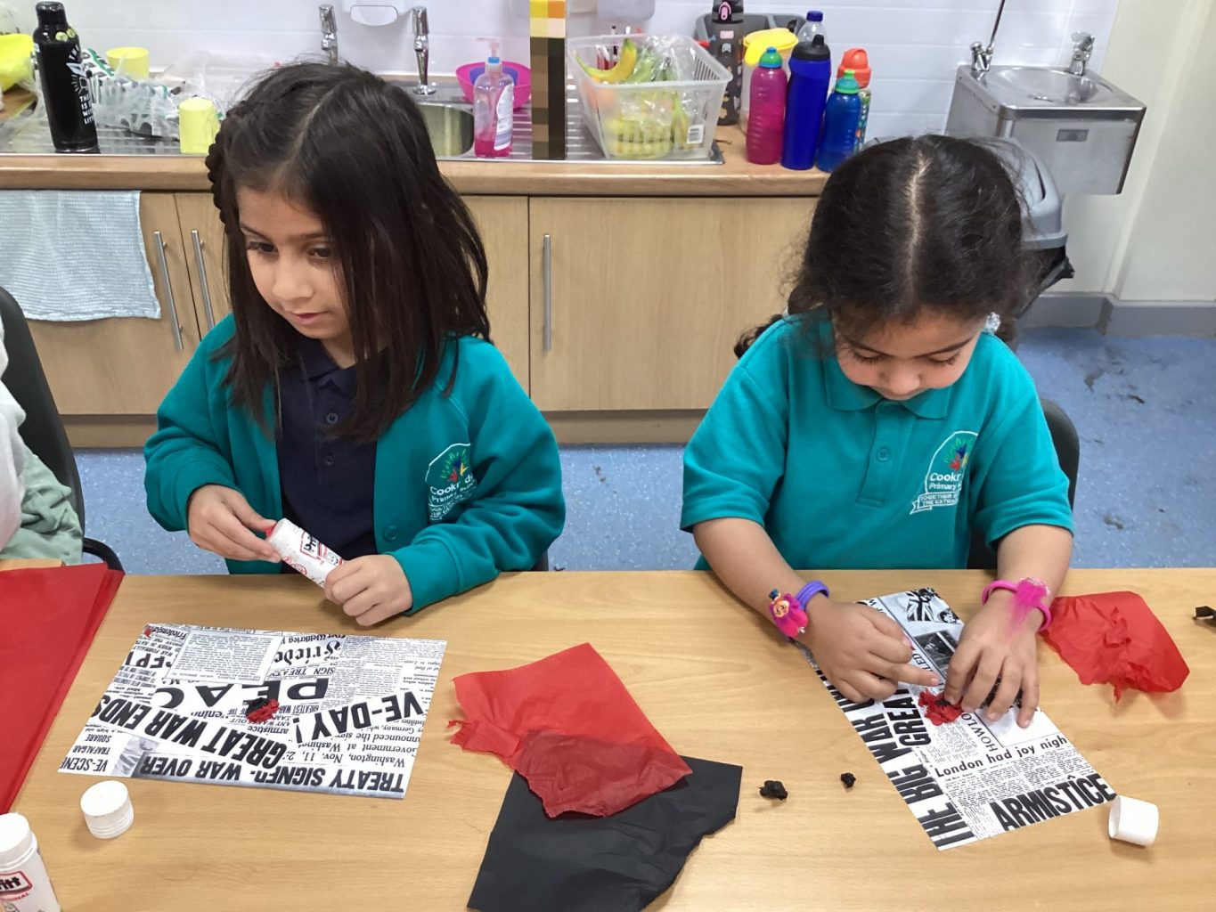 We have all been learning about Remembrance day. We have thought about people who died in the war and the fact that we wear poppies to remember them because they grew in the fields after the war. We made our own poppies to wear and to display.