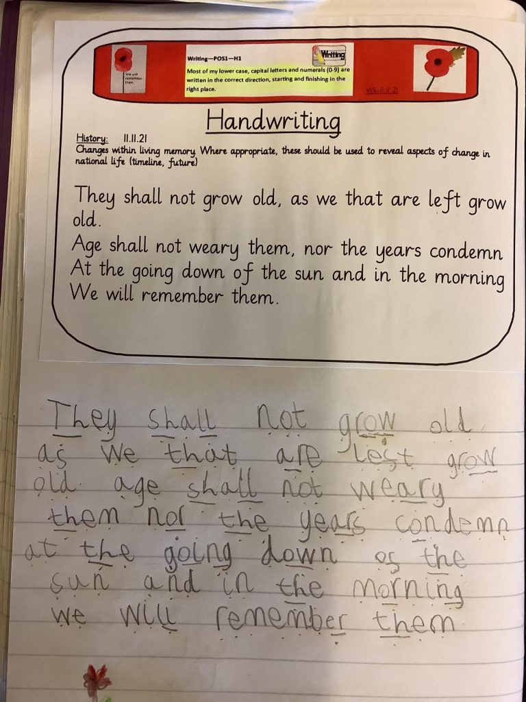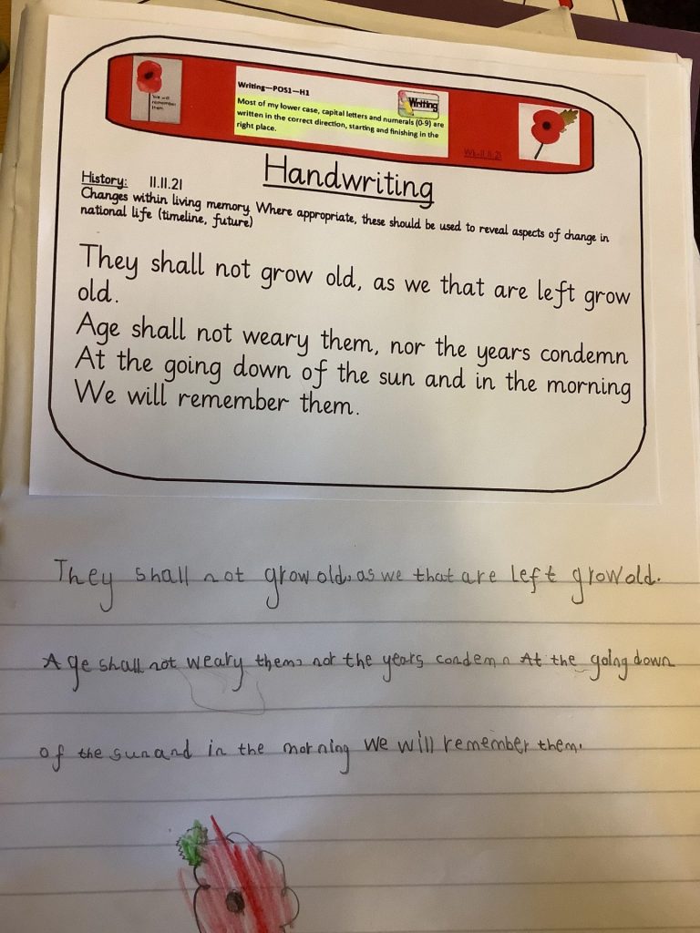 On Thursday, we learnt about Remembrance day. We learnt about why we wear poppies and when they were first introduced. We all made poppies using a variety of media and year 2 completed a reading comprehension about it.