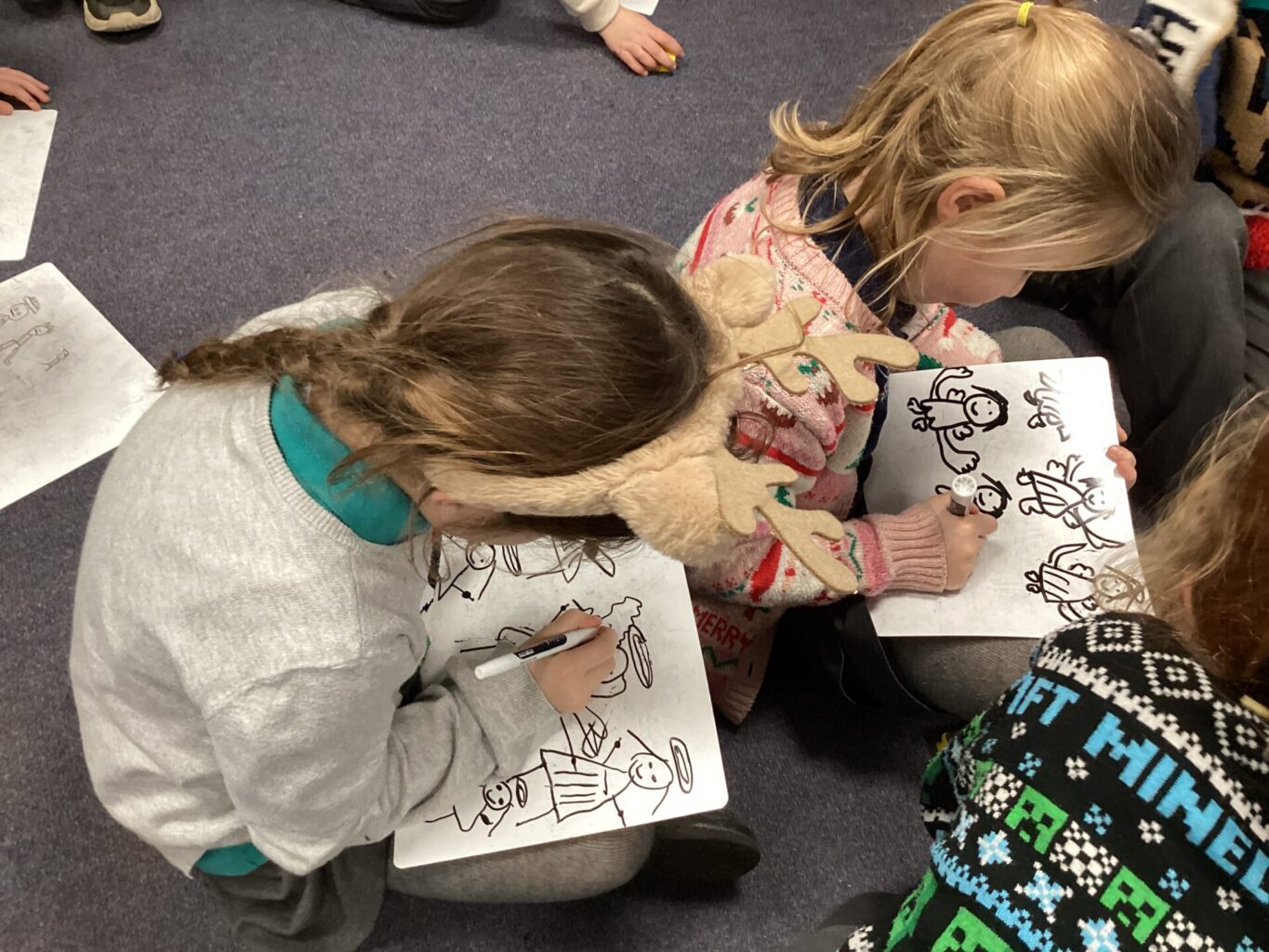 We have been reading Christmas stories in English this week and completing reading comprehensions. We have been very proud of the Year one children particularly, who are learning these skills for the first time. The children then used the inspiration of their elves they created, to retell the story of the elf on the shelf, thinking about how it travels to a families home, gets touched by one of the children and ends up in the elf hospital. Thankfully they all had happy endings with a sorry letter being sent.
