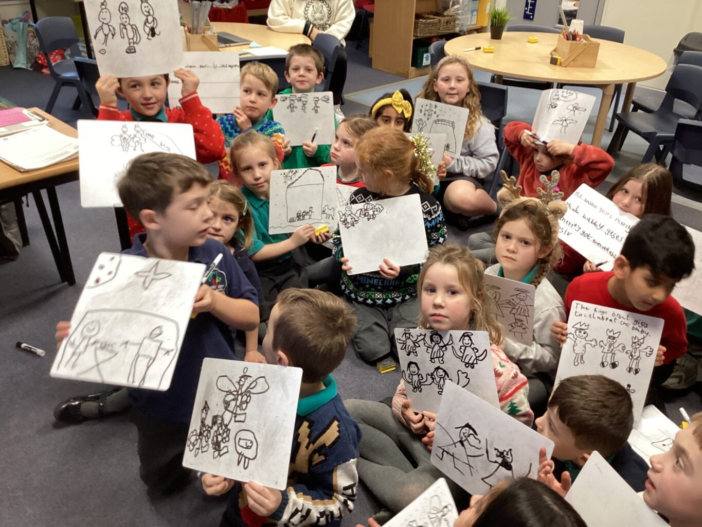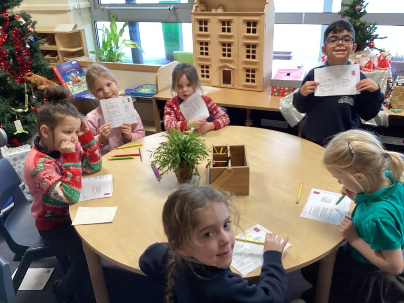 Mrs Ledda treated the children to one of her beautiful drawings in art. They each received a special opening Christmas home picture and did a listening and observation task of finding and colouring different things within the picture and completed a quiz.
