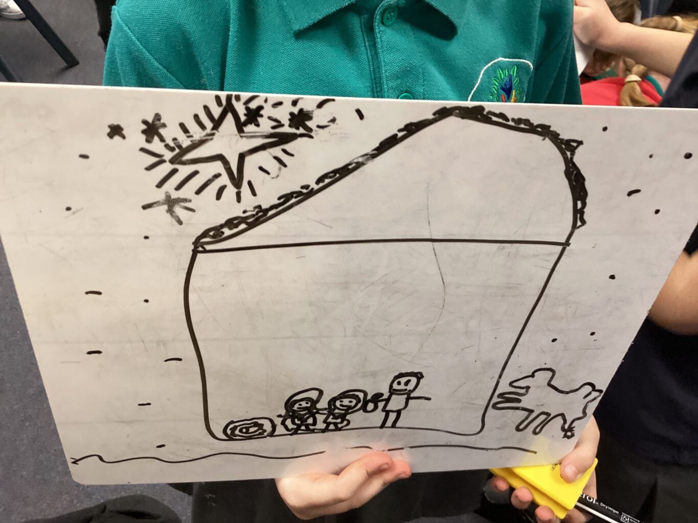 We watched the Christmas story in RE and thought about how baby Jesus was welcomed by the different characters. Mary and Joseph gave him a special name with meaning, the angels announced his birth, the shepherds went to visit him and the kings/ wise men brought him expensive gifts.