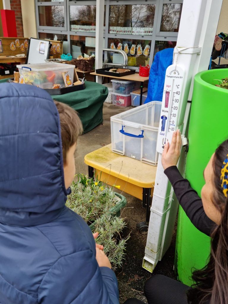 In Science, we have begun looking at the four seasons, linked in with weather. We have been discussing what we already know about each of these seasons and thinking about what we’d like to learn. We had some really interesting questions like ‘Why do clouds change and sometimes rain and sometimes snow?’ and ‘Why do we only see bees in the Summer?’